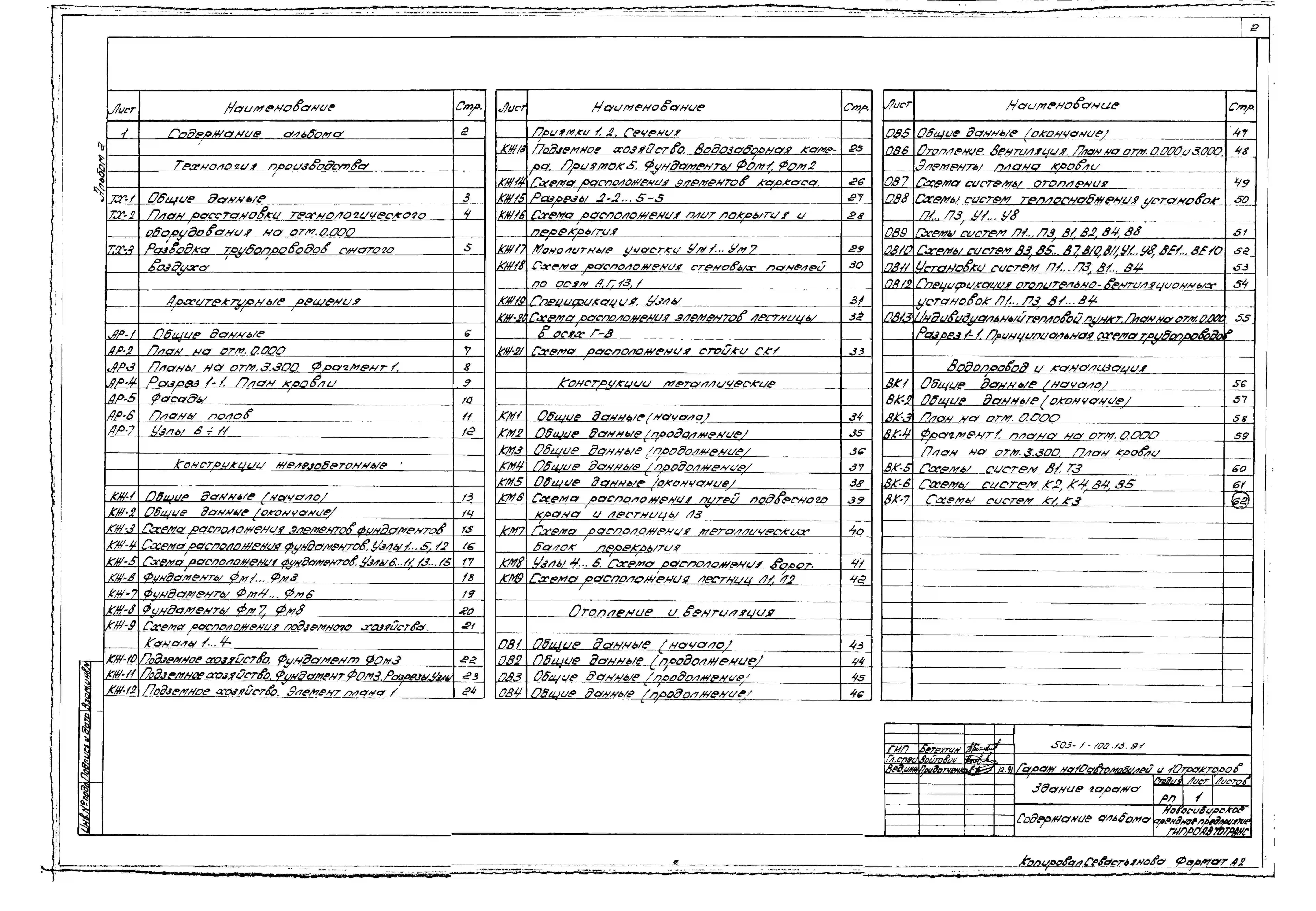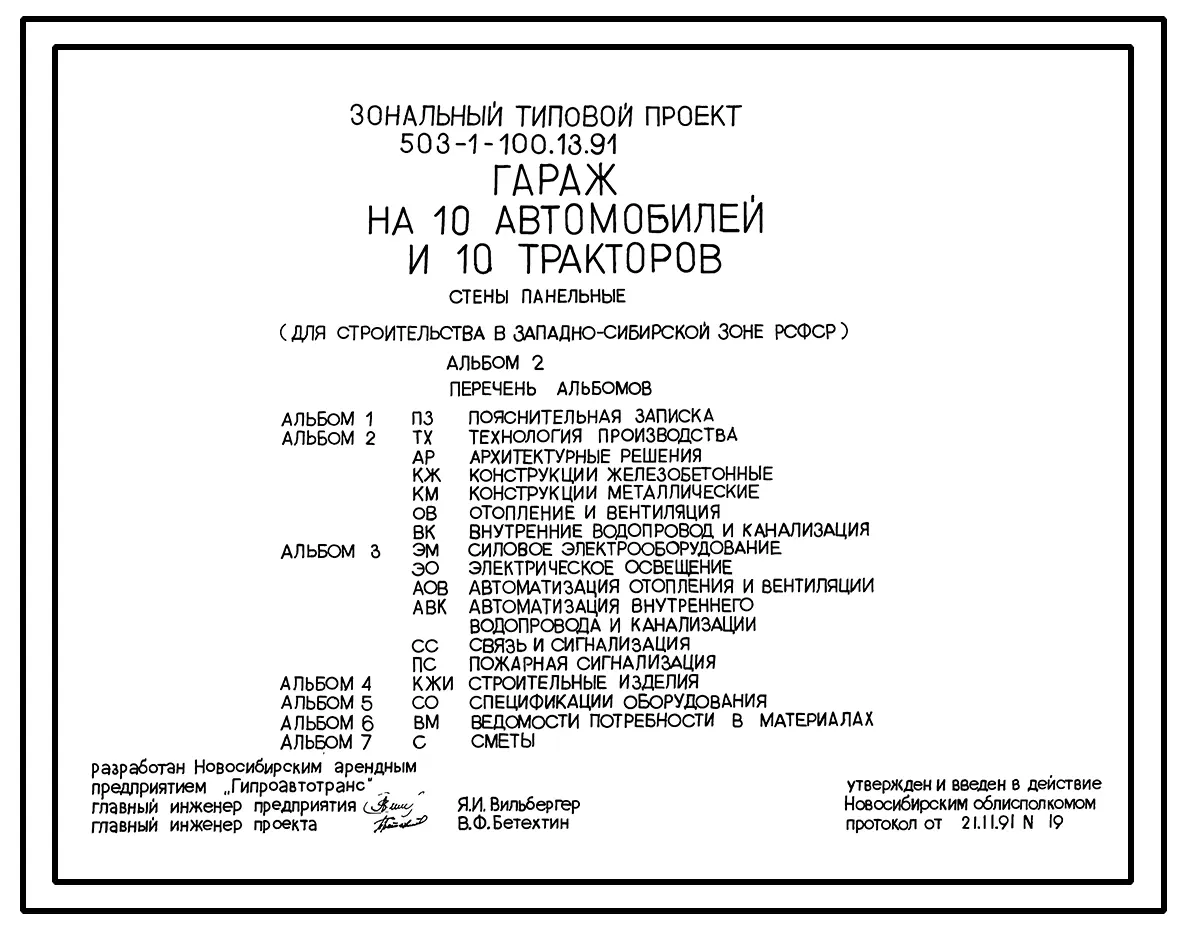 Типовой проект 503-1-100.13.91 Гараж на 10 автомобилей и 10 тракторов. Стены панельные (для строительства в Западно-Сибирской зоне РСФСР)