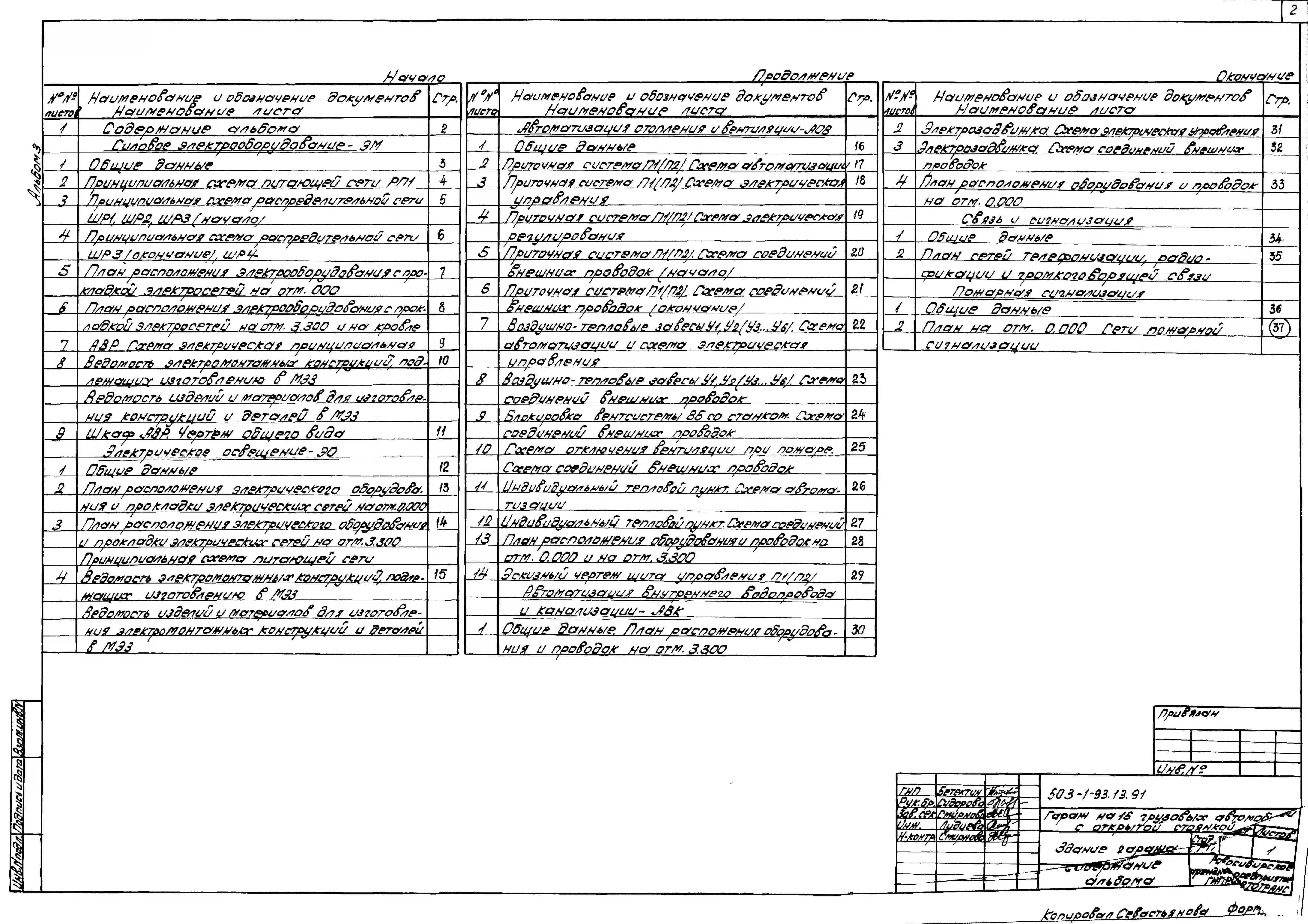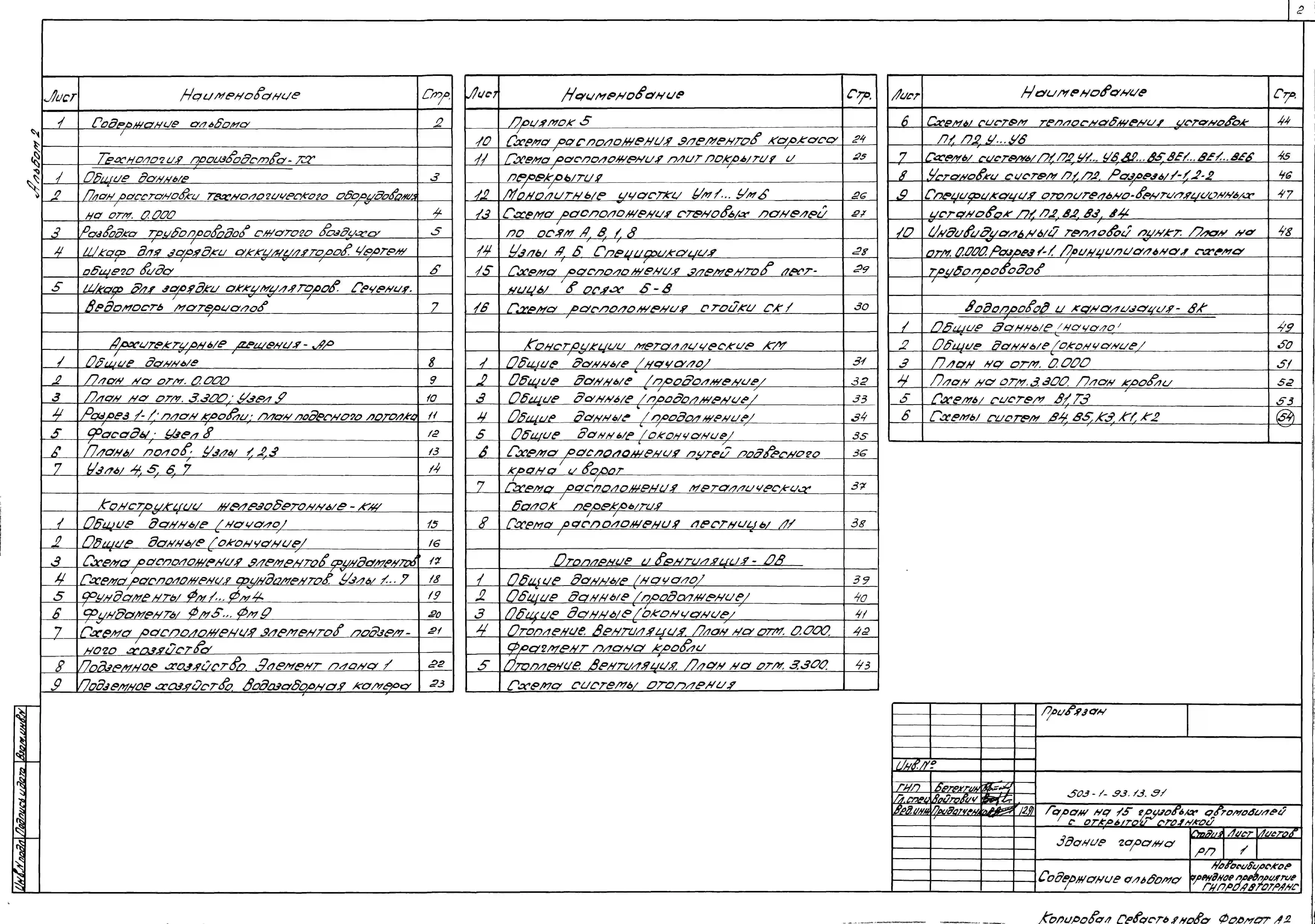 Типовой проект 503-1-93.13.91 Гараж на 15 грузовых автомобилей с открытой стоянкой. Стены панельные (для строительства в Западно-Сибирской зоне)