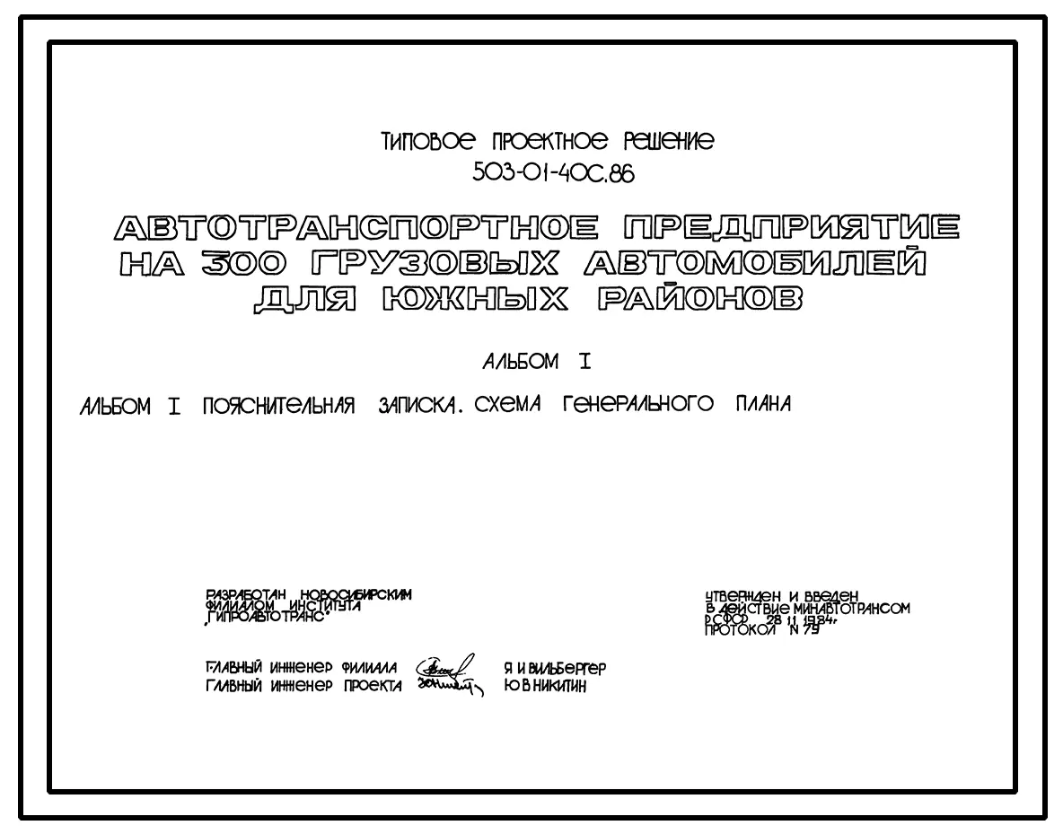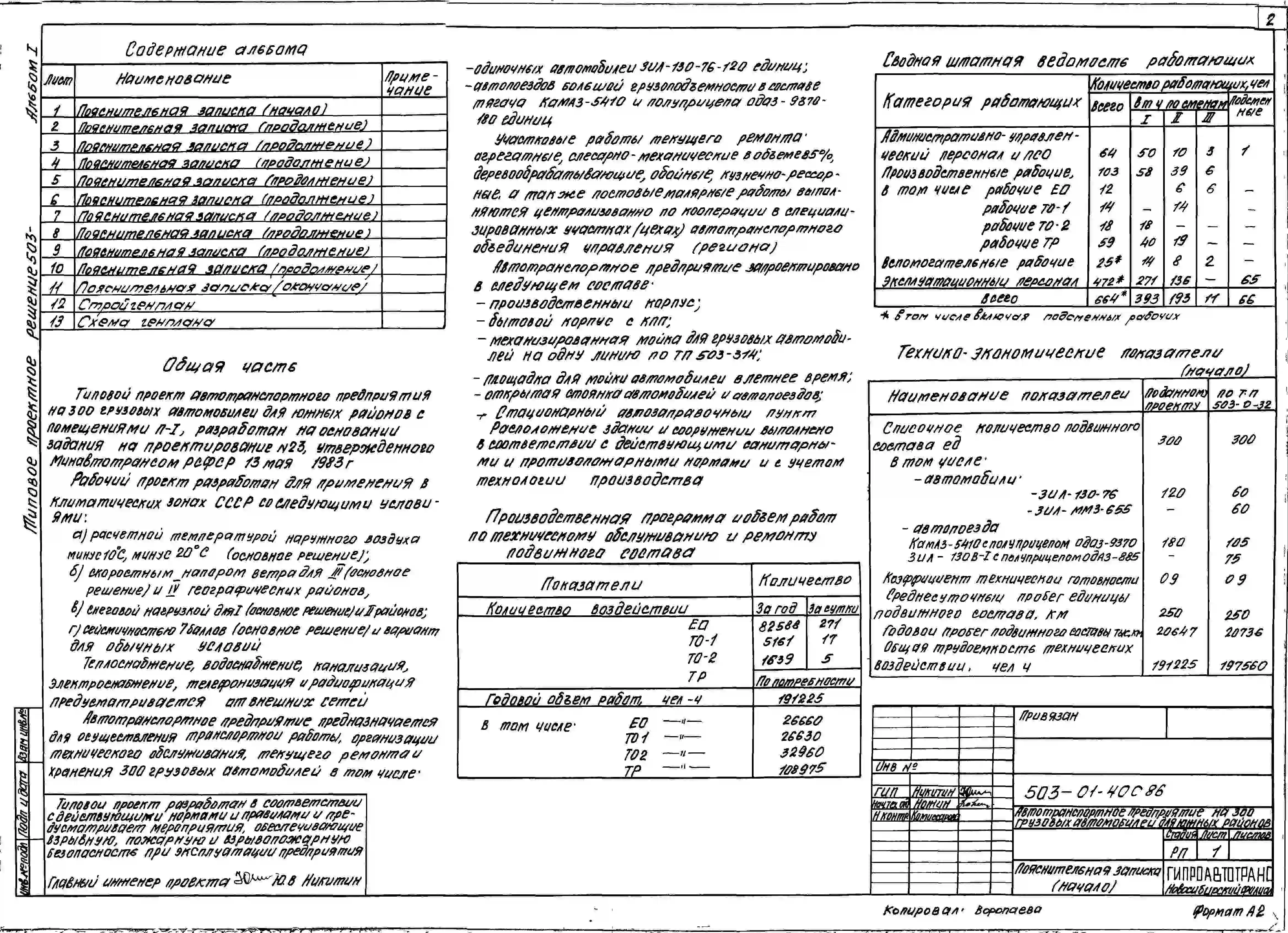 Типовой проект 503-01-40с.86 Автотранспортное предприятие на 300 грузовых автомобилей (для южных районов). Сейсмичность 7 баллов