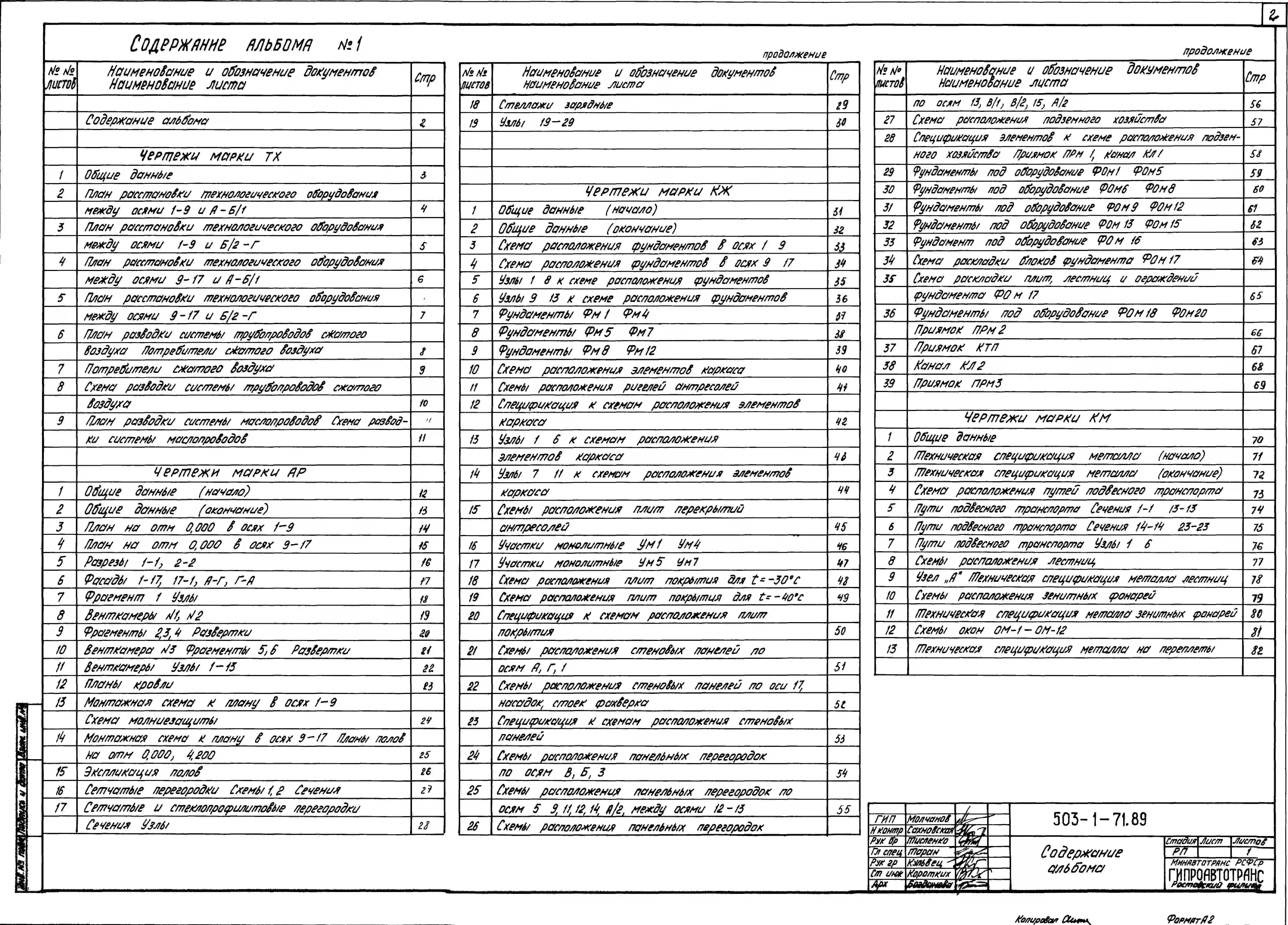 Типовой проект 503-1-71.89 Производственный корпус технического обслуживания и текущего ремонта автономного автотранспортного предприятия на 300 грузовых автомобилей с открытой стоянкой