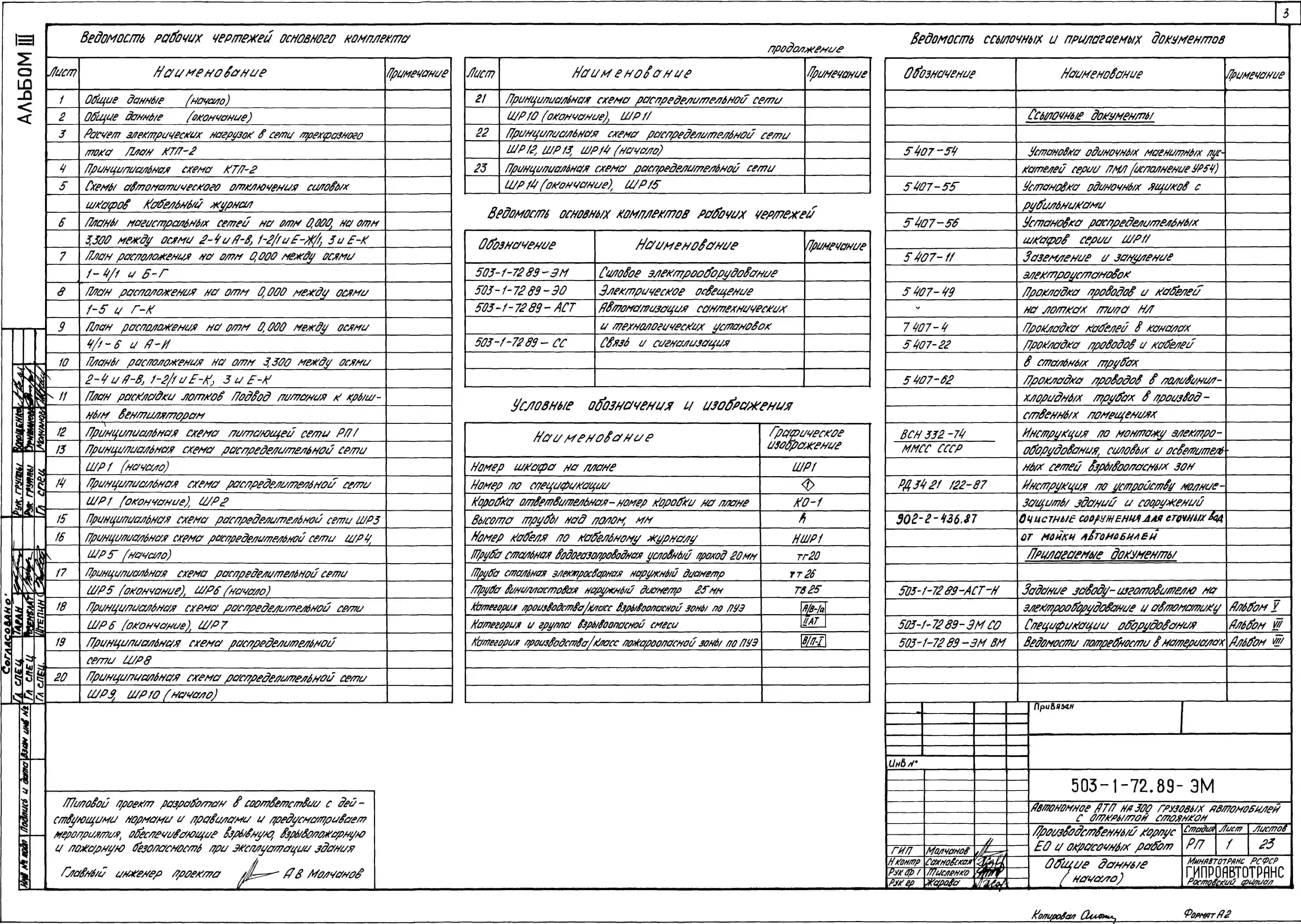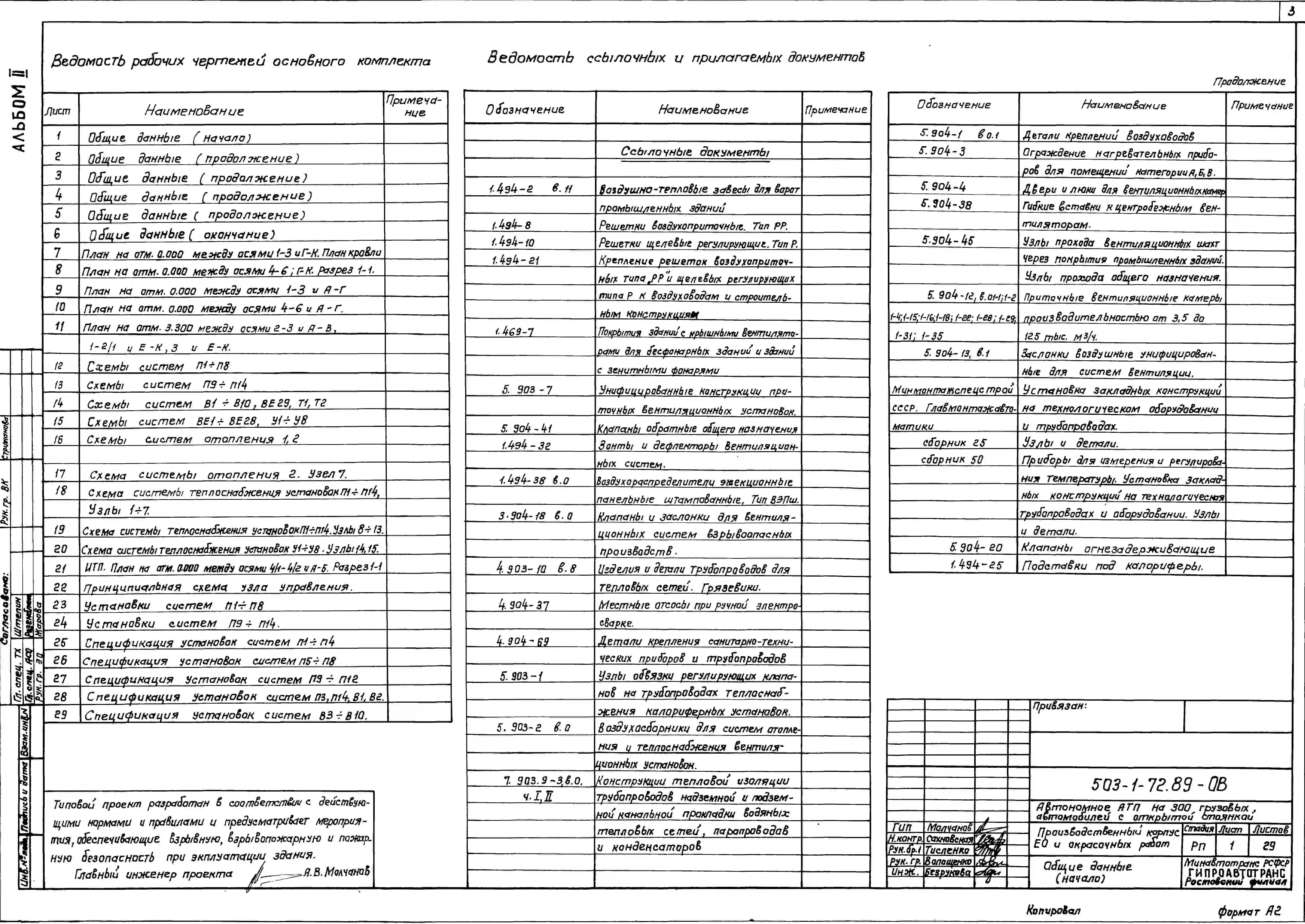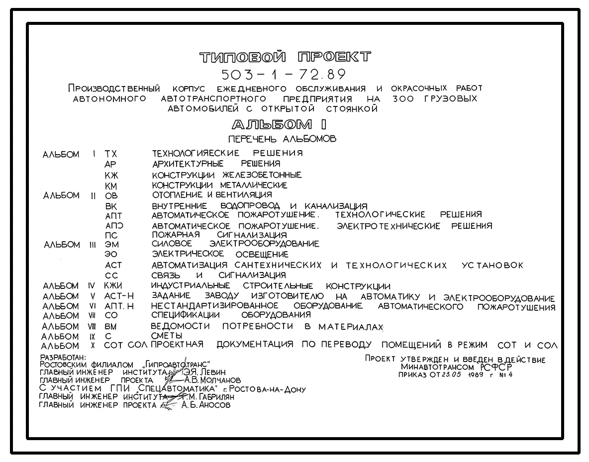 Типовой проект 503-1-72.89 Производственный корпус ежедневного обслуживания и окрасочных работ автономного автотранспортного предприятия на 300 грузовых автомобилей с открытой стоянкой