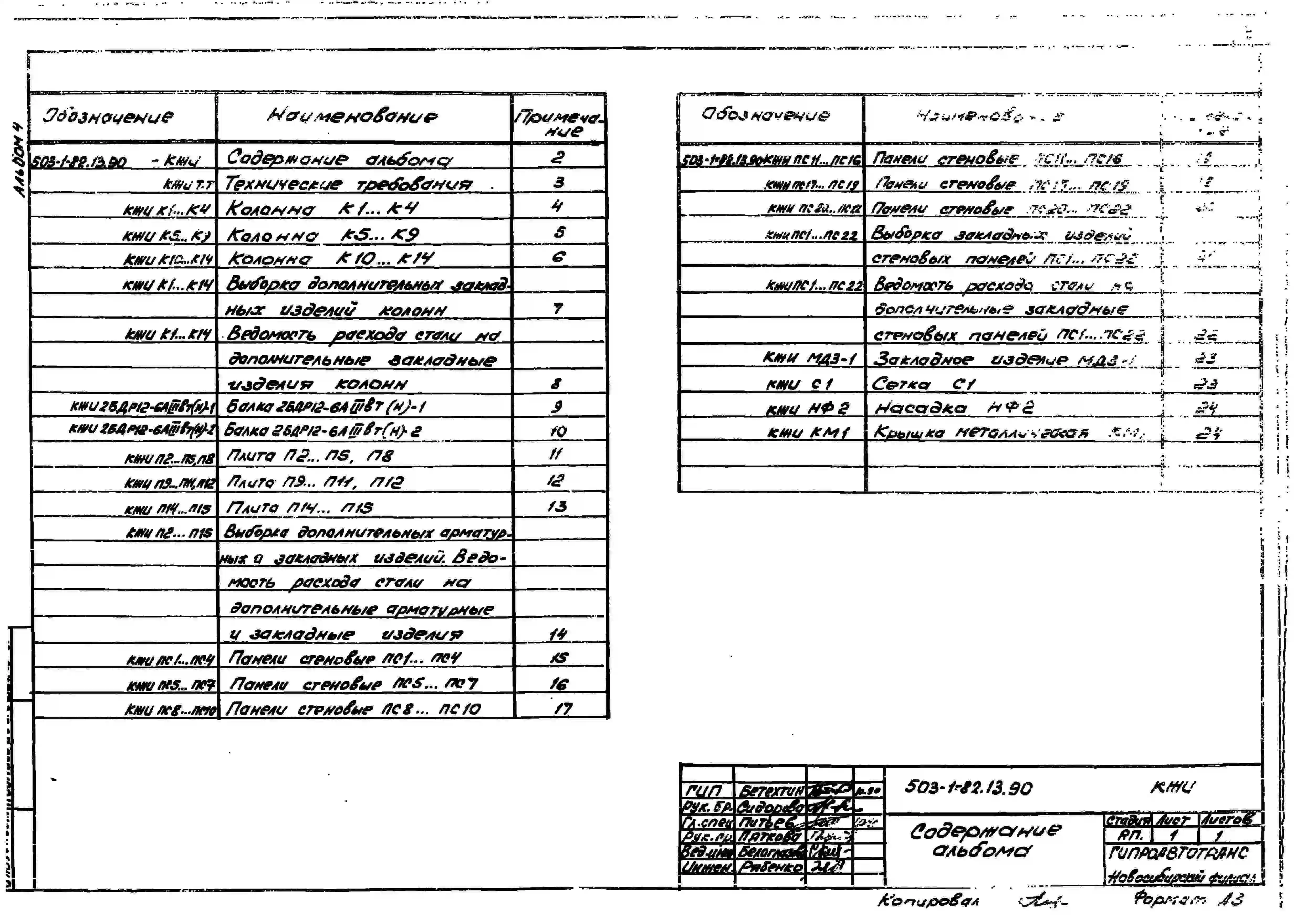 Типовой проект 503-1-82.13.90 Гараж на 5 грузовых автомобилей с закрытой стоянкой. Стены панельные (для строительства в Западно-Сибирской зоне Российской Федерации)
