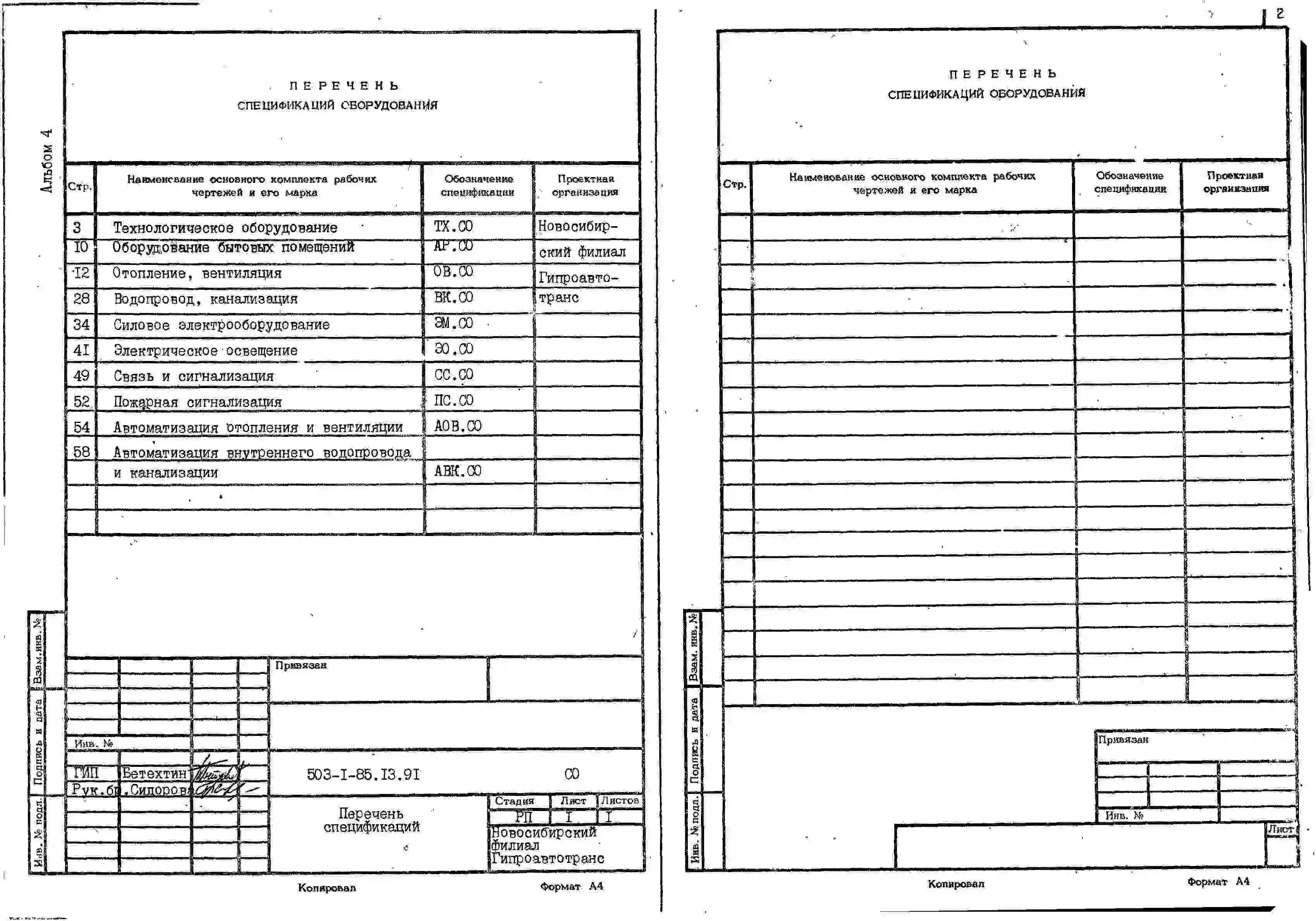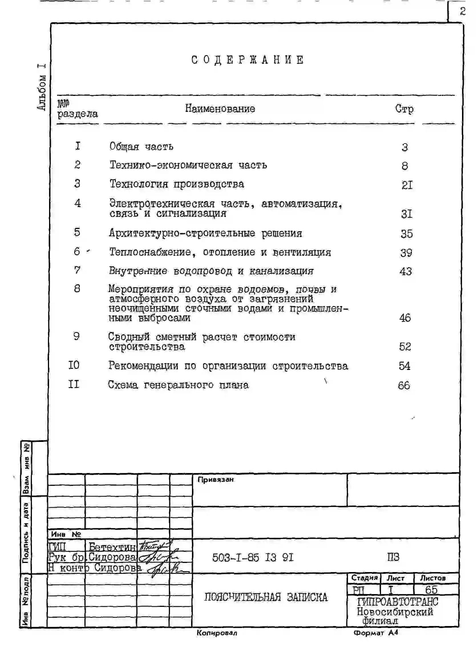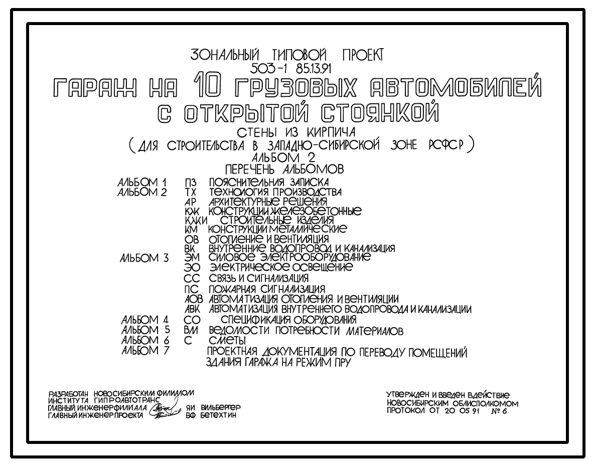 Типовой проект 503-1-85.13.91 Гараж на 10 грузовых автомобилей с открытой стоянкой. Стены из кирпича (для строительства в Западно-Сибирской зоне РСФСР)