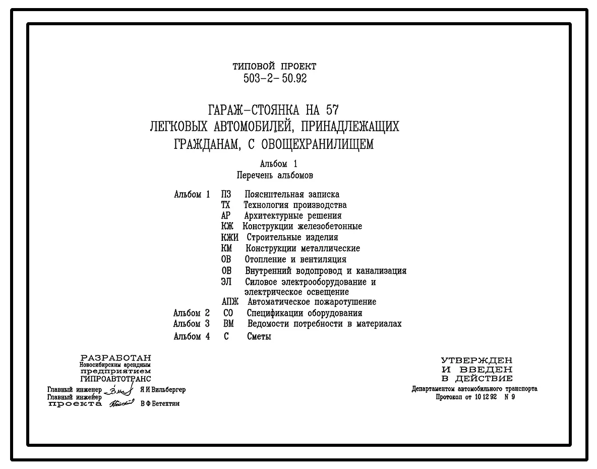 Типовой проект 503-2-50.92 Гараж-стоянка на 57 легковых автомобилей, принадлежащих гражданам, с овощехранилищем