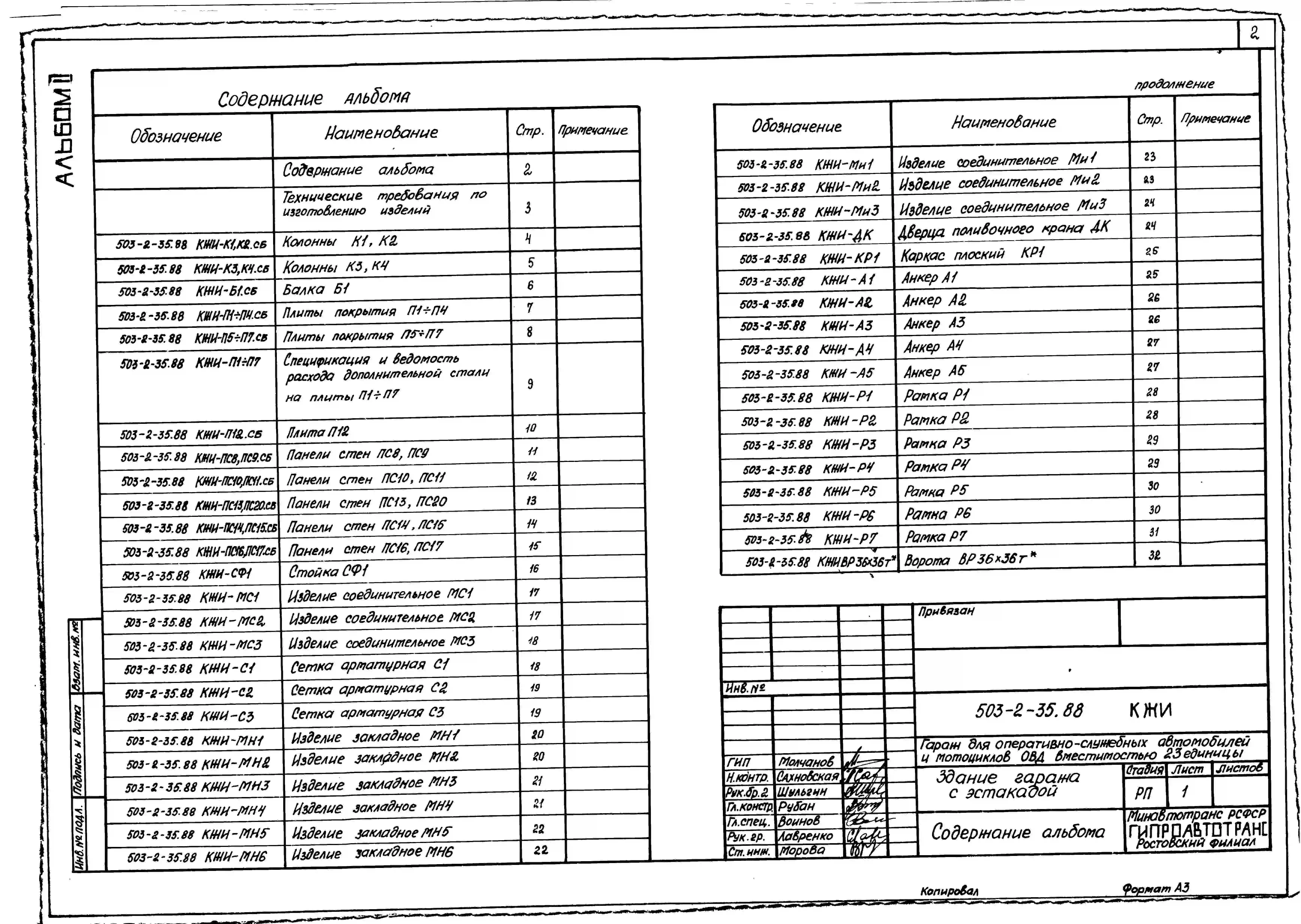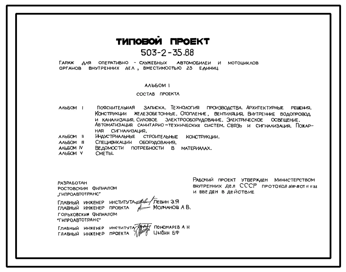 Типовой проект 503-2-35.88 Гараж для оперативно-служебных автомобилей и мотоциклов органов внутренних дел вместимостью 23 единиц