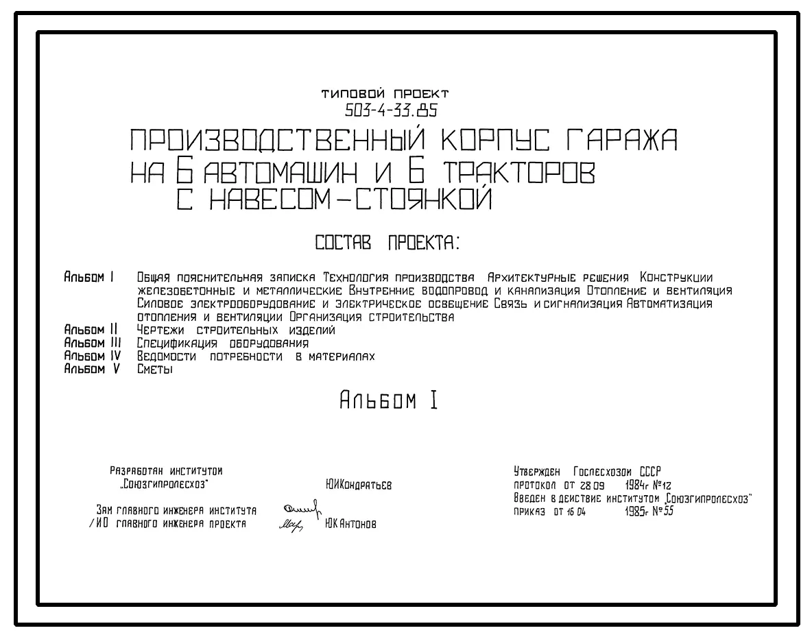 Типовой проект 503-4-33.85 Производственный корпус гаража на 6 автомашин и 6 тракторов