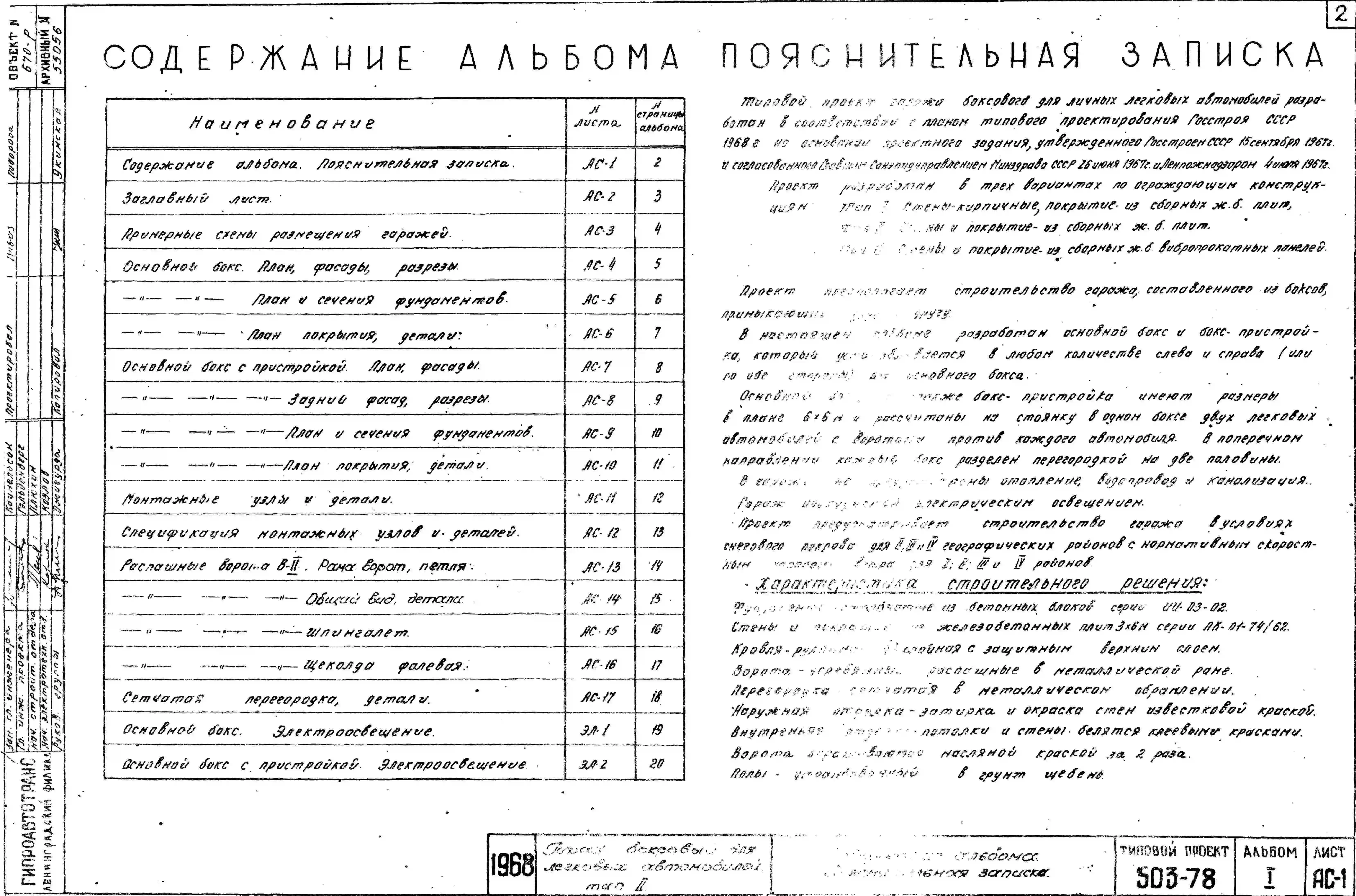 Типовой проект 503-78 Тип 2 Гараж боксовый для легковых автомобилей (стены и покрытие из сборных железобетонных плит).