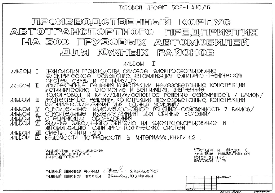 Типовой проект 503-1-41с.86 Производственный корпус автотранспортного предприятия на 300 грузовых автомобилей (для южных районов)