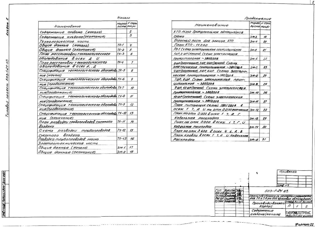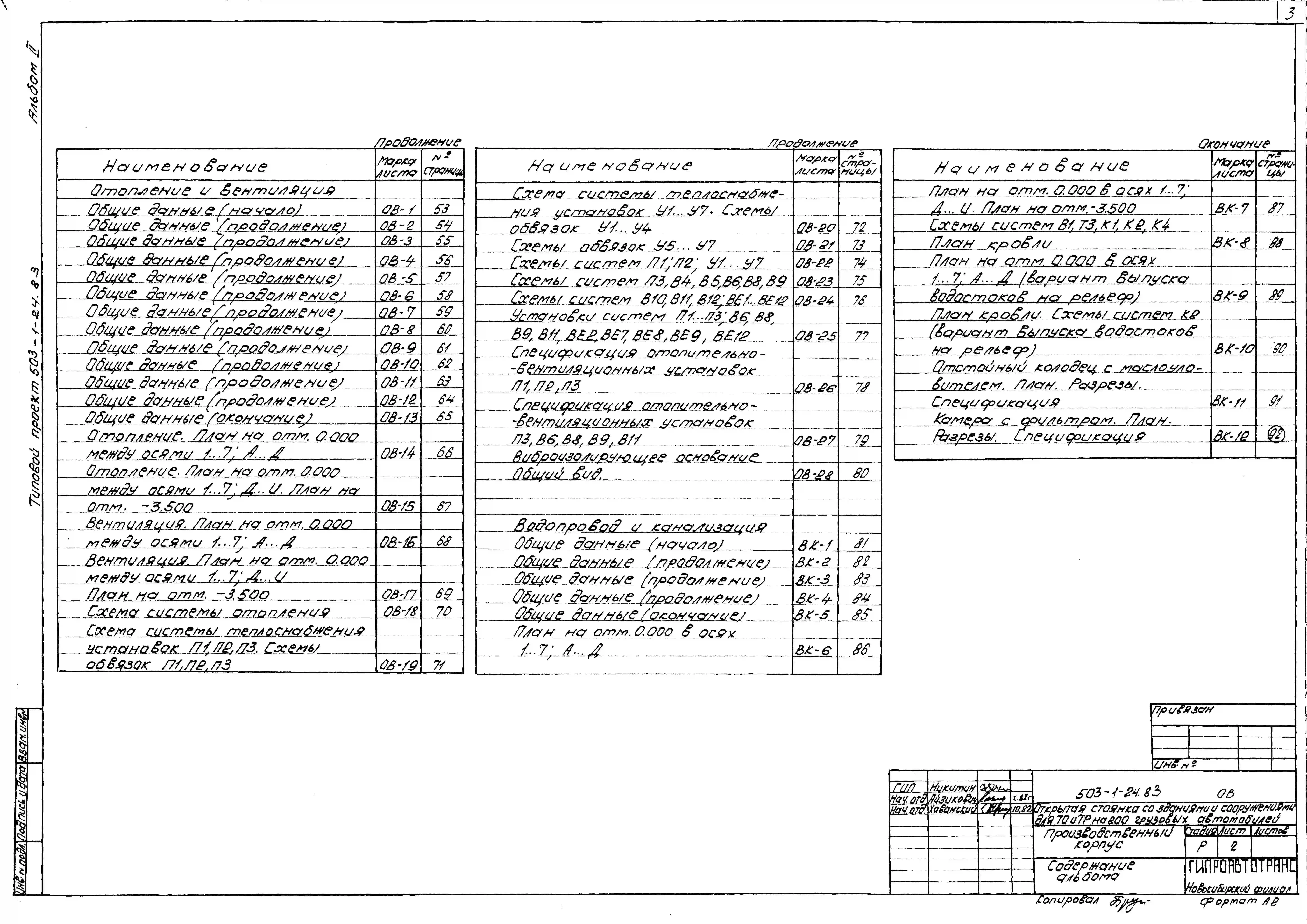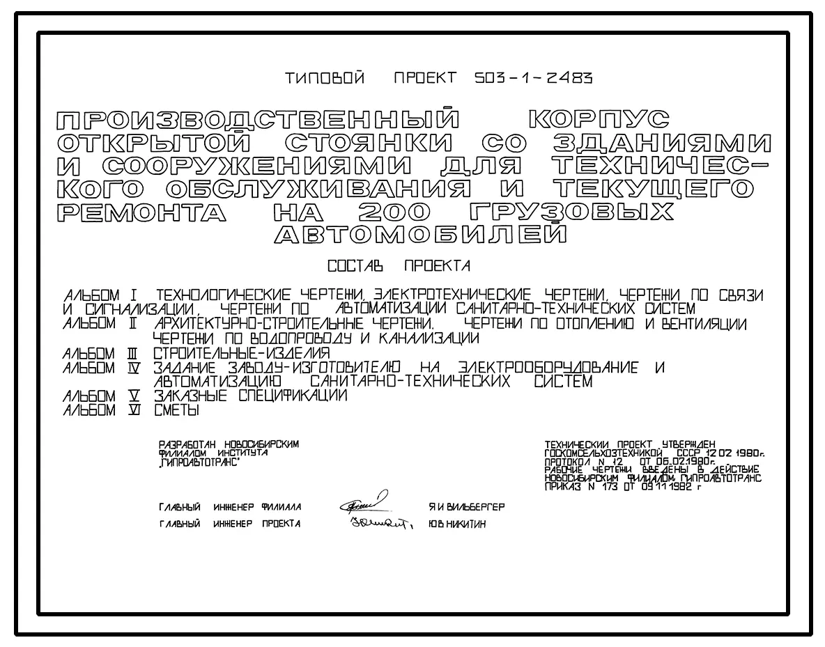 Типовой проект 503-1-24.83 Производственный корпус открытой стоянки со зданиями и сооружениями для технического обслуживания и текущего ремонта на 200 грузовых автомобилей