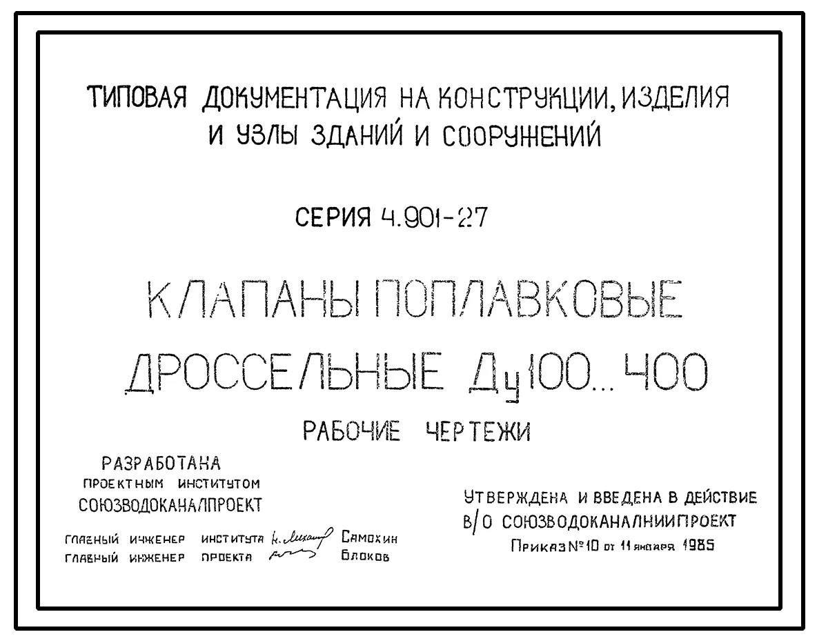 Серия 4.901-27 Клапаны поплавковые дроссельные Ду100...400. Рабочие чертежи.