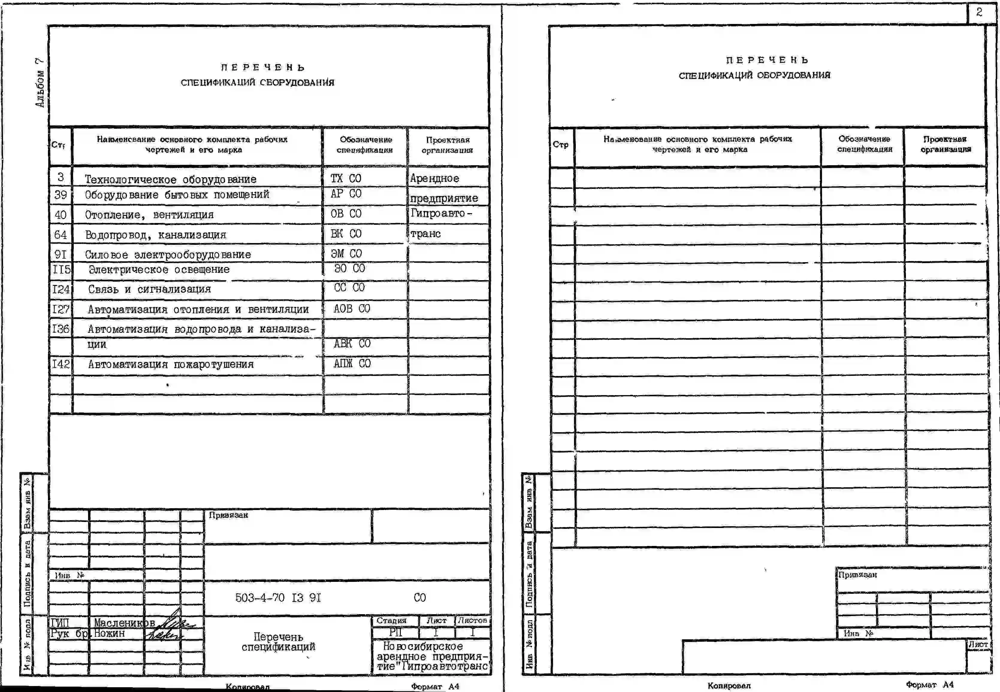 Типовой проект 503-4-70.13.91 Производственный корпус автотранспортного предприятия на 100 грузовых автомобилей с частично закрытой стоянкой (для строительства в Западно-Сибирской зоне )