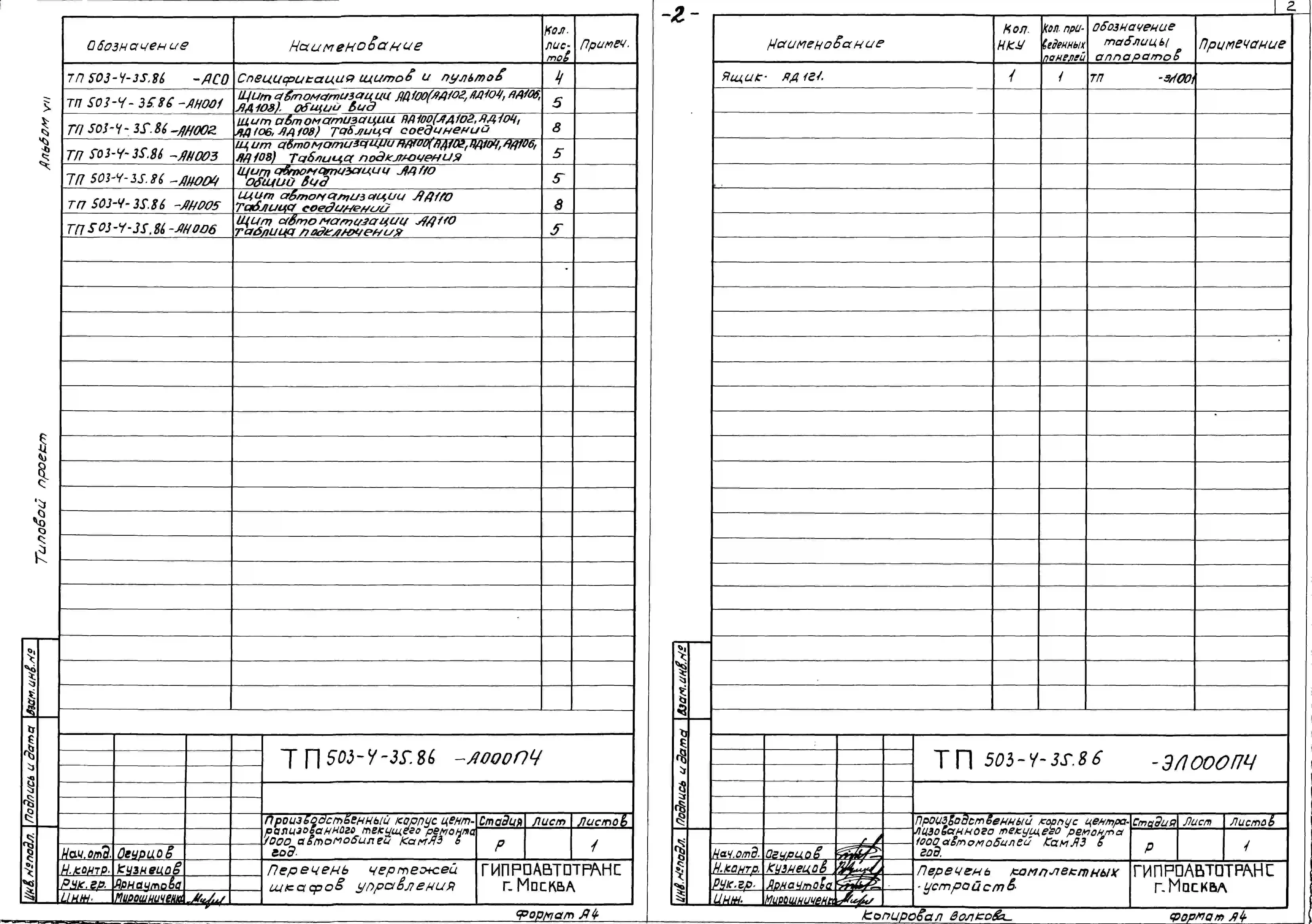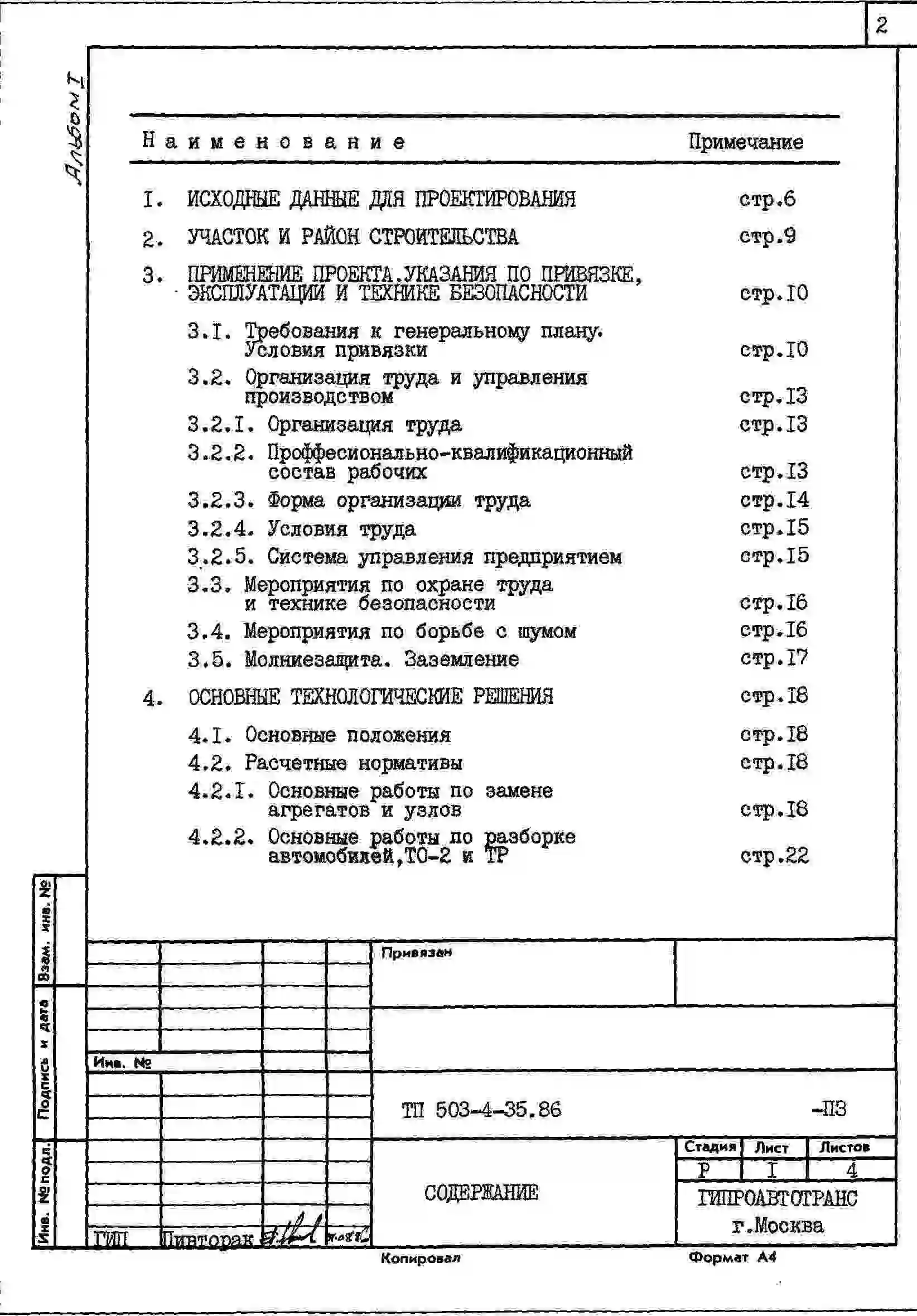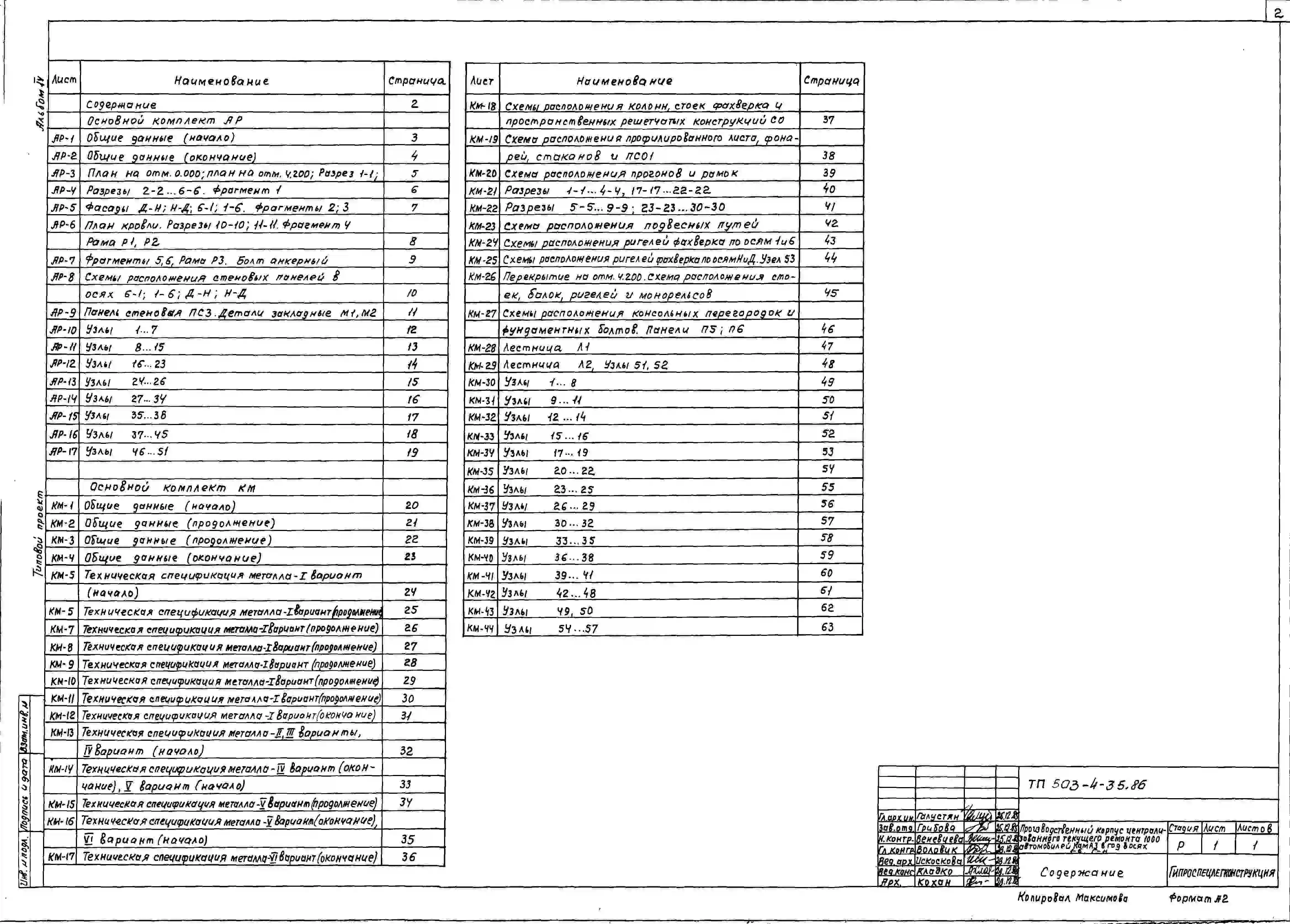 Типовой проект 503-4-35.86 Производственный корпус централизованного текущего ремонта 1000 автомобилей КамАЗ в год