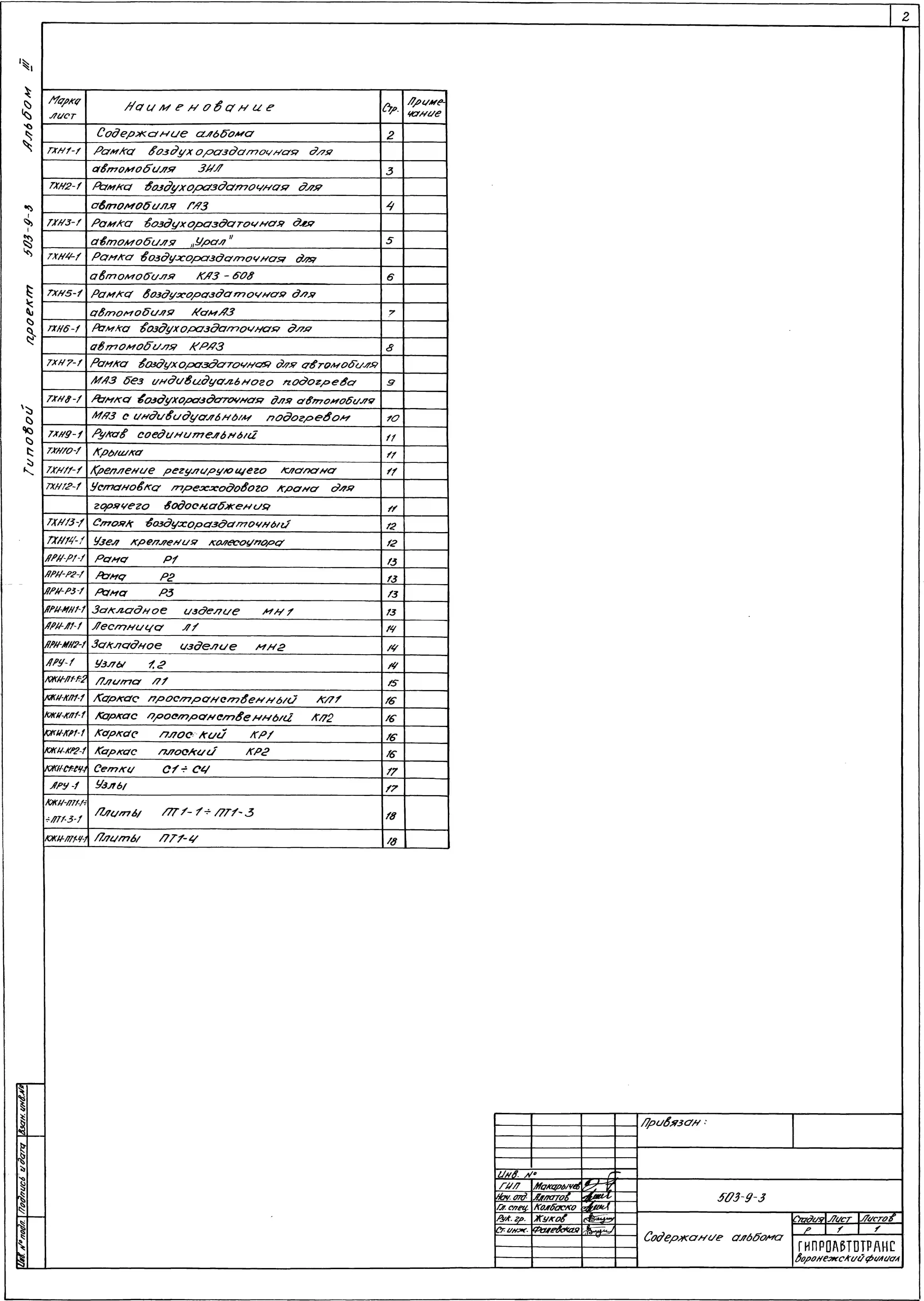 Типовой проект 503-9-3 Установки воздухоподогрева грузовых автомобилей (подземный вариант с теплоносителем – вода 95–70 С)