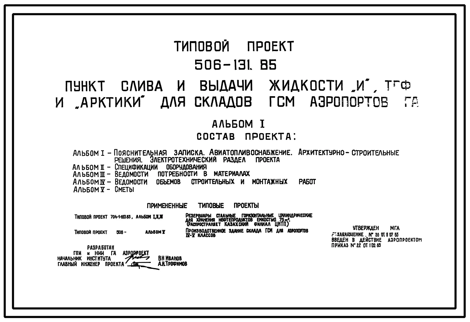 Типовой проект 506-131.85 Пункт слива и выдачи жидкости “И”, ТГФ и “Арктика” для складов ГСМ аэропортов ГА