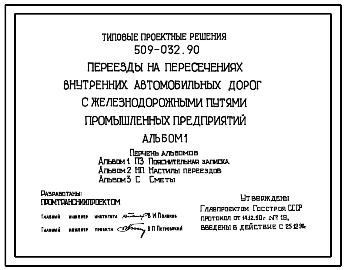 Типовой проект 509-032.90 Переезды на пересечениях внутренних автомобильных дорог с железнодорожными путями промышленных предприятий