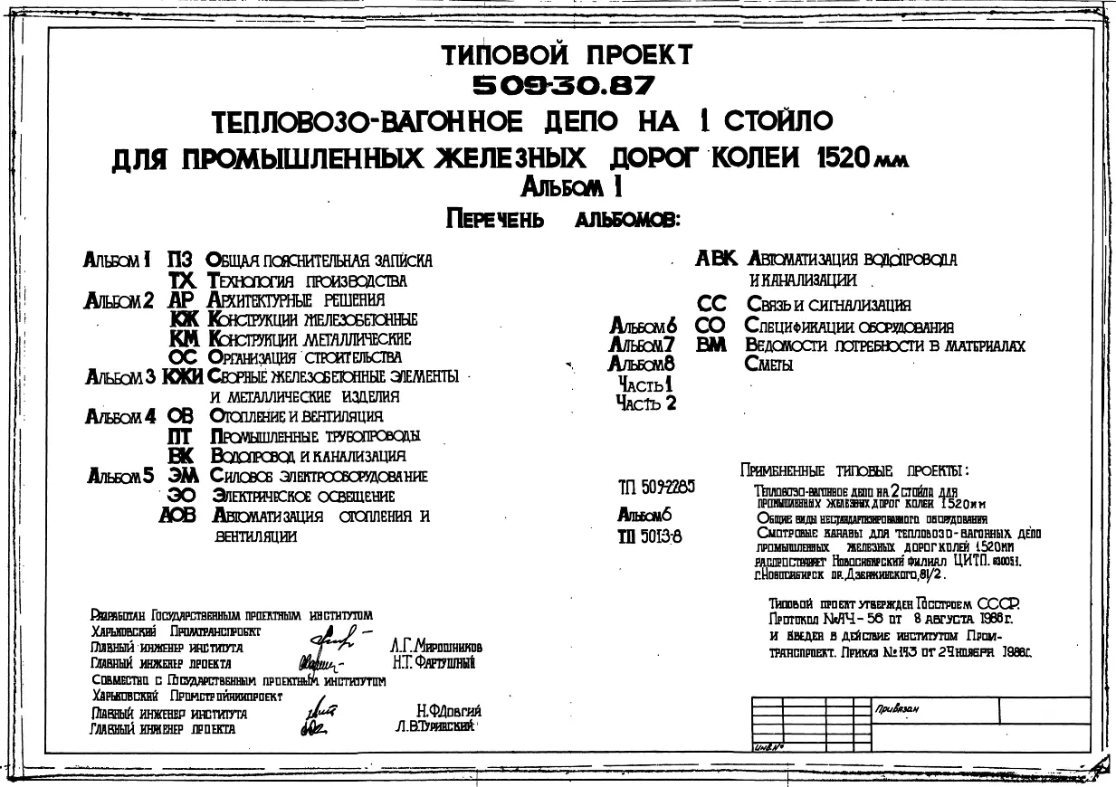 Типовой проект 509-30.87 Тепловозовагонное депо на 1 стойло для промышленных железных дорог колеи 1520 мм