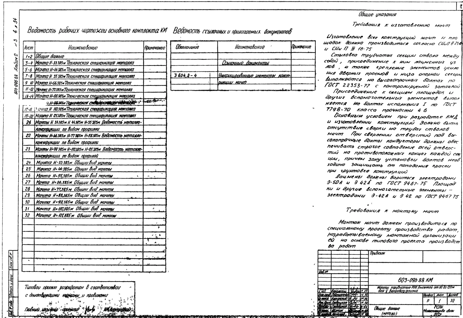 Типовой проект 603-096.88 Мачты трубчатые РРЛ высотой от 30 до 120 м для V ветрового района