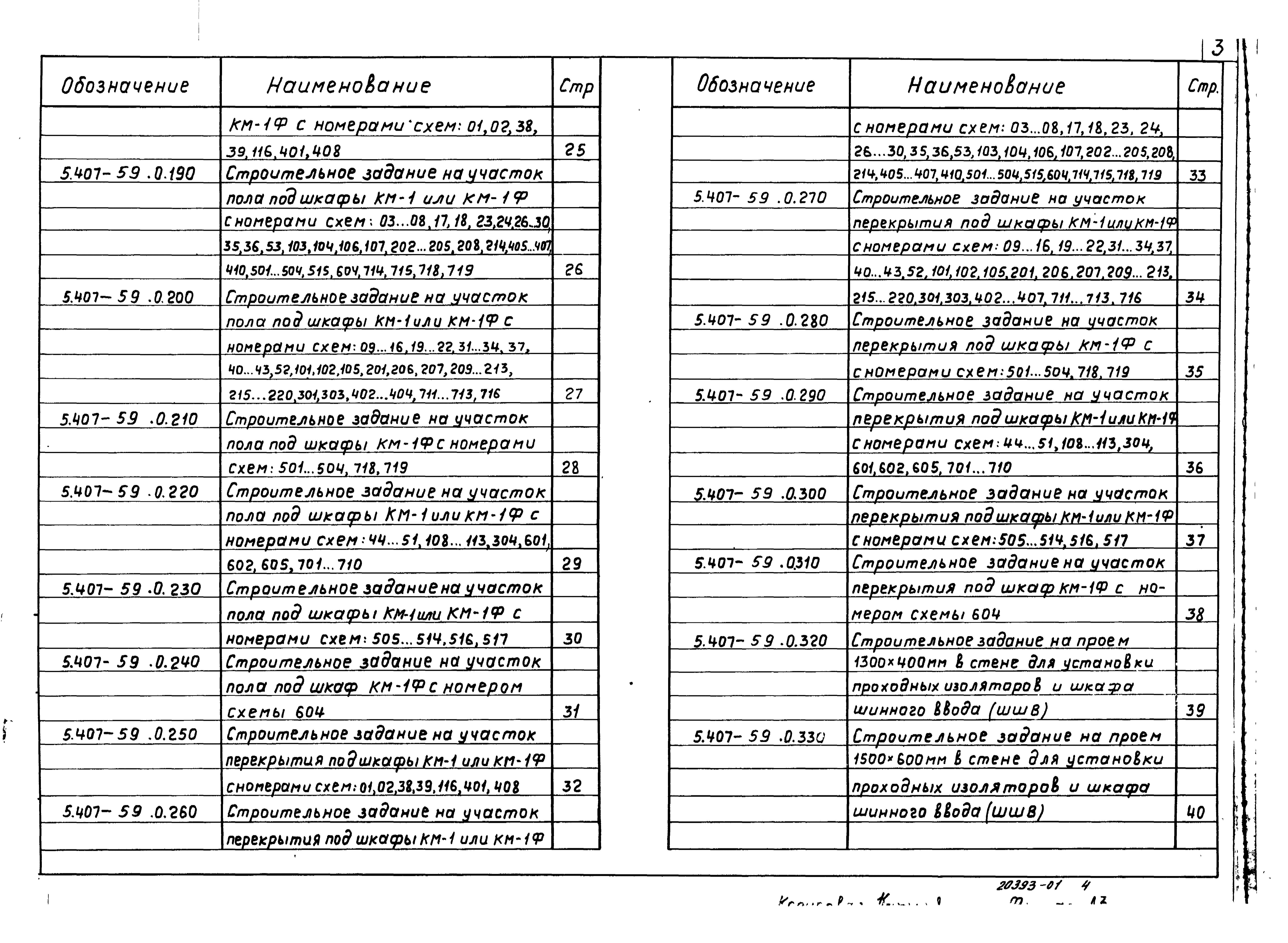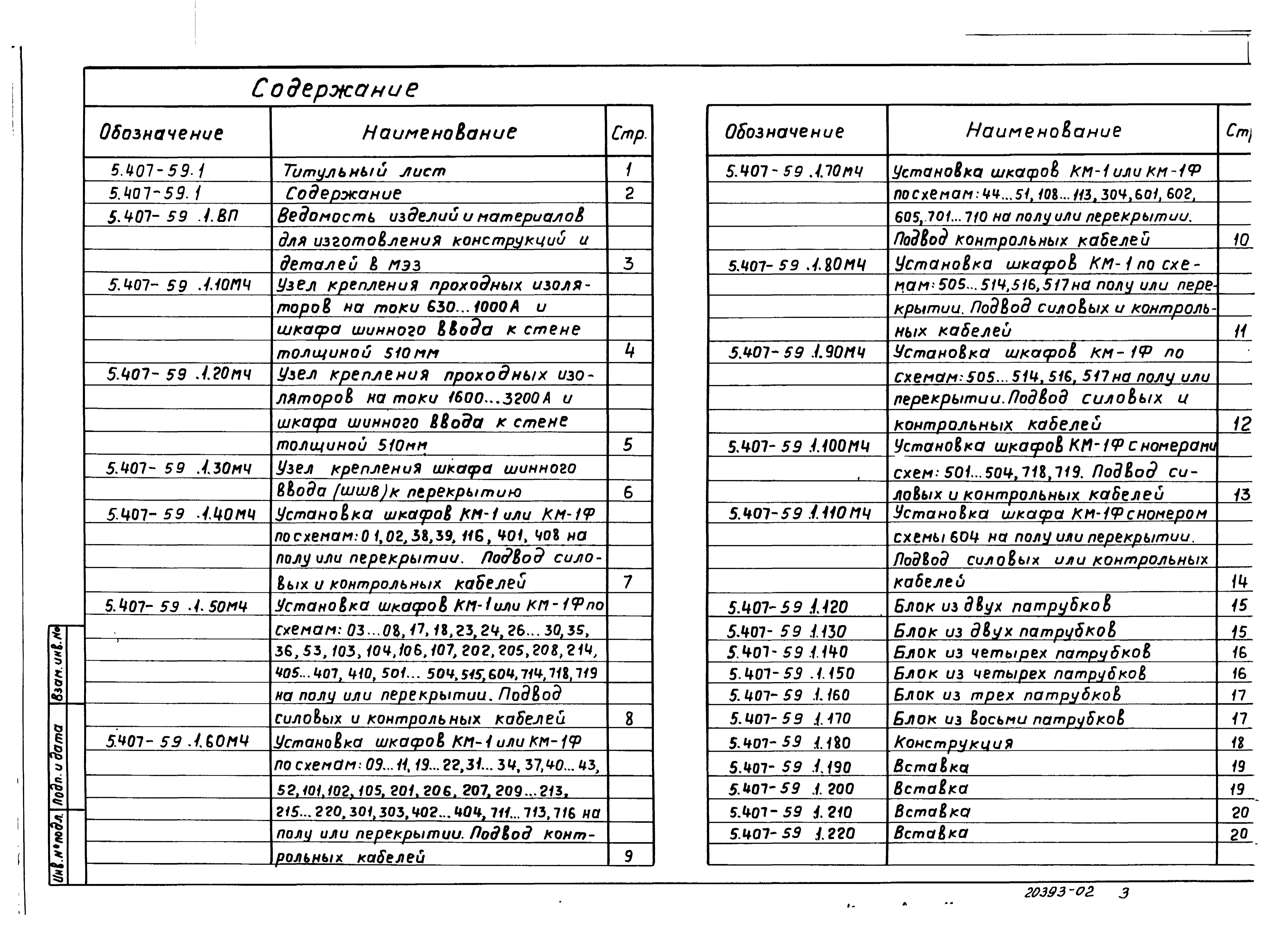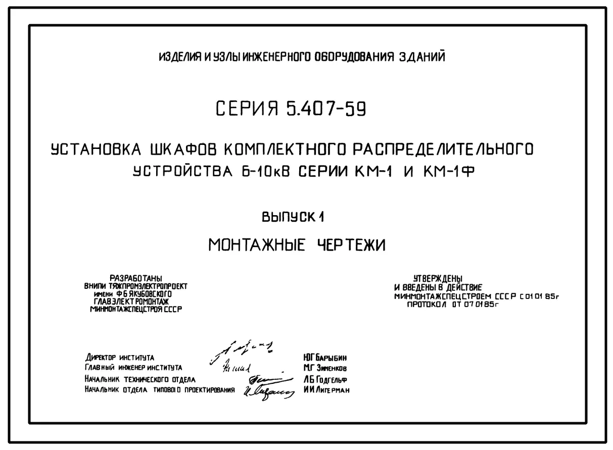 Серия 5.407-59 Установка шкафов комплектного распределительного устройства 6-10 кВ серии КМ-1 и КМ-1Ф. Рабочие чертежи.