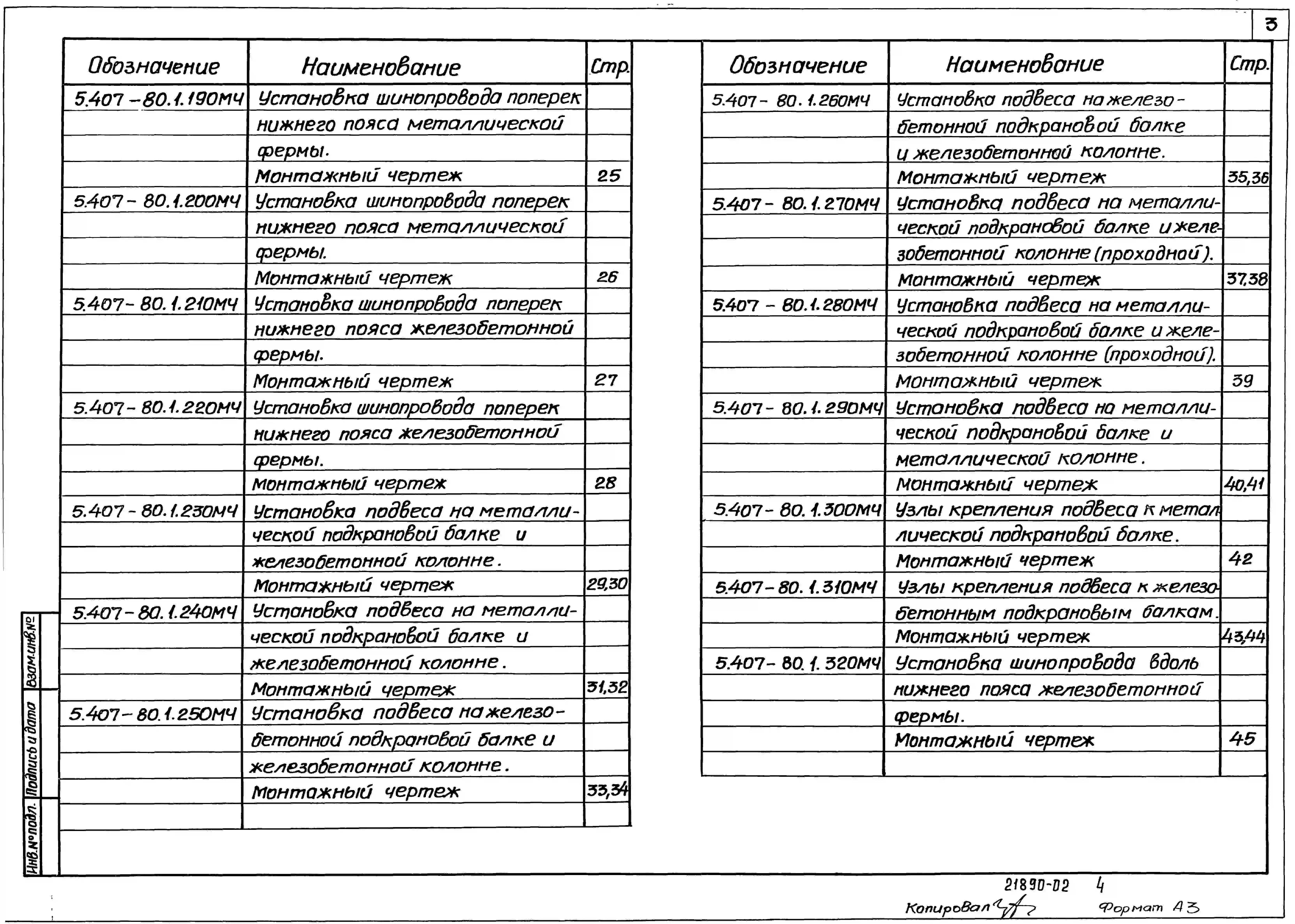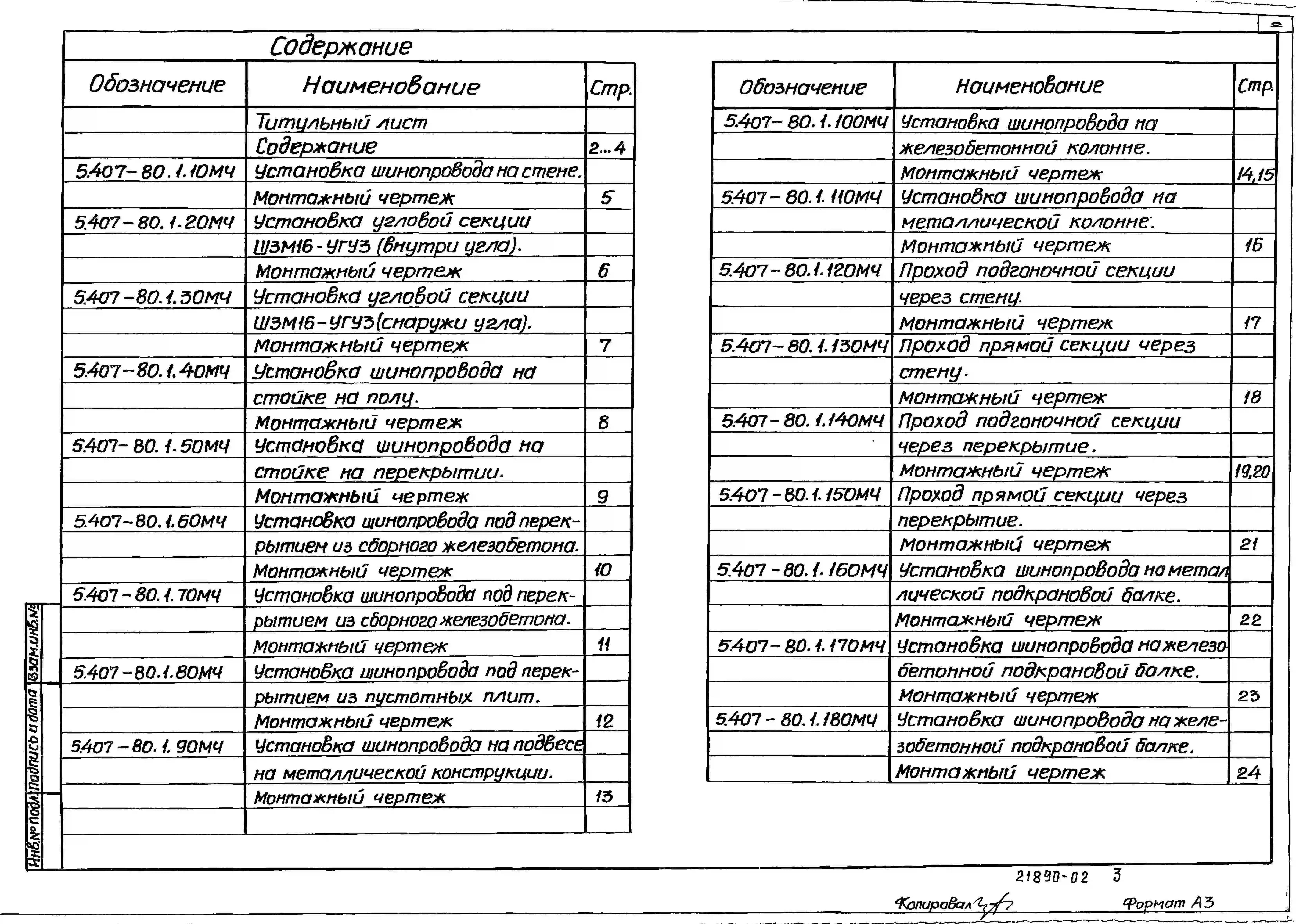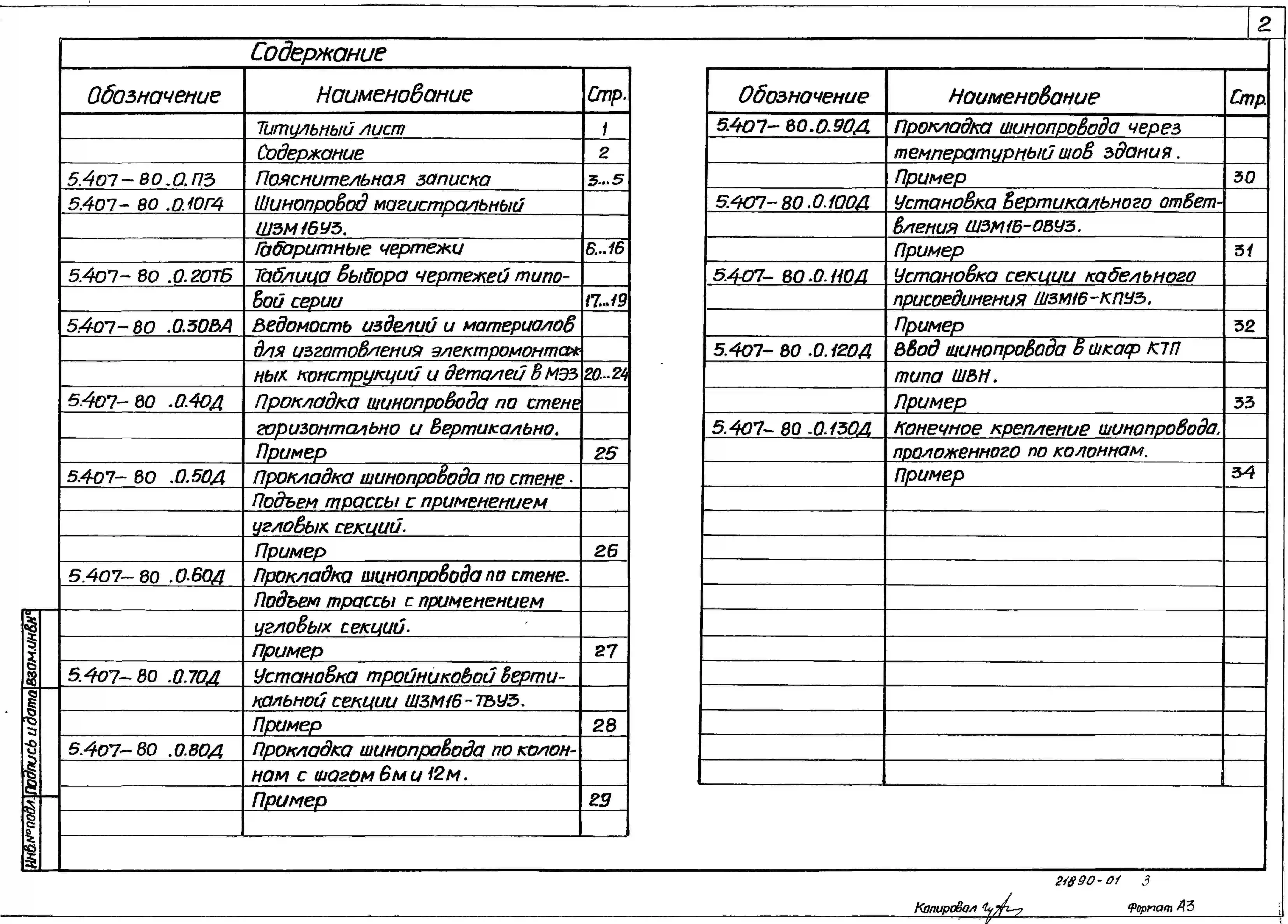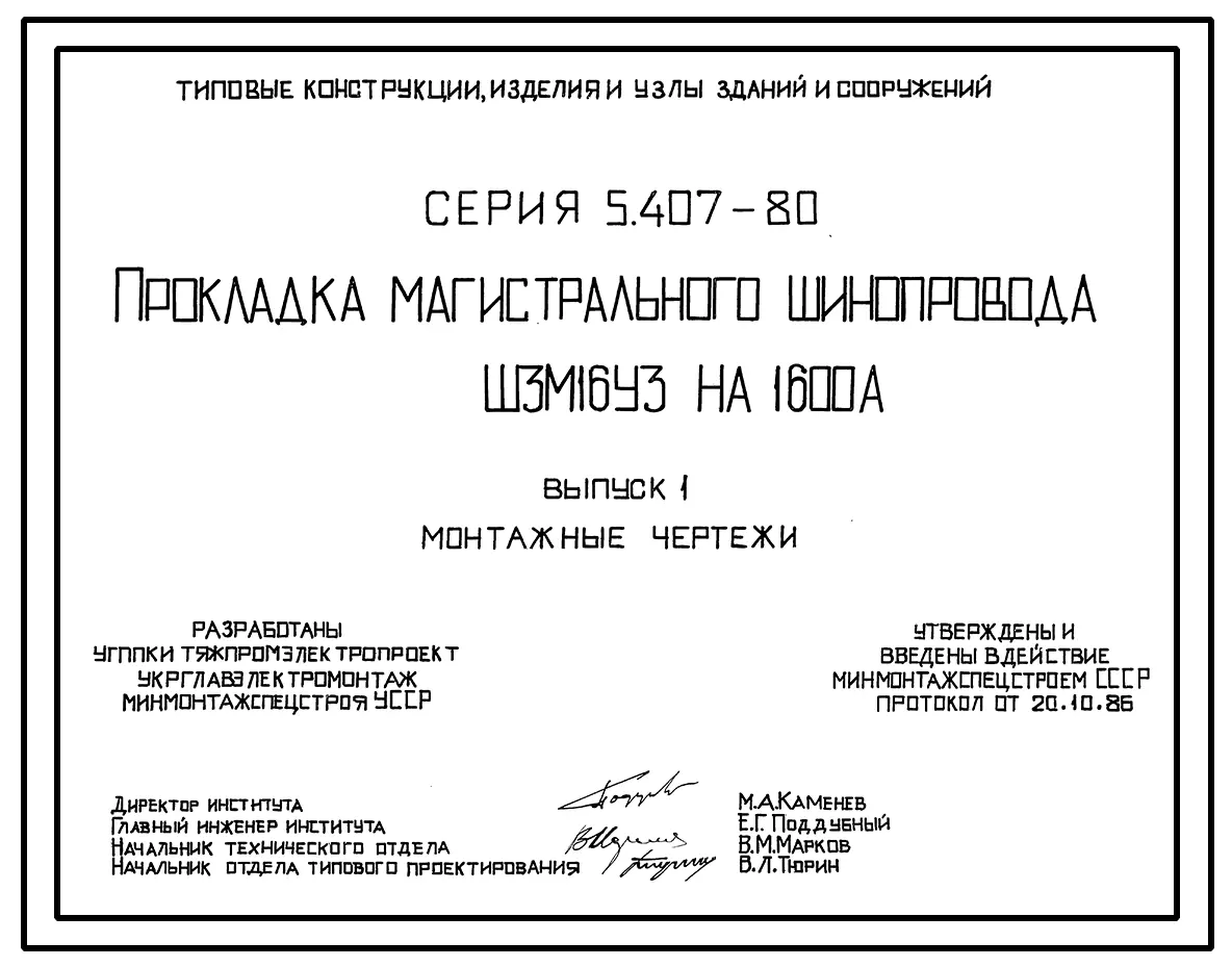 Серия 5.407-80 Прокладка магистрального шинопровода ШЗМ16УЗ на 1600 А. Материалы для проектирования и рабочие чертежи.