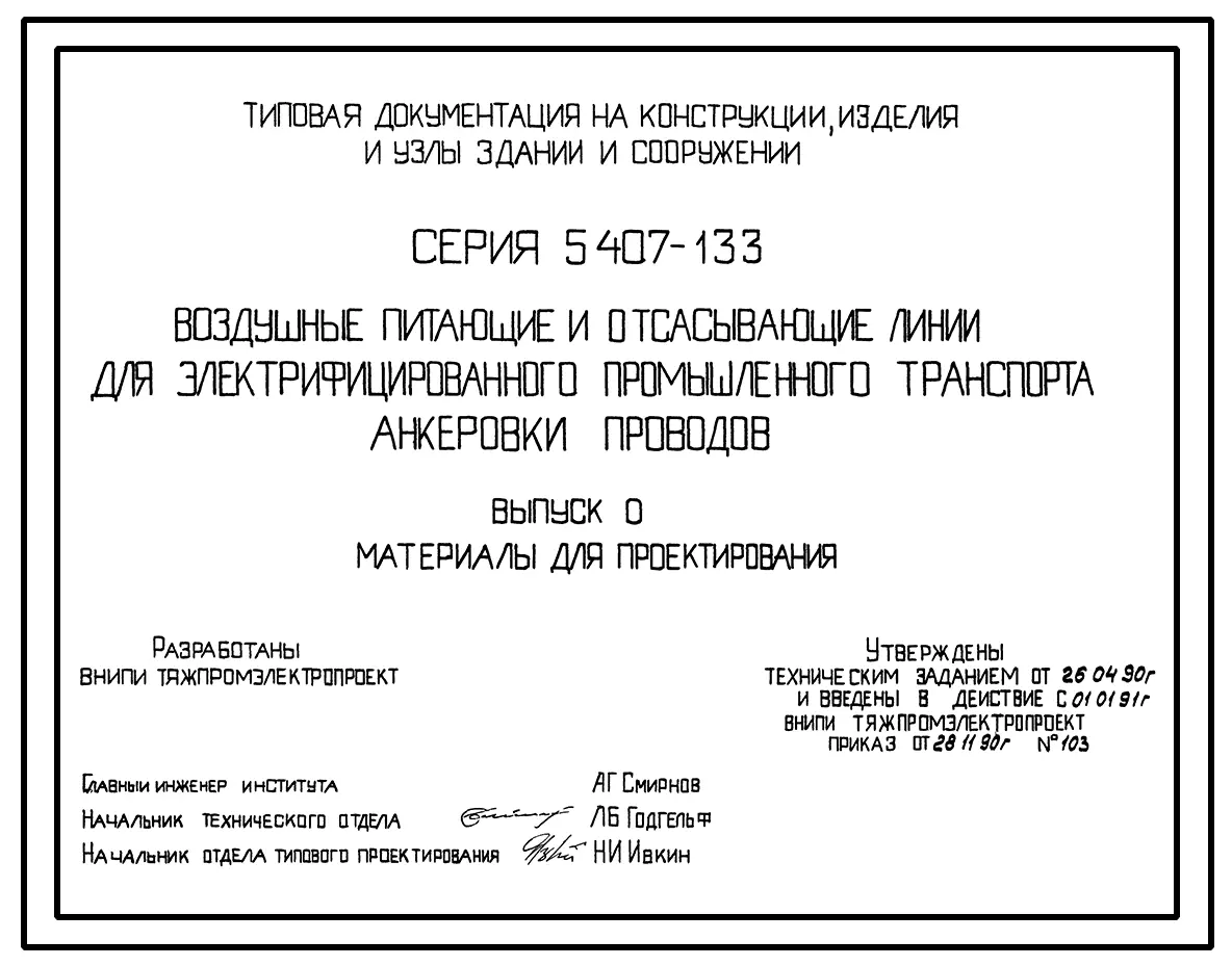 Серия 5.407-133 Воздушные питающие и отсасывающие линии для электрифицированного промышленного транспорта. Анкеровки проводов. Материалы для проектирования и рабочие чертежи.