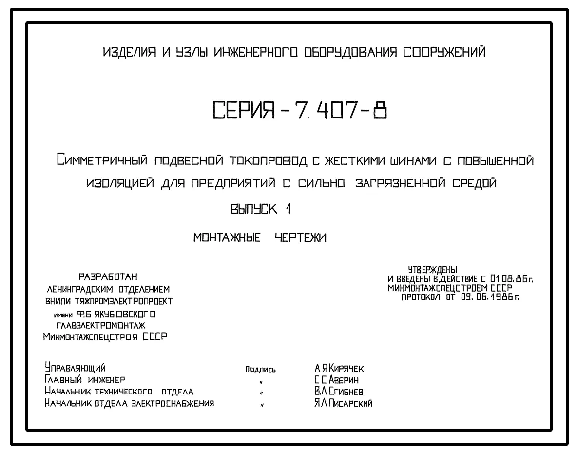 Серия 7.407-8 Симметричный подвесной токопровод с жесткими шинами с повышенной изоляцией для предприятий с сильно загрязненной средой. Материалы для проектирования и рабочие чертежи.