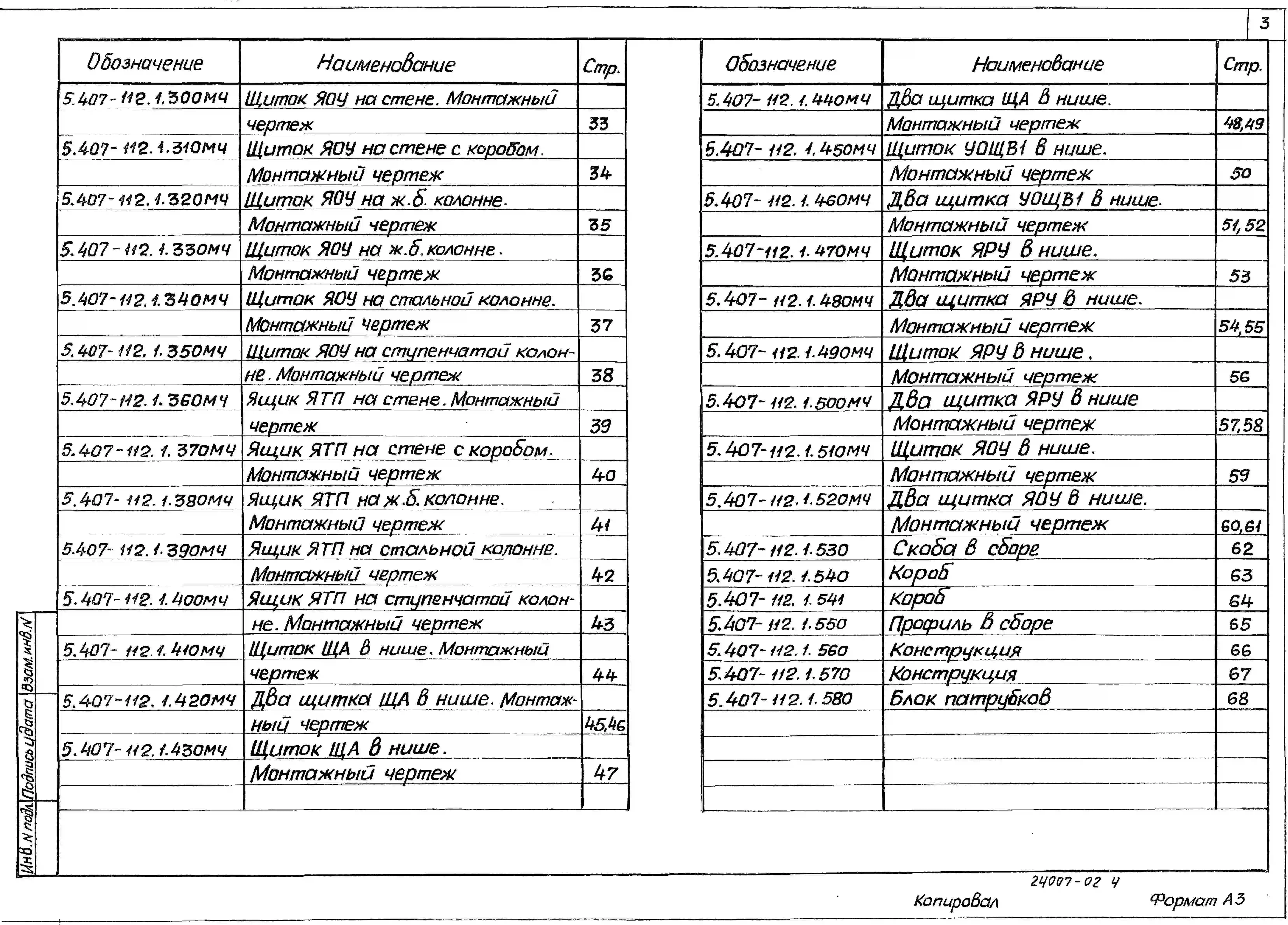 Серия 5.407-112 Установка групповых осветительных щитков. Материалы для проектирования и рабочие чертежи.