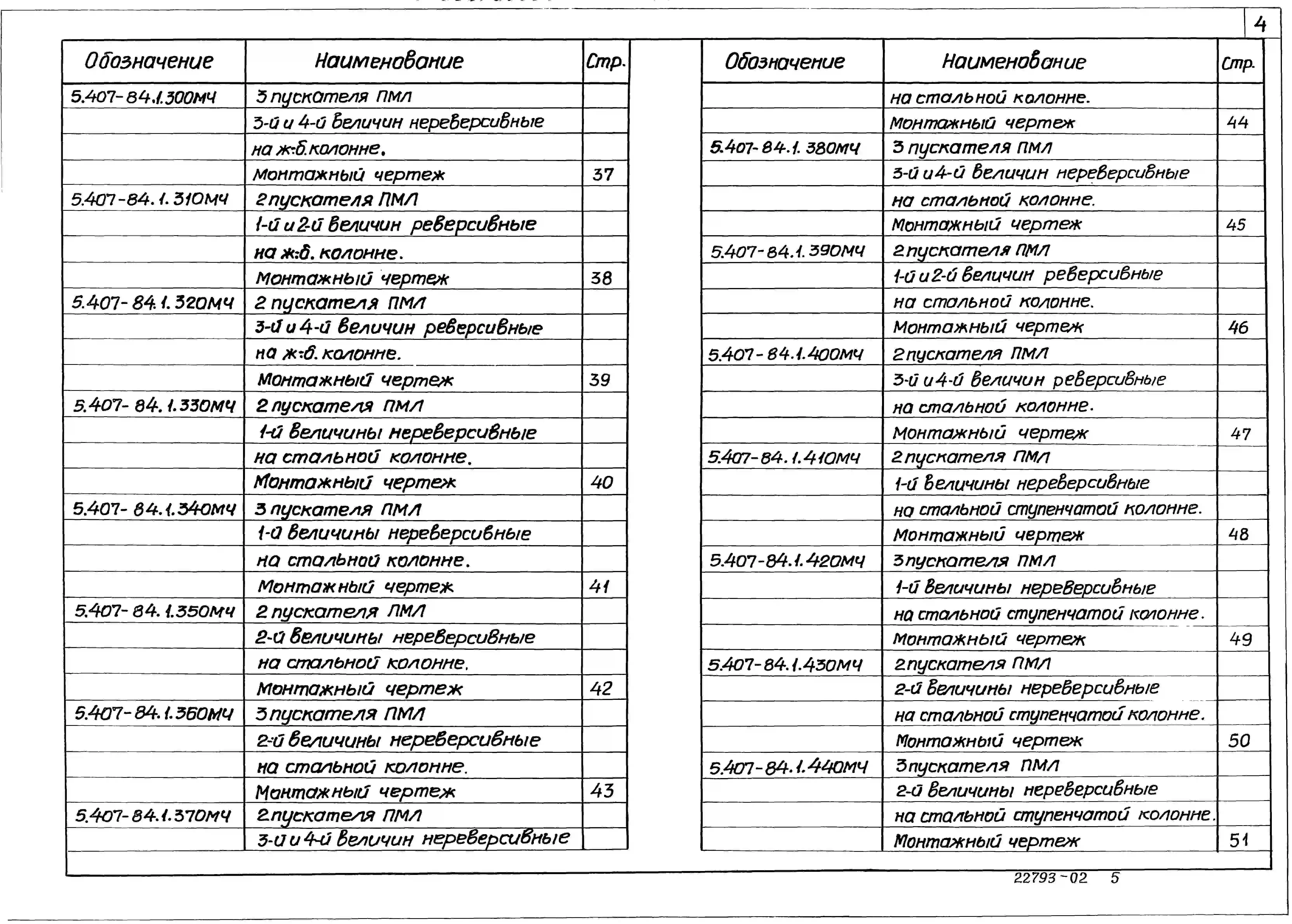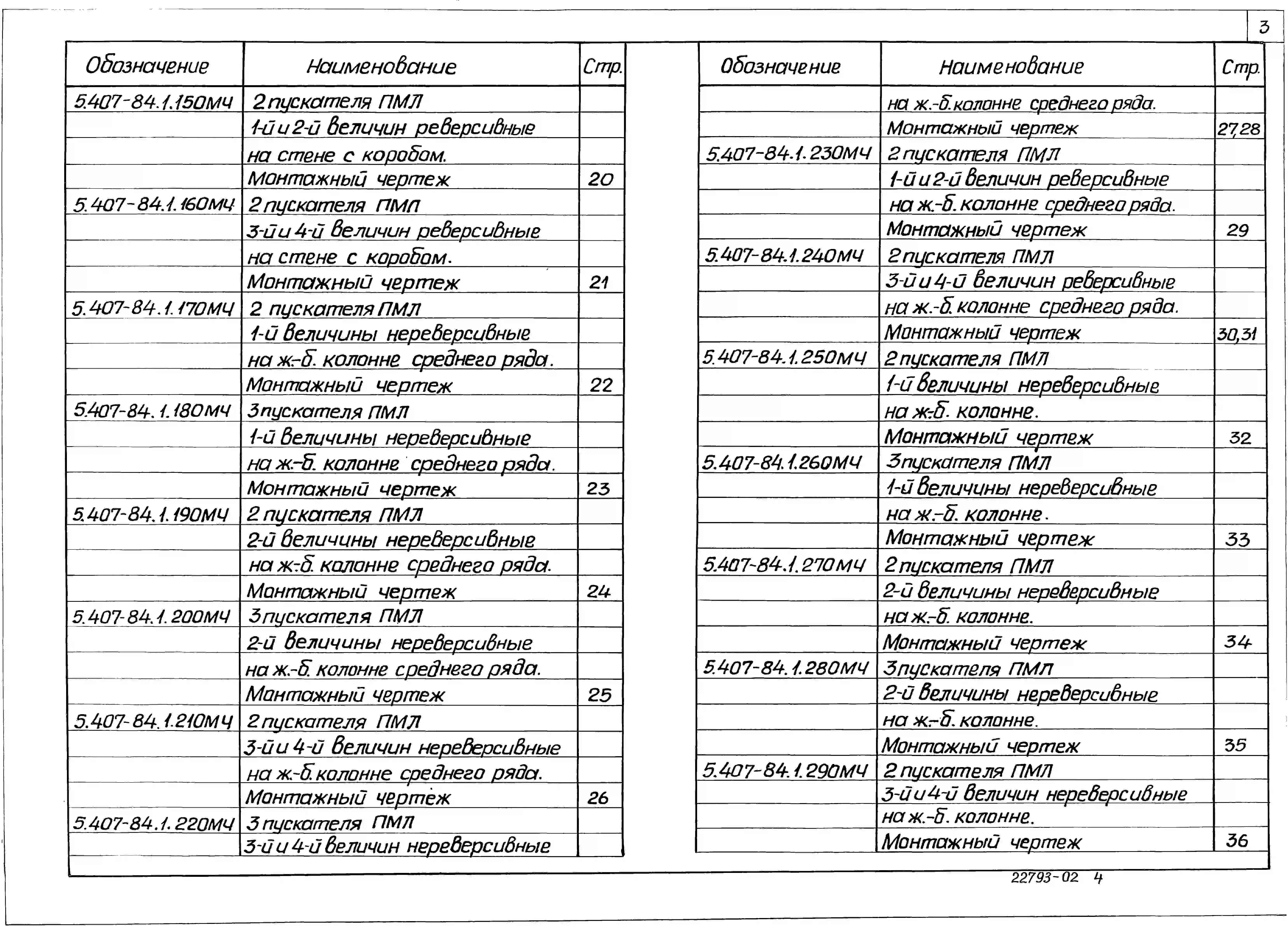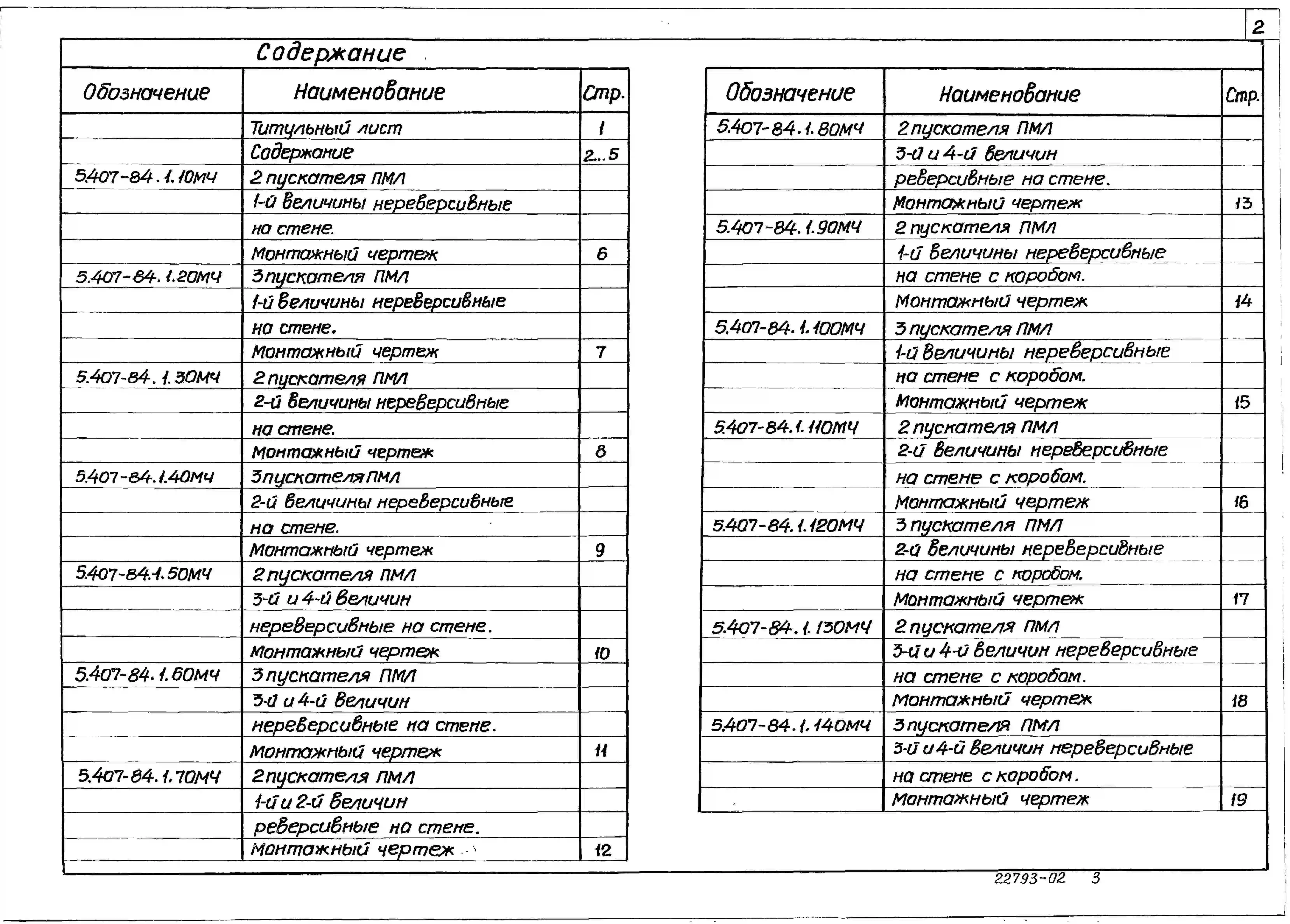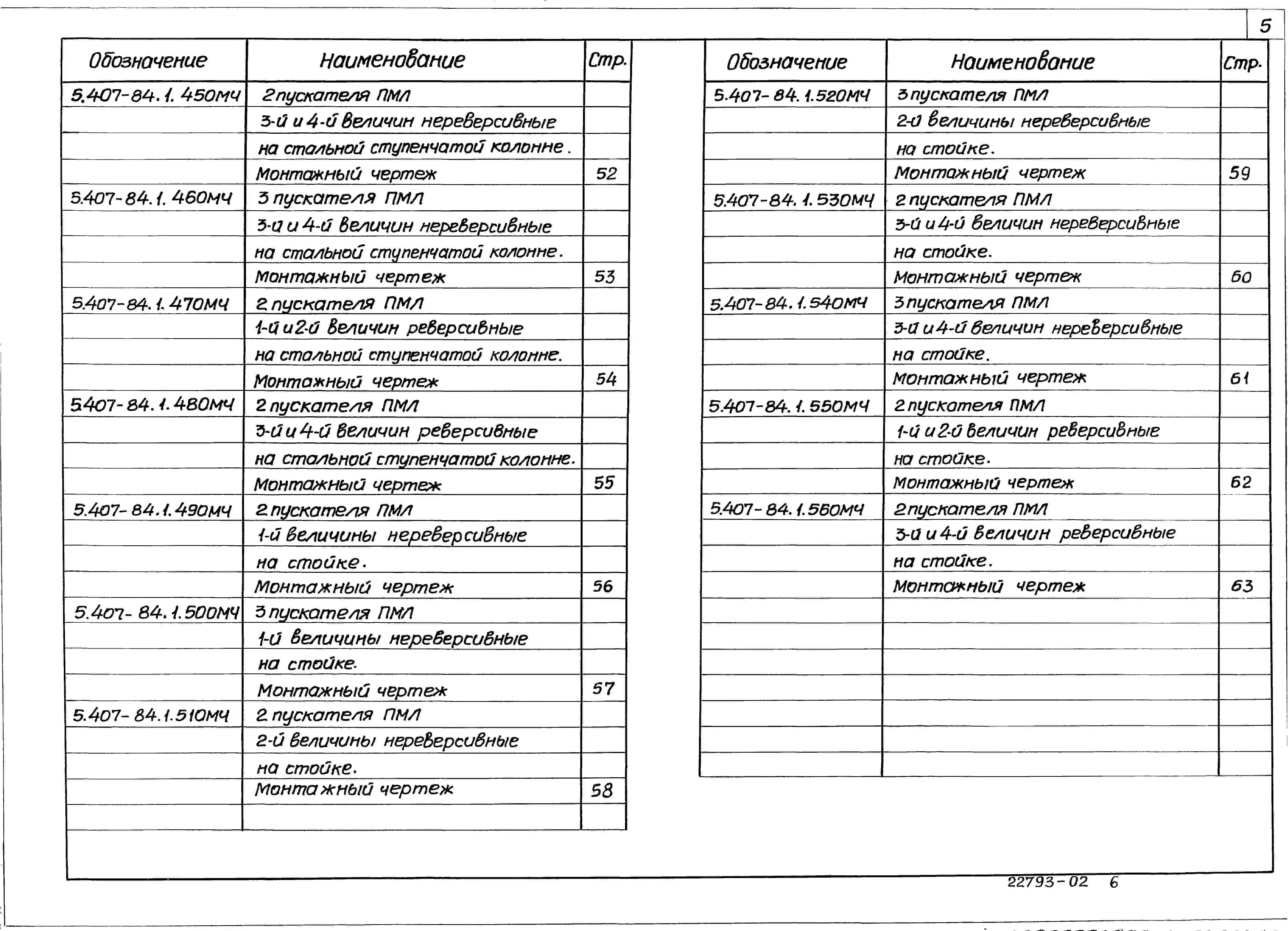 Серия 5.407-84 Установка комплектов из 2 и 3 магнитных пускателей серии ПМЛ (исполнение 1Р54). Материалы для проектирования и рабочие чертежи.
