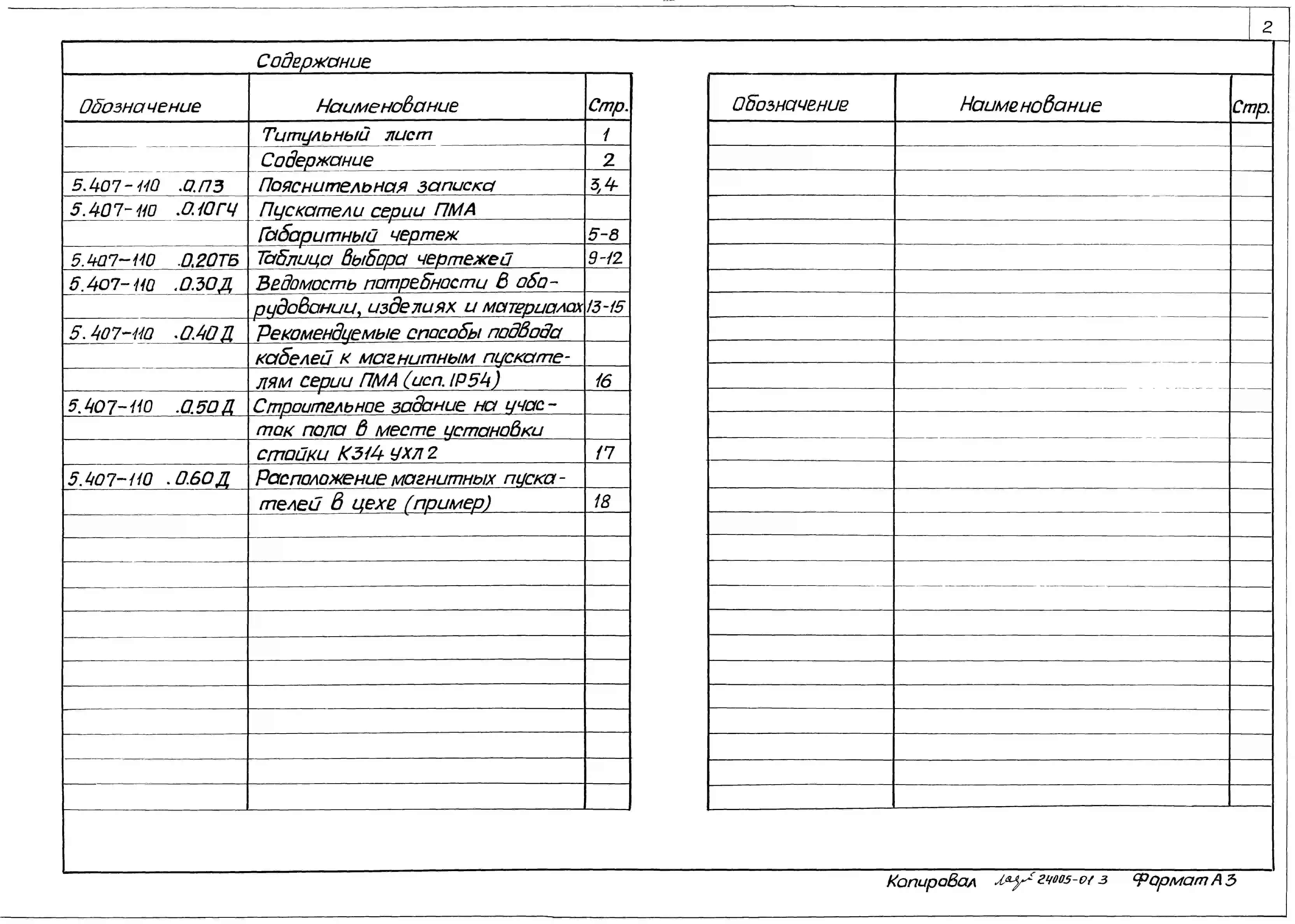 Серия 5.407-110 Установка одиночных электромагнитных пускателей серии ПМА (исполнение 1Р54). Материалы для проектирования и рабочие чертежи.