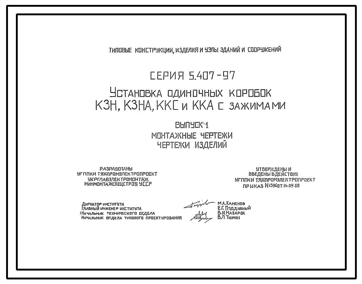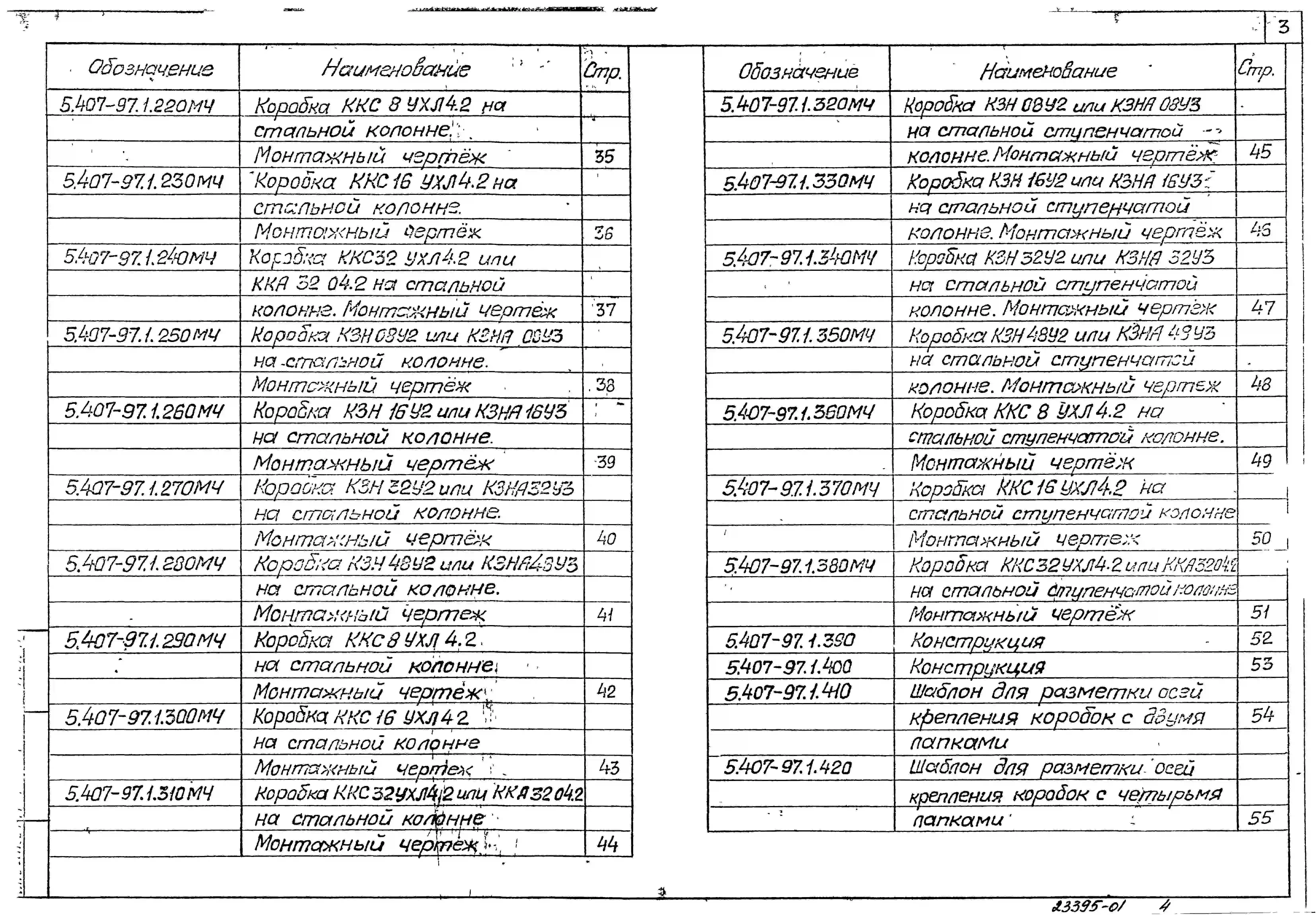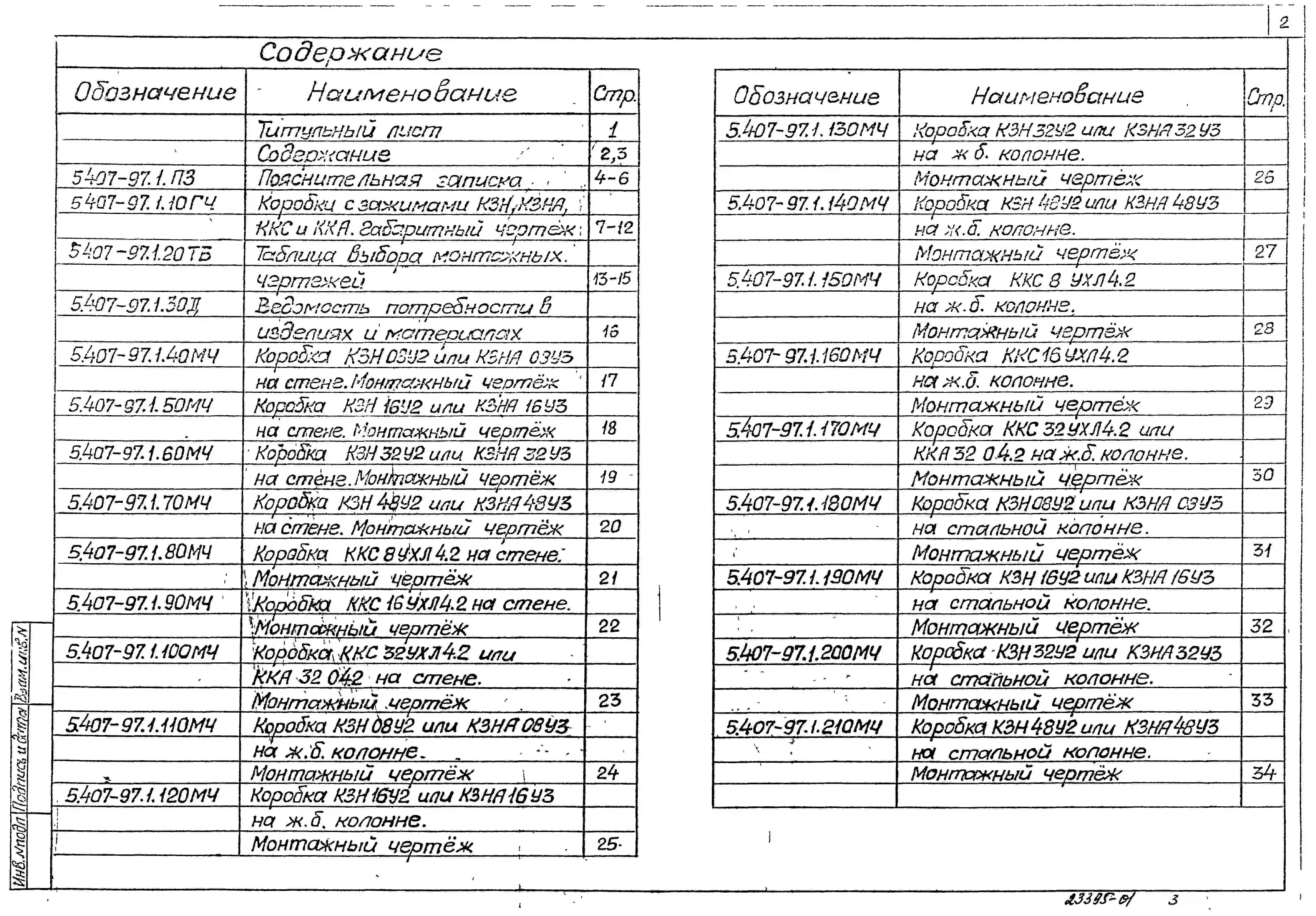 Серия 5.407-97 Установка одиночных коробок КЗН, КЗНА, ККС и ККА с зажимами. Рабочие чертежи.