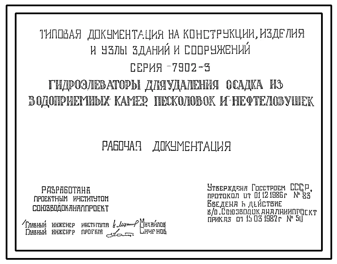 Серия 7.902-3 Гидроэлеваторы для удаления осадка из водоприемных камер. Рабочие чертежи.