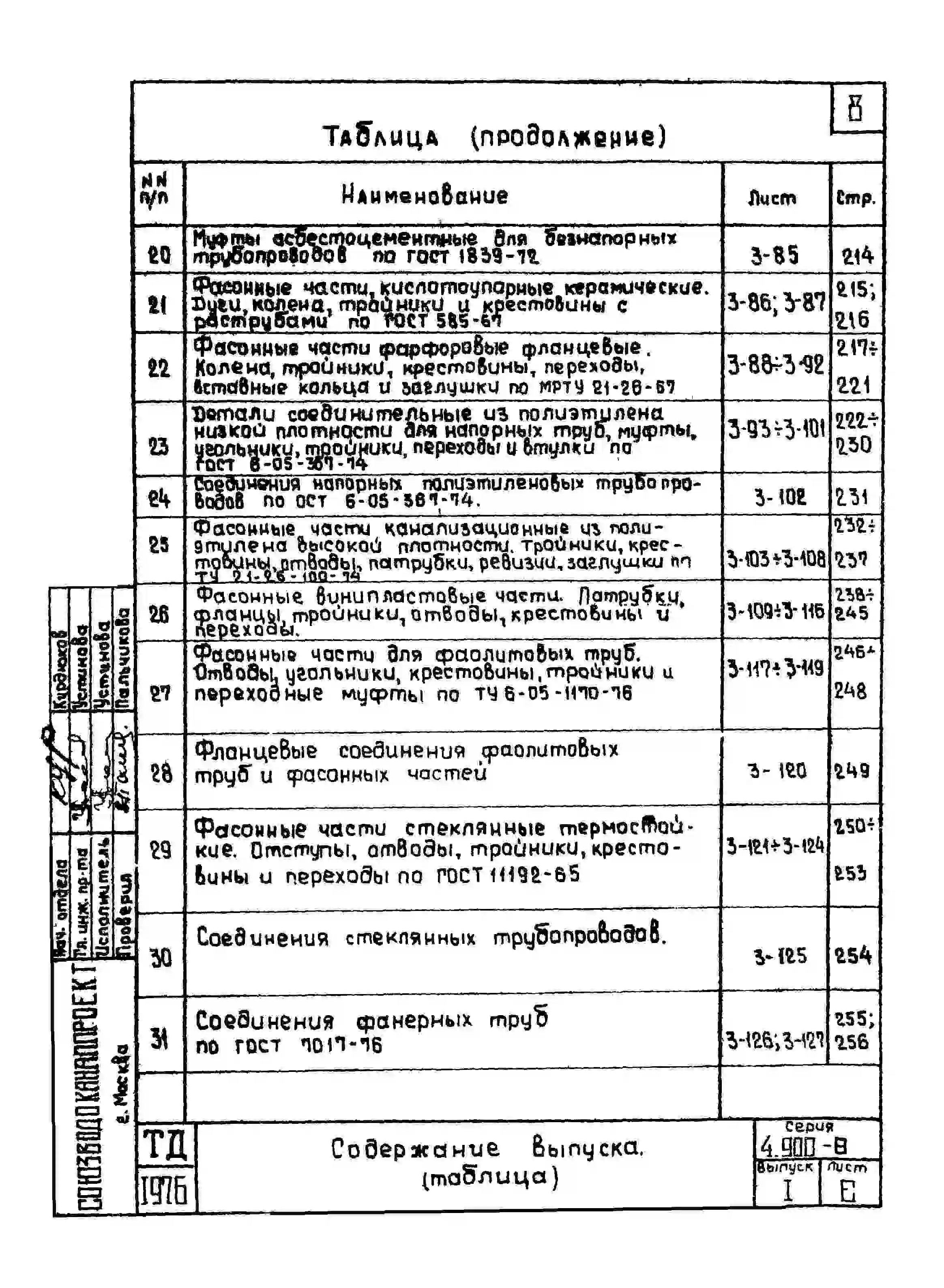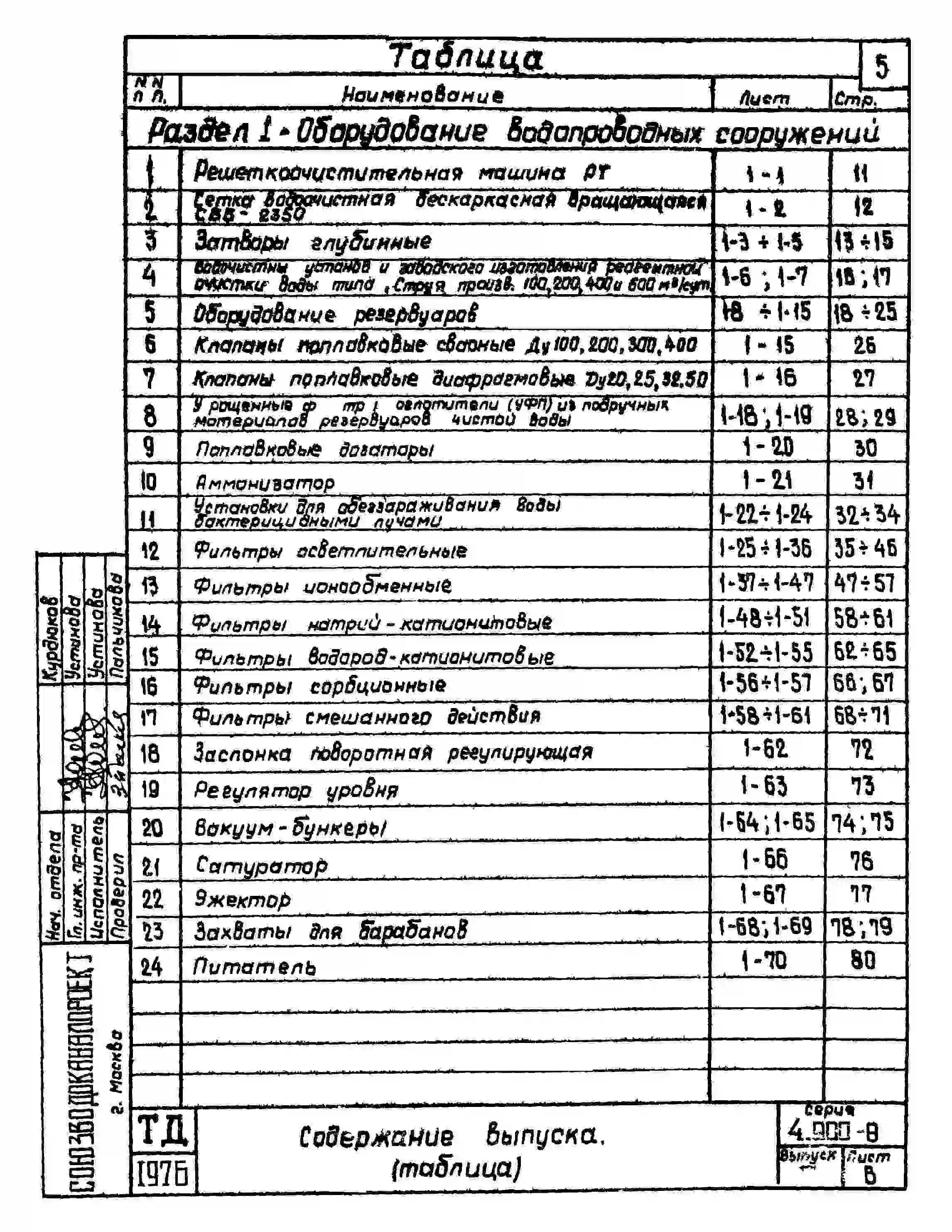 Серия 4.900-8 Альбом оборудования, фасонных частей и арматуры для сетей и сооружений водопровода и канализации. Рабочие чертежи.