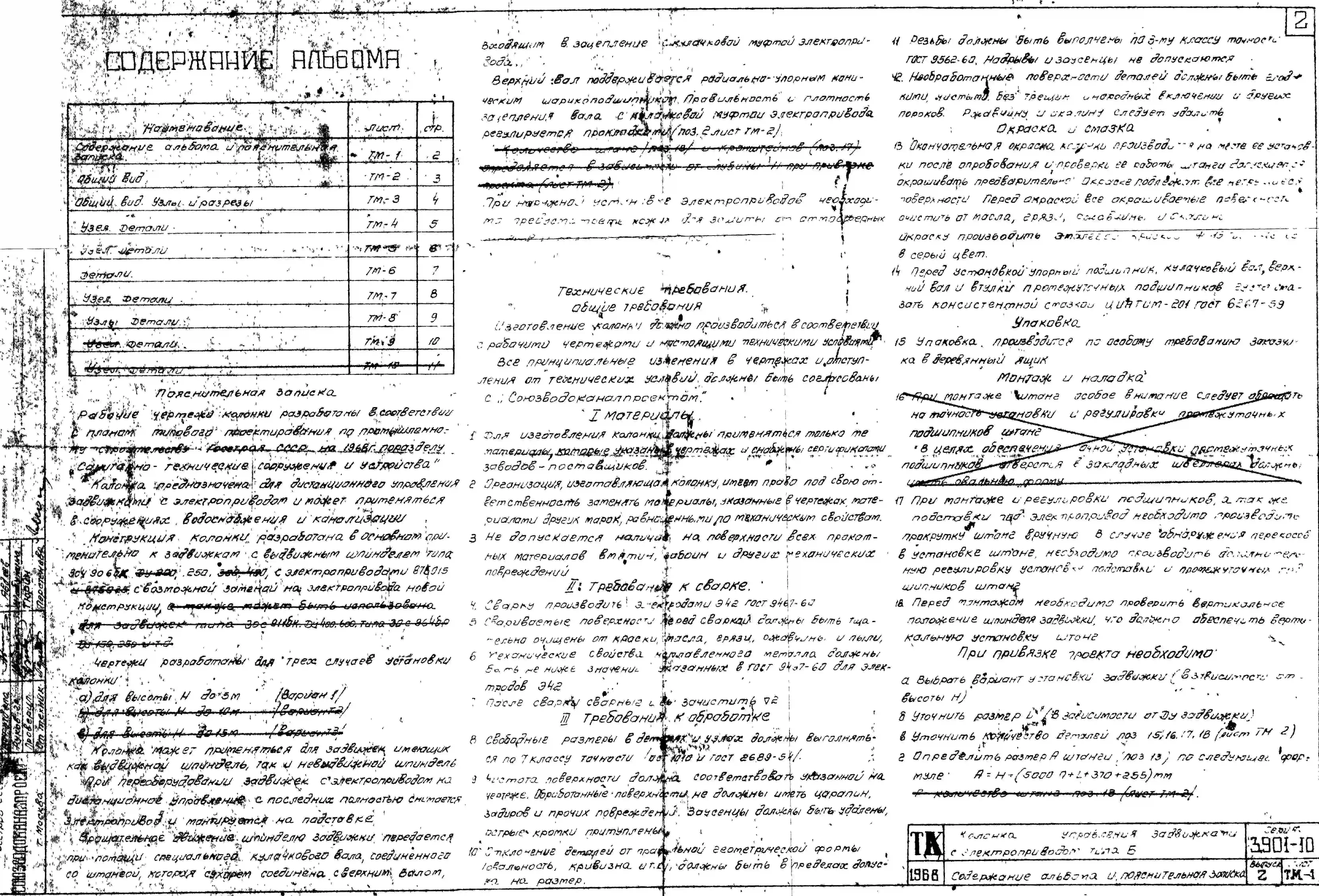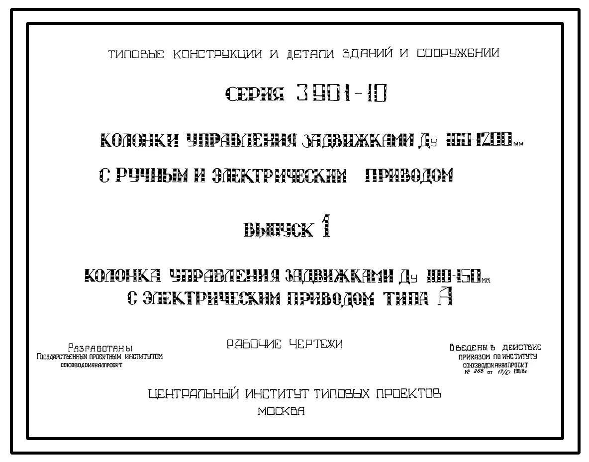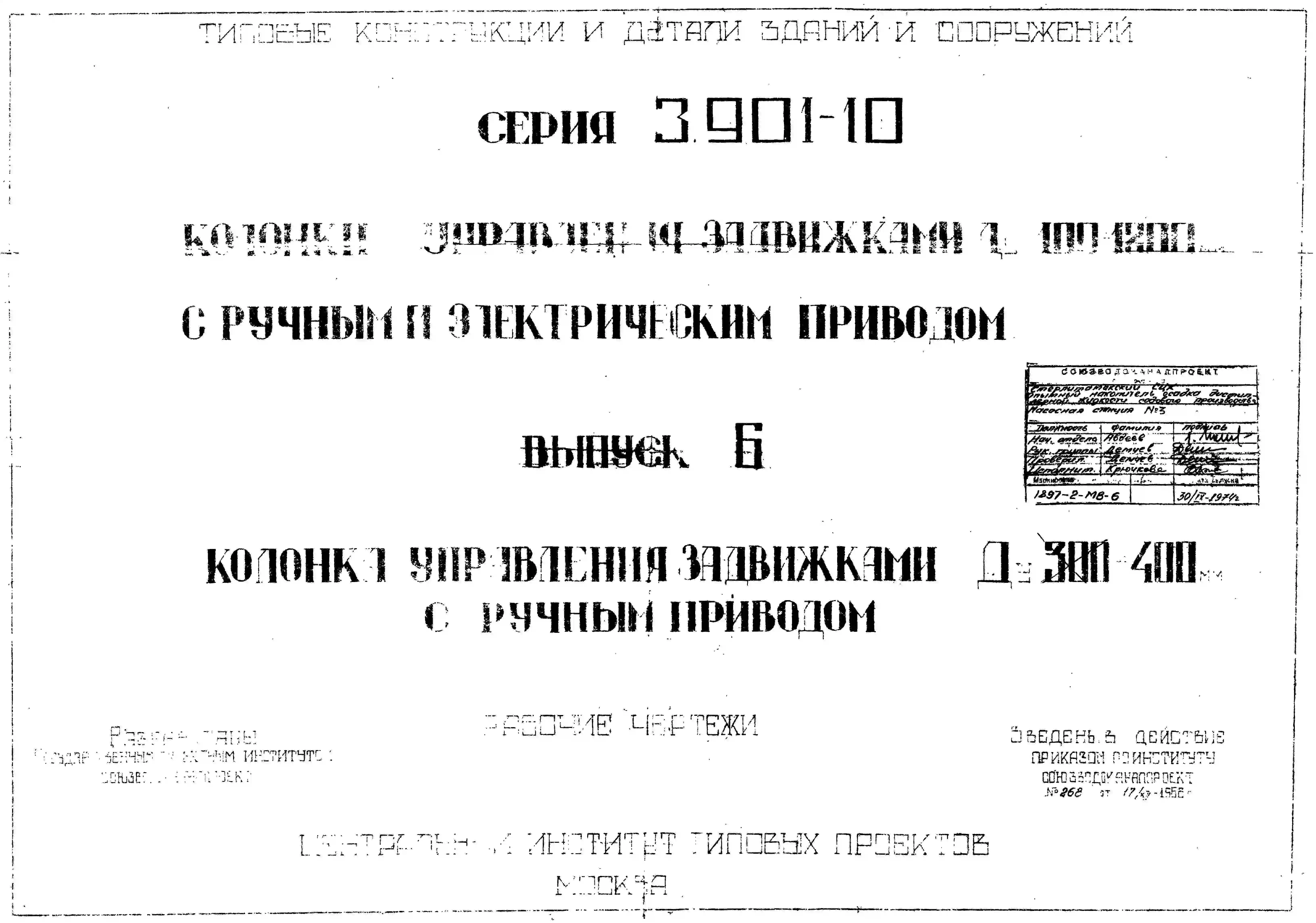 Серия 3.901-10 Колонки управления задвижками Ду 100-1200 мм с ручным и электрическим приводом. Рабочие чертежи.
