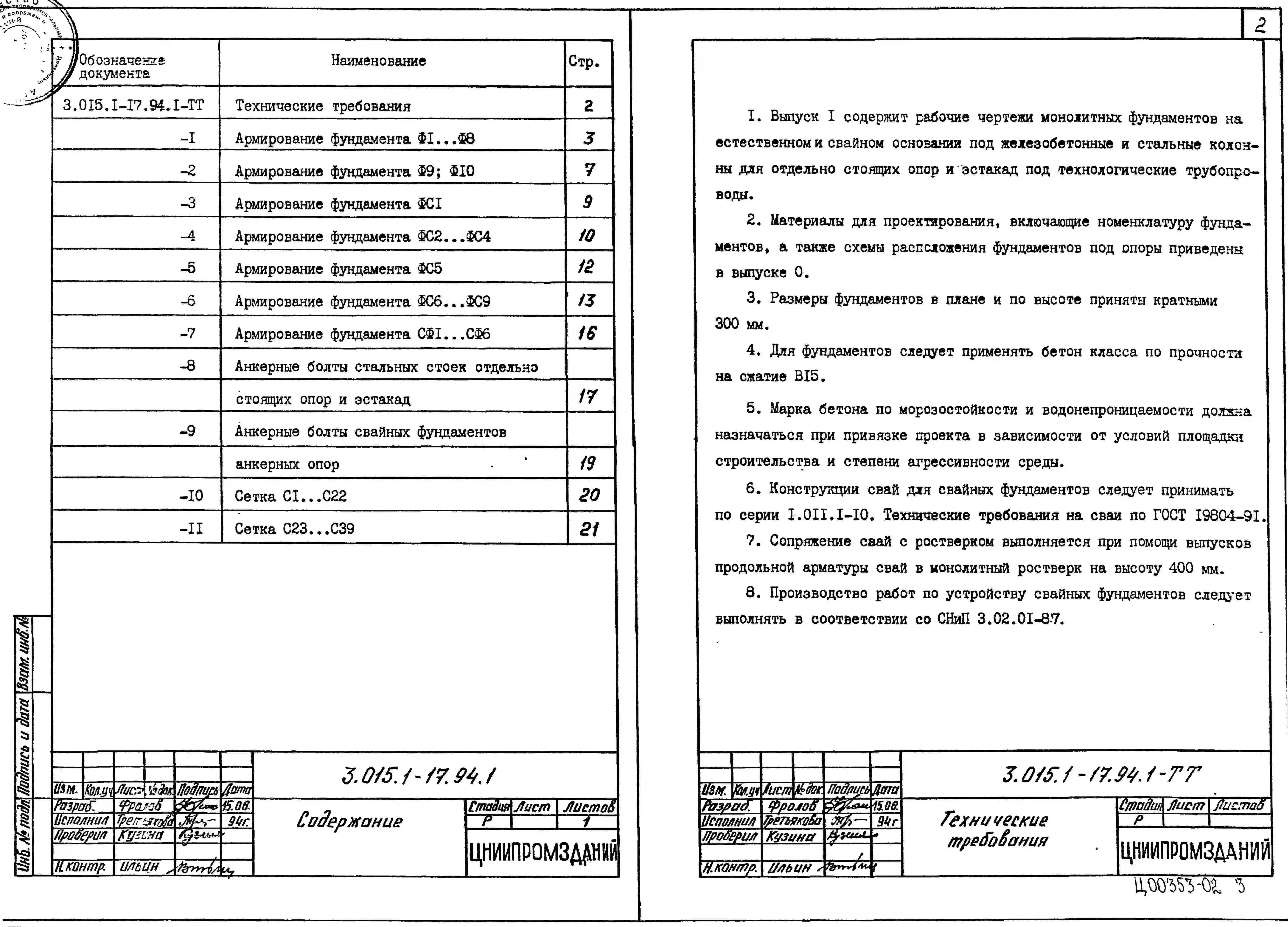 Серия 3.015.1-17.94 Фундаменты на естественном и свайном основании под конструкции эстакад и отдельно стоящих опор под технологические трубопроводы. Материалы для проектирования и рабочие чертежи.