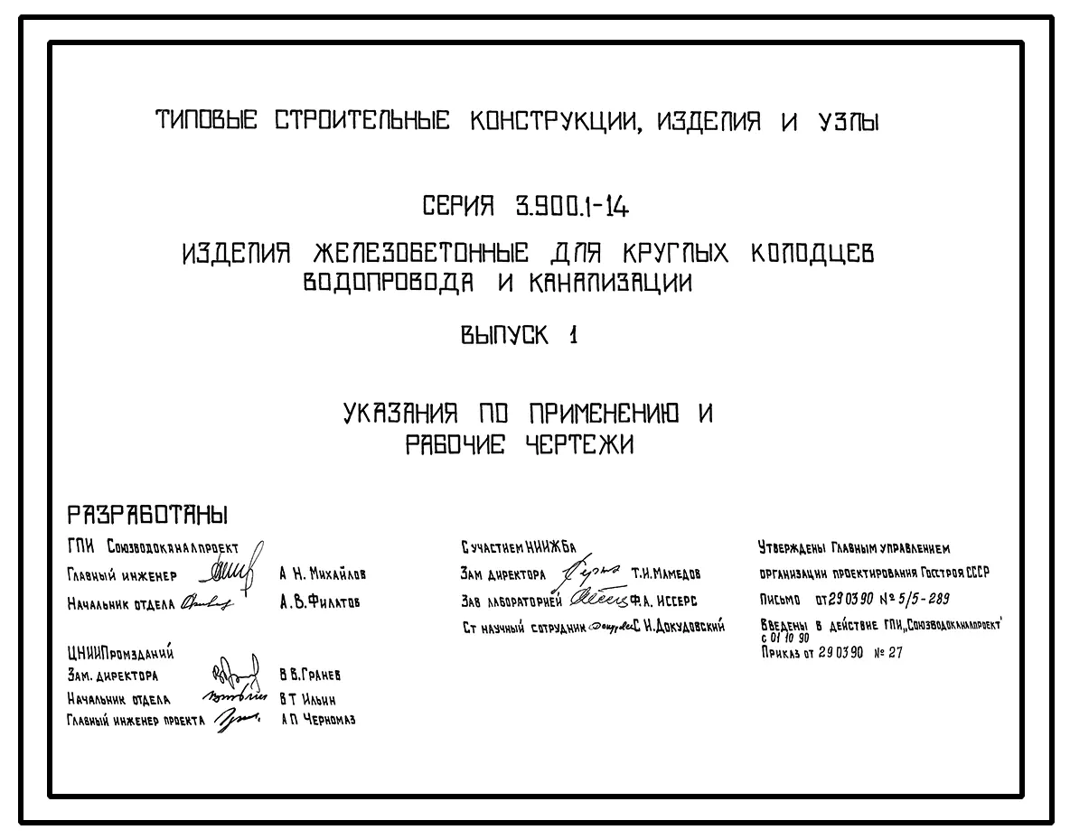 Серия 3.900.1-14 Изделия железобетонные для круглых колодцев водопровода и канализации. Рабочие чертежи.