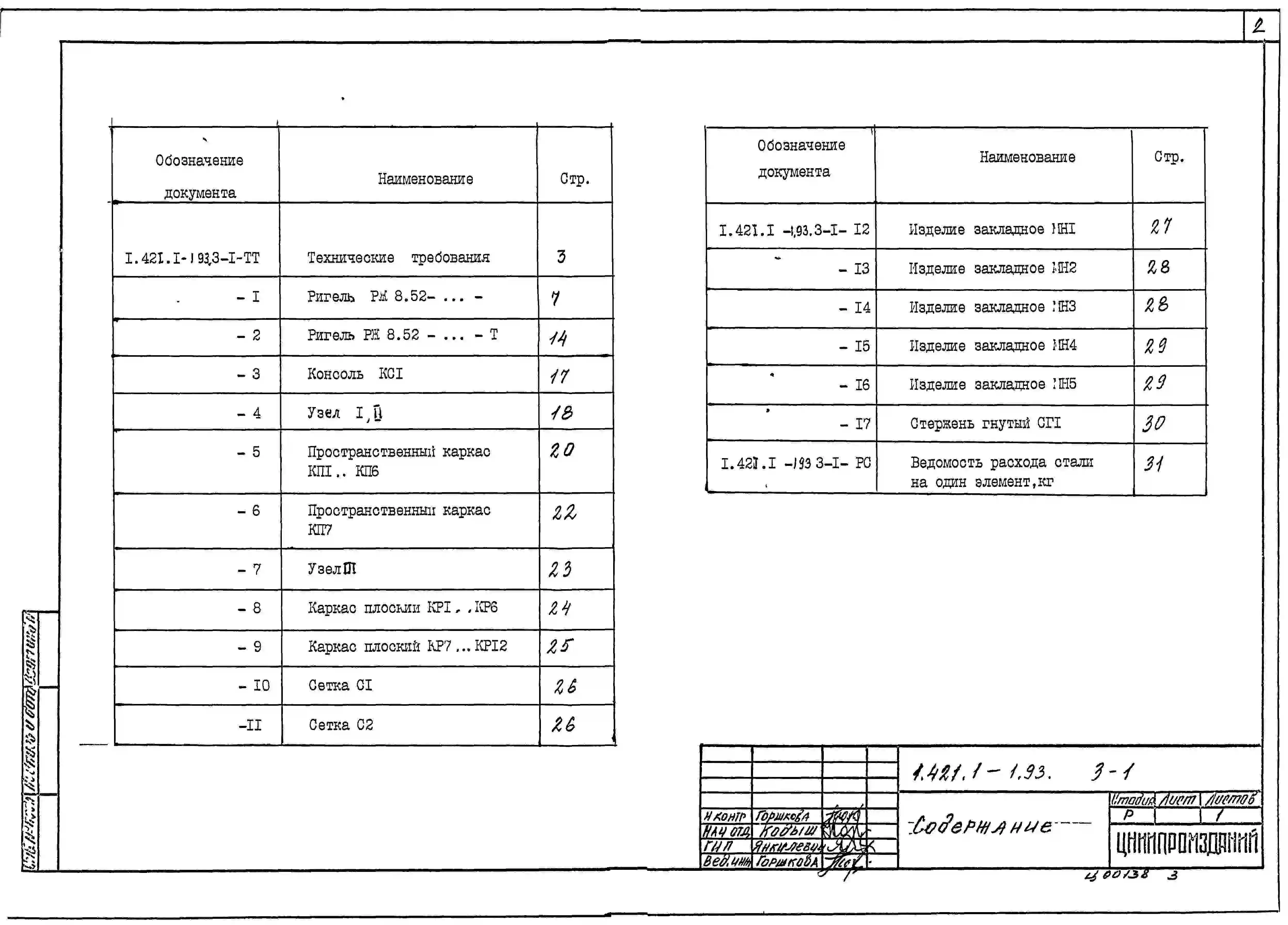 Серия 1.421.1-1.93 Конструкции этажерок под технологическое оборудование. Рабочие чертежи.