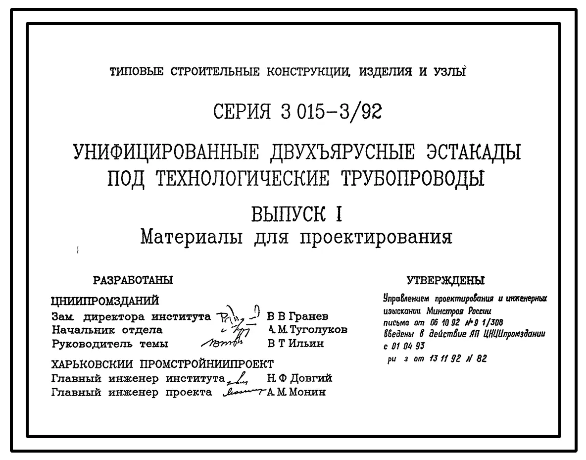 Серия 3.015-3/92 Унифицированные двухъярусные эстакады под технологические трубопроводы. Материалы для проектирования и рабочие чертежи.