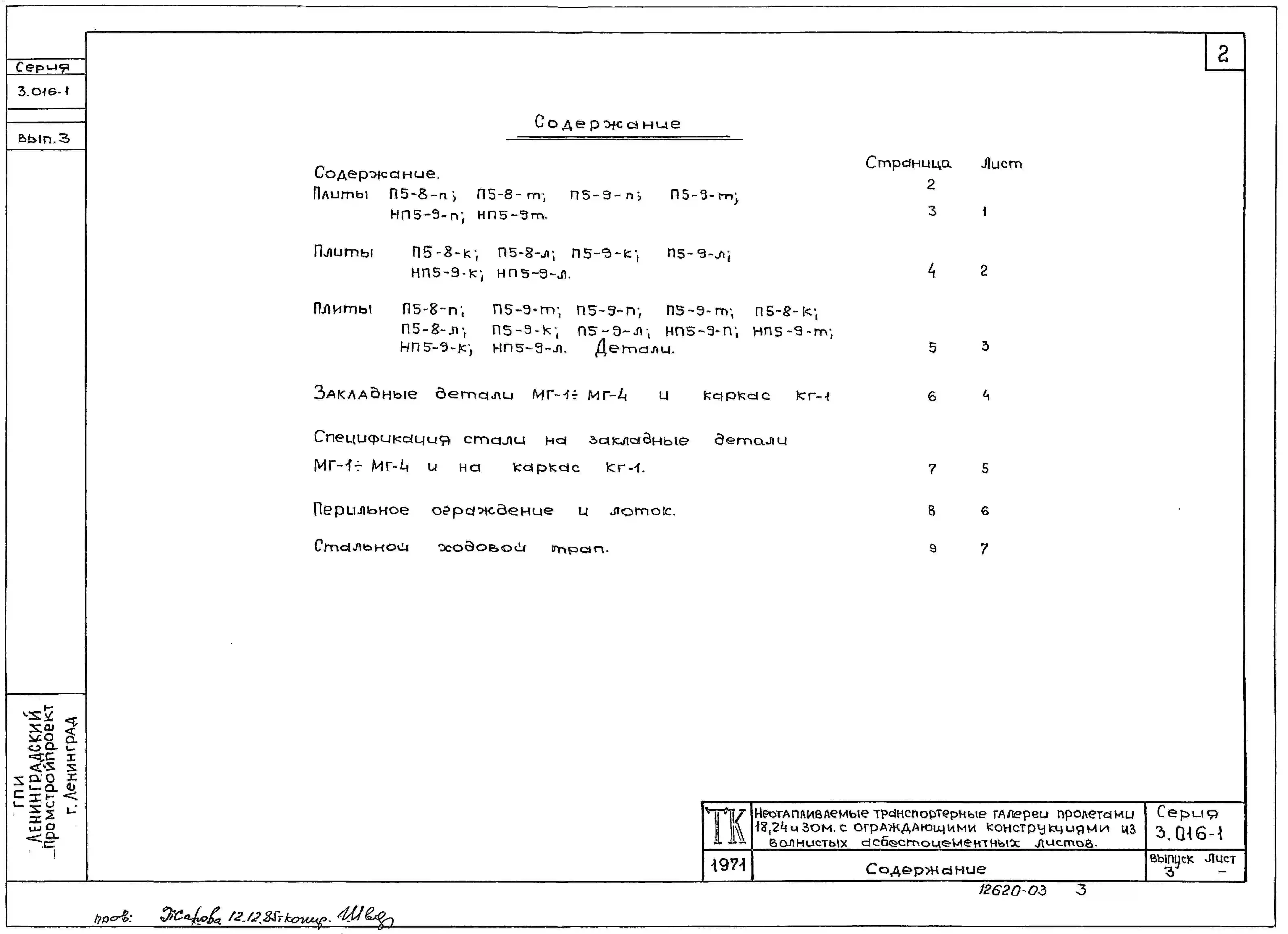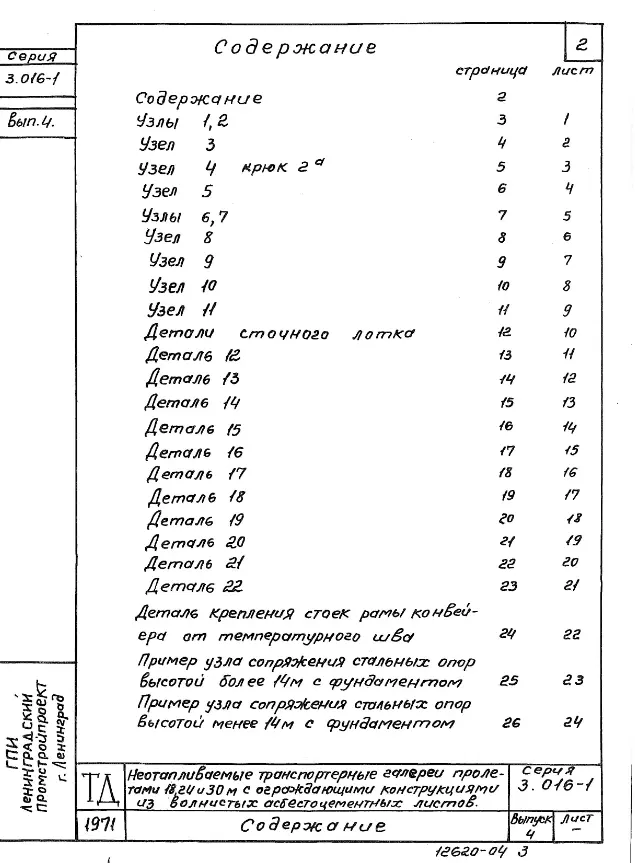 Серия 3.016-1 Неотапливаемые транспортерные галереи пролетами 18, 24 и 30 м с ограждающими конструкциями из волнистых асбестоцементных листов. Рабочие чертежи.