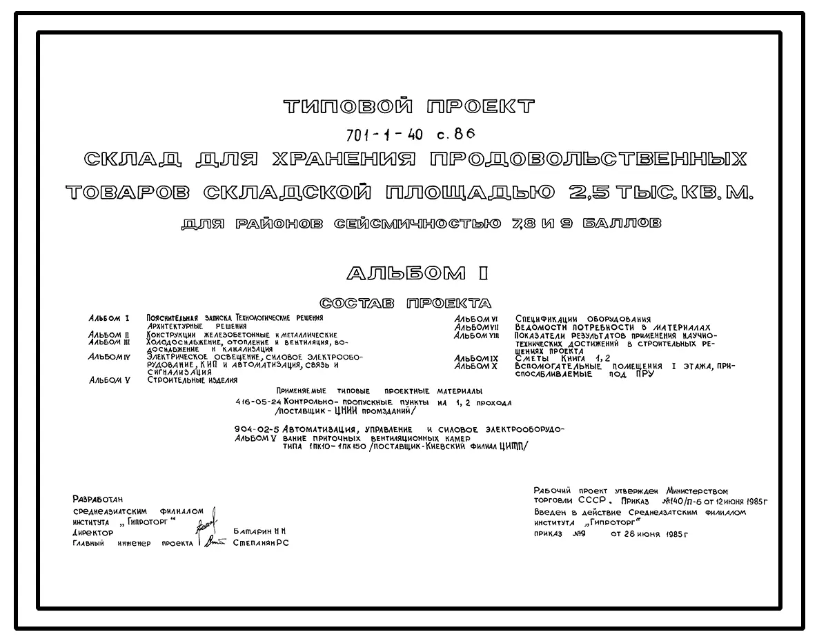 Типовой проект 701-1-40с.86 Склад для хранения продовольственных товаров складской площадью 2500 м2. Сейсмичность 7, 8, 9 баллов