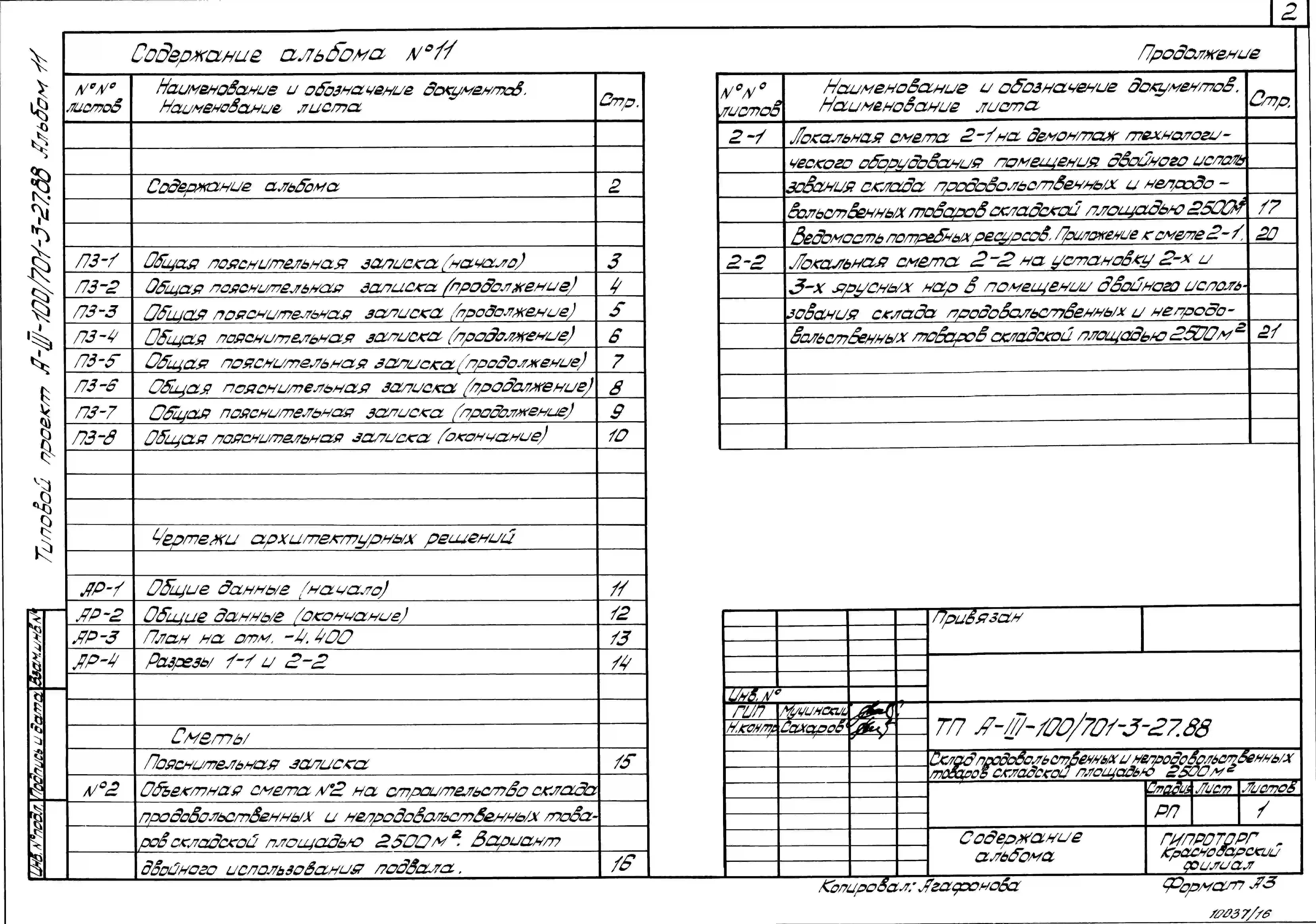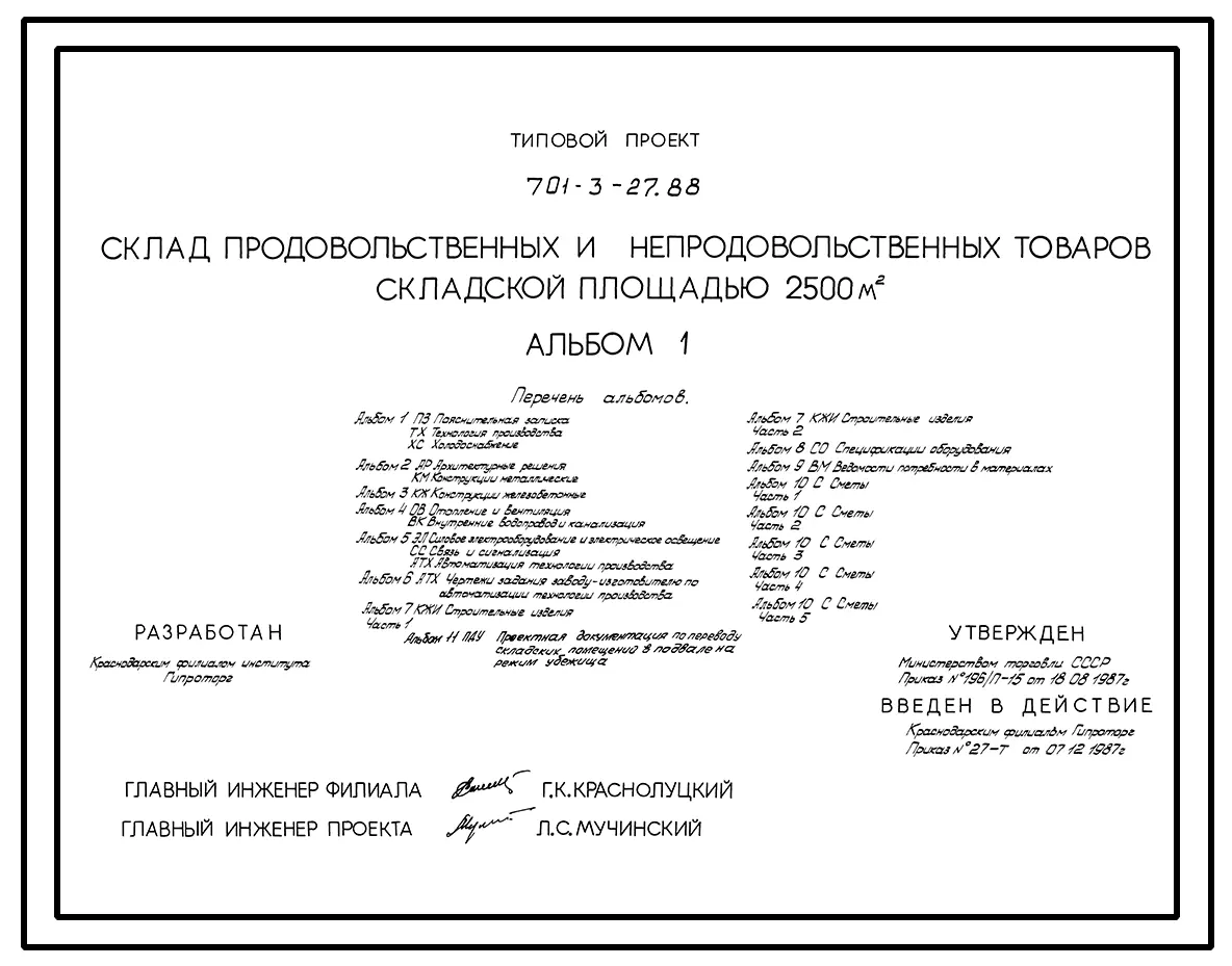 Типовой проект 701-3-27.88 Склад для хранения продовольственных и непродовольственных товаров складской площадью 2500 м2