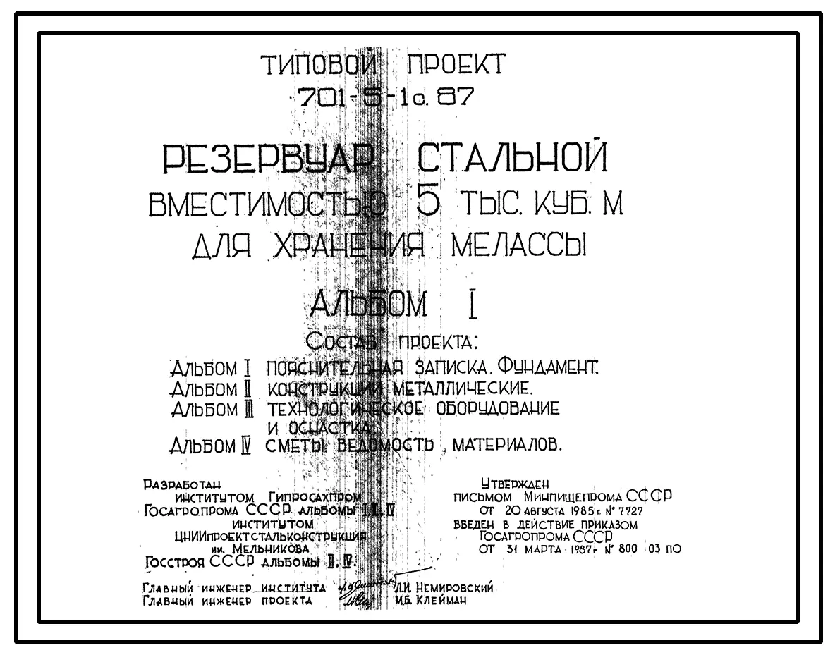 Типовой проект 701-5-1с.87 Резервуар стальной вместимостью 5 тыс. м3 для хранения мелассы. Сейсмичность 9 баллов