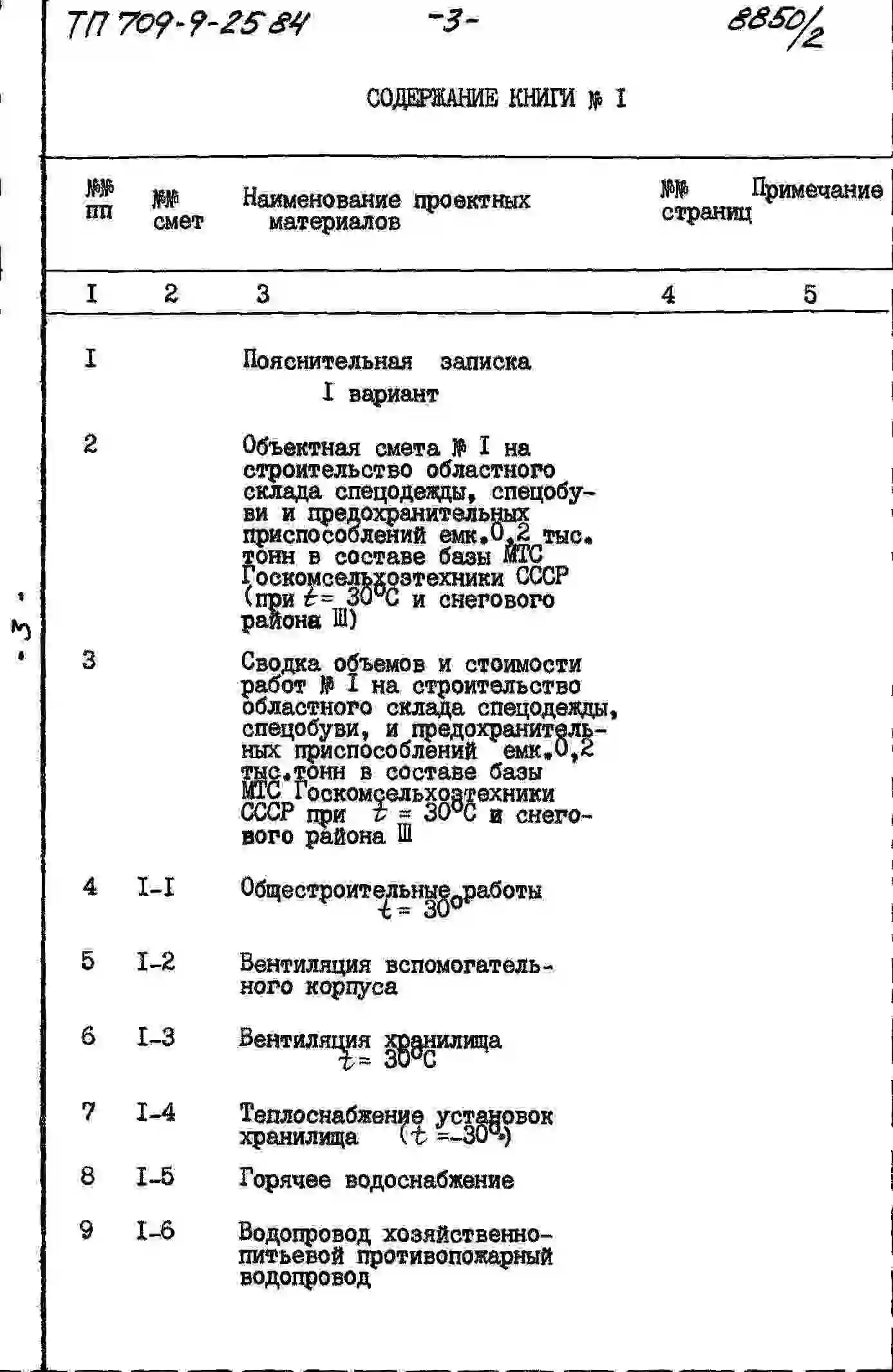 Типовой проект 709-9-25.84 Областной склад спецодежды, спецобуви и предохранительных приспособлений емкостью 0,2 тыс. тонн в составе базы МТС Госкомсельхозтехники СССР.