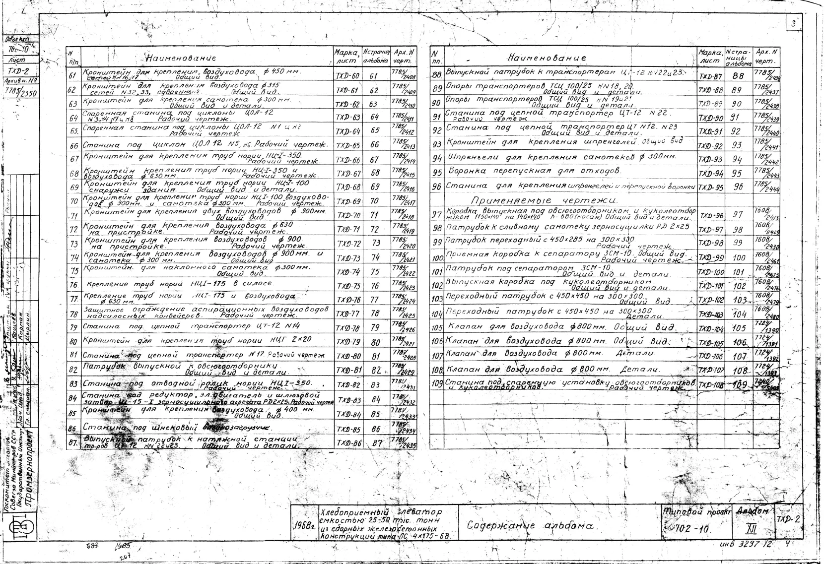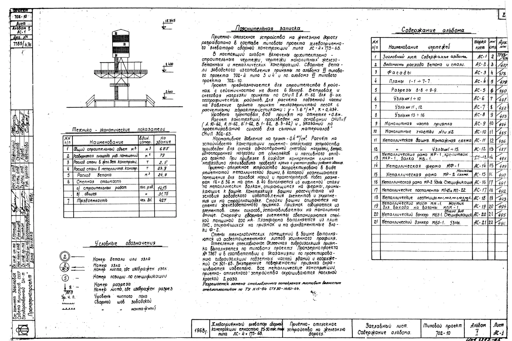 Типовой проект 702-10 Хлебоприемный элеватор сборной конструкции емкостью 25-50 тысяч тонн типа ЛС-4х175-68
