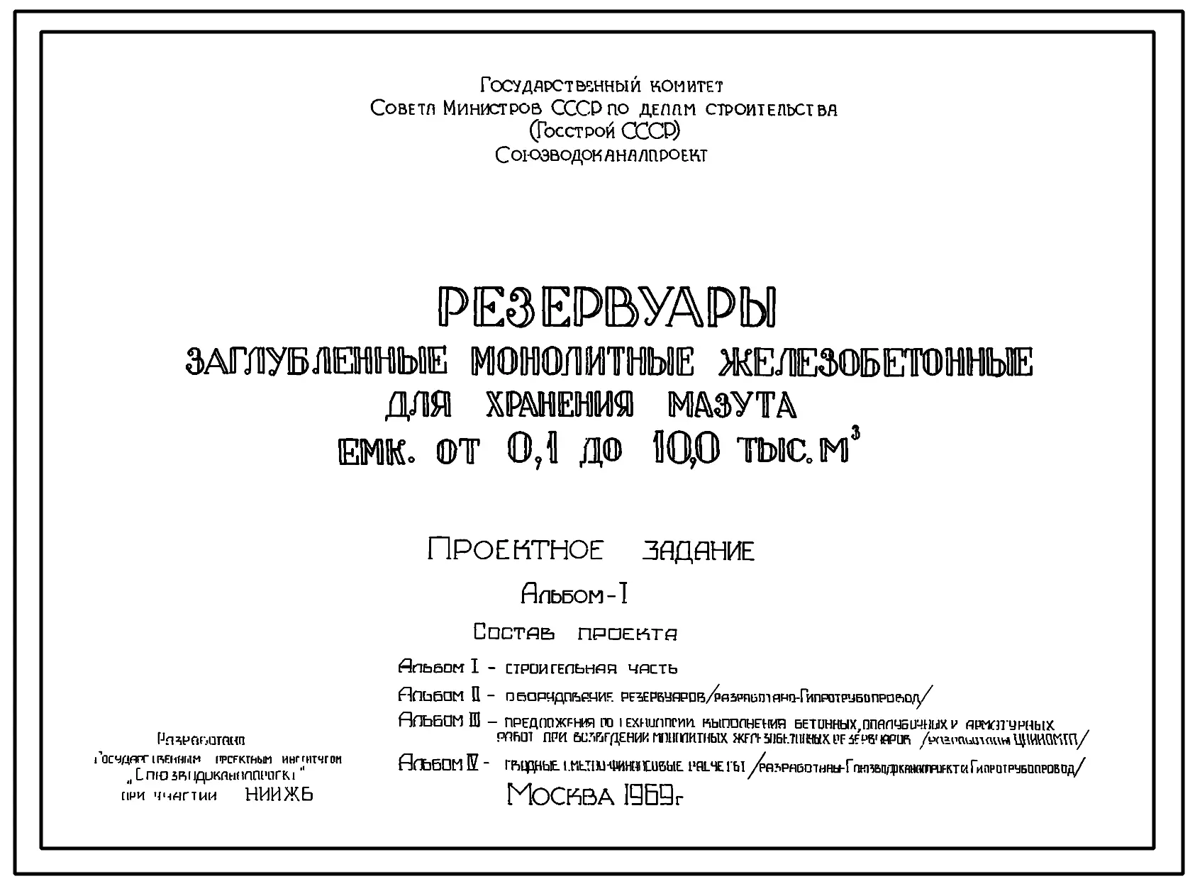 Технический проект Т-1969 Резервуары заглубленные монолитные железобетонные для хранения мазута емкостью от 0,1 до 10,0 тыс. м 3