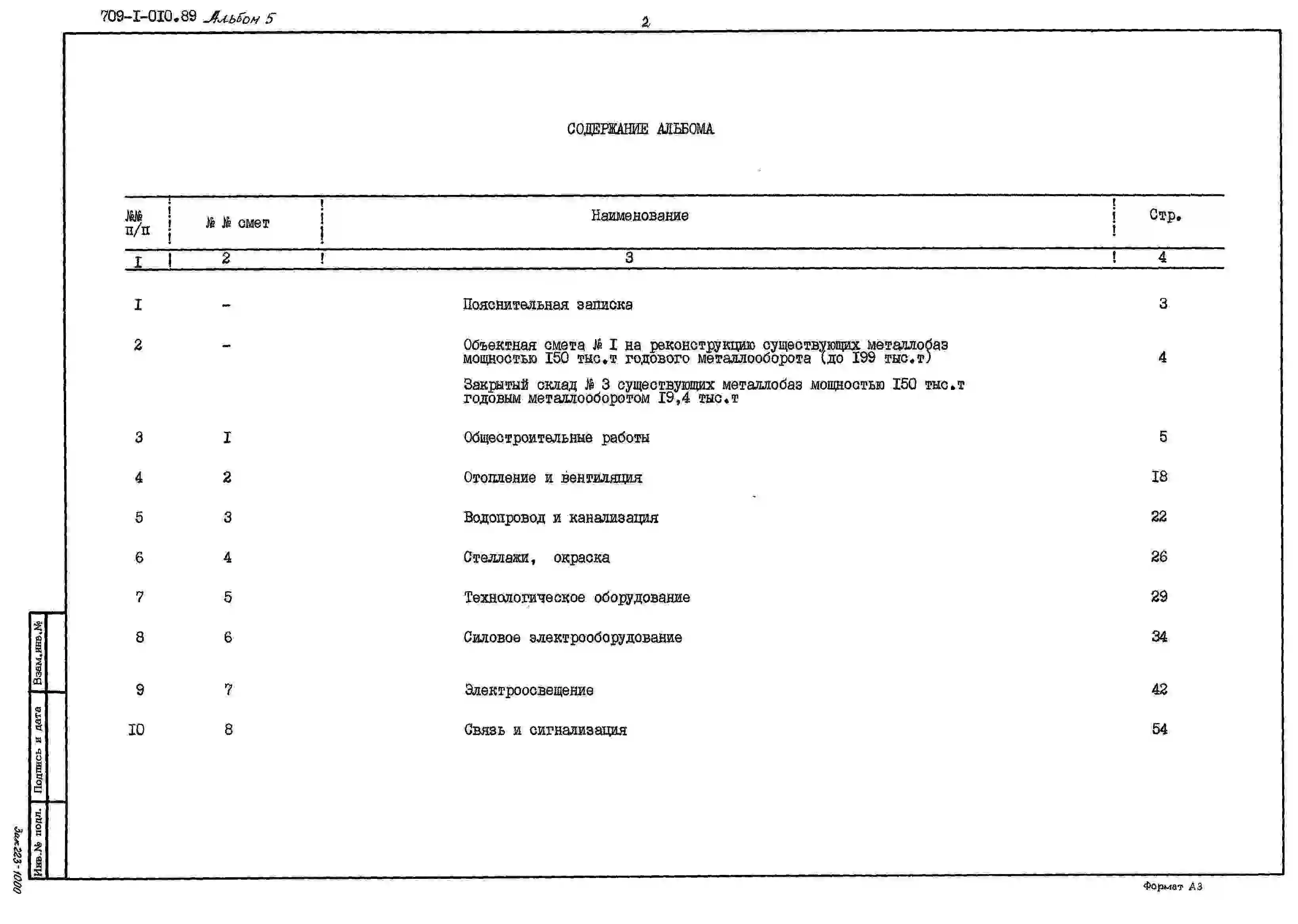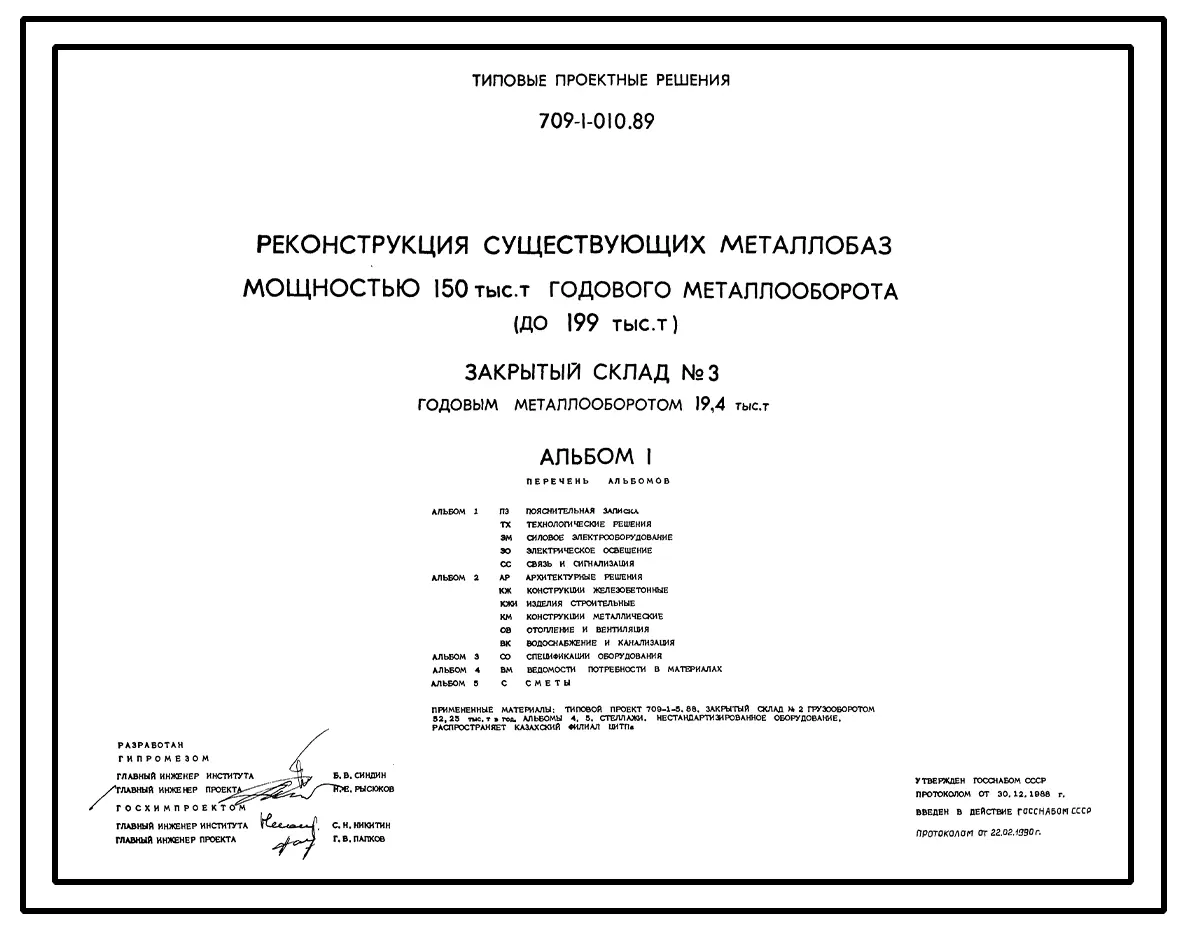Типовой проект 709-1-010.89 Закрытый склад № 3 годовым металлооборотом 19,4 тыс. т (реконструкция)