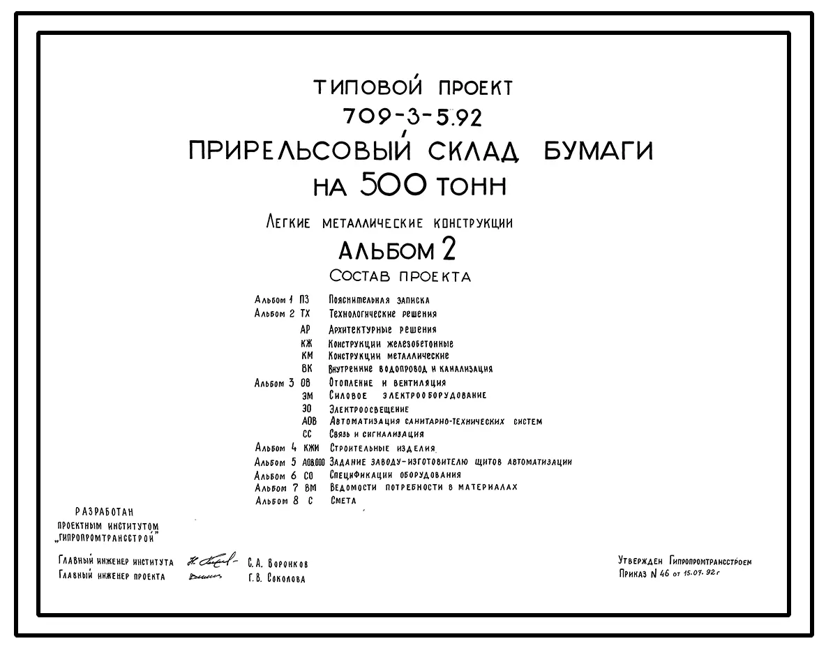 Типовой проект 709-3-5.92 Прирельсовый склад бумаги на 500 т. Легкие металлические конструкции
