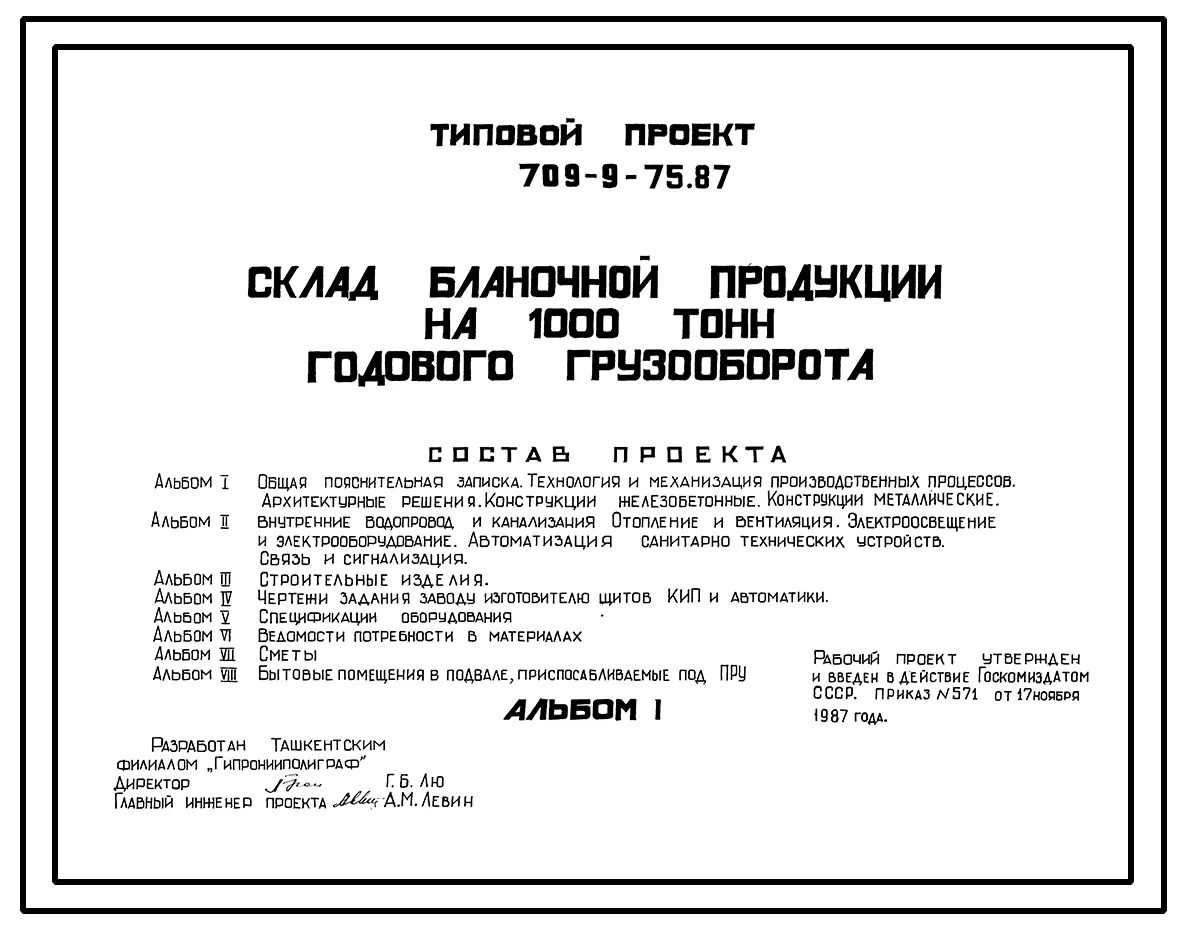 Типовой проект 709-9-75.87 Склад бланочной продукции на 1000 тонн годового грузооборота