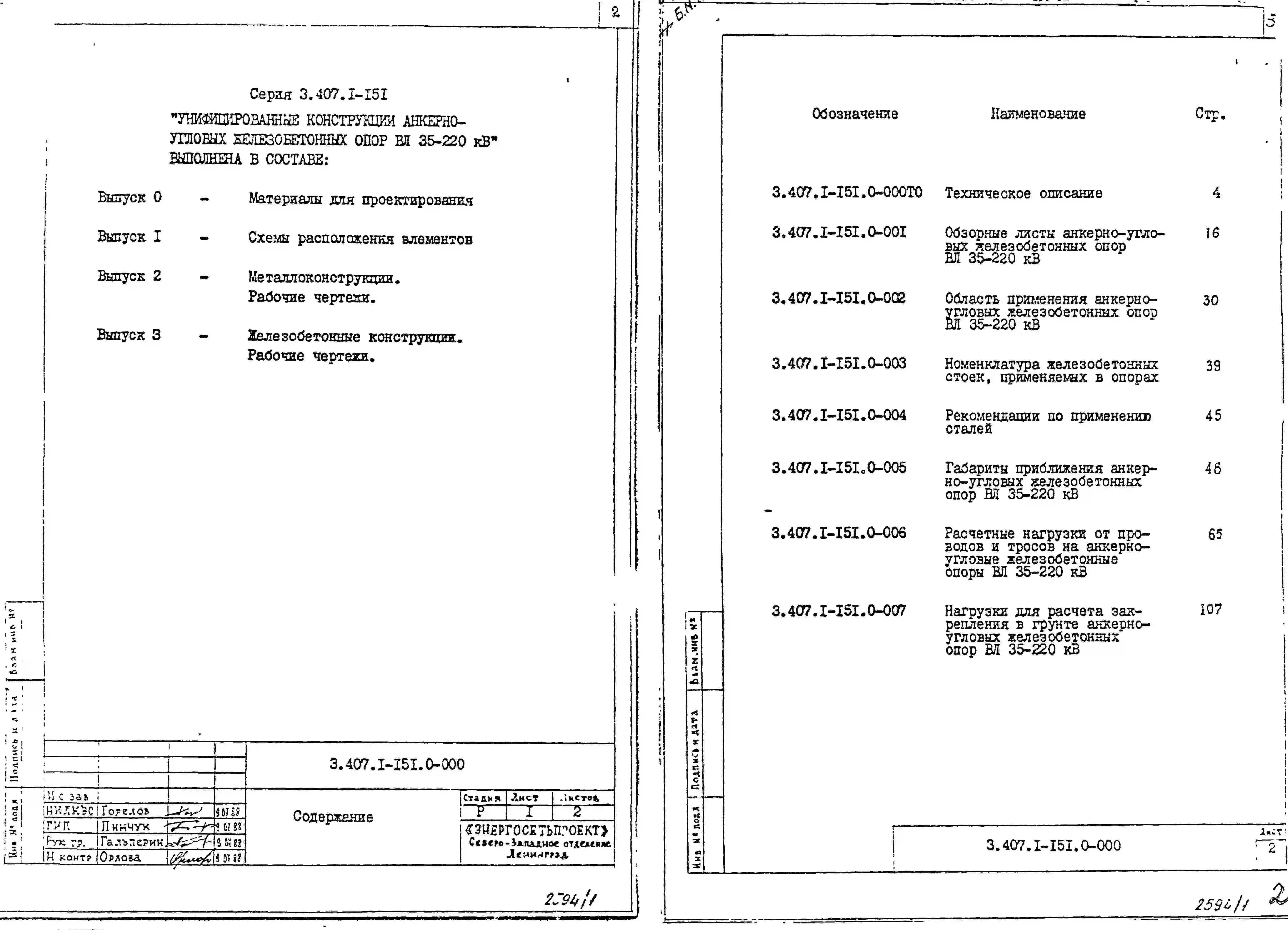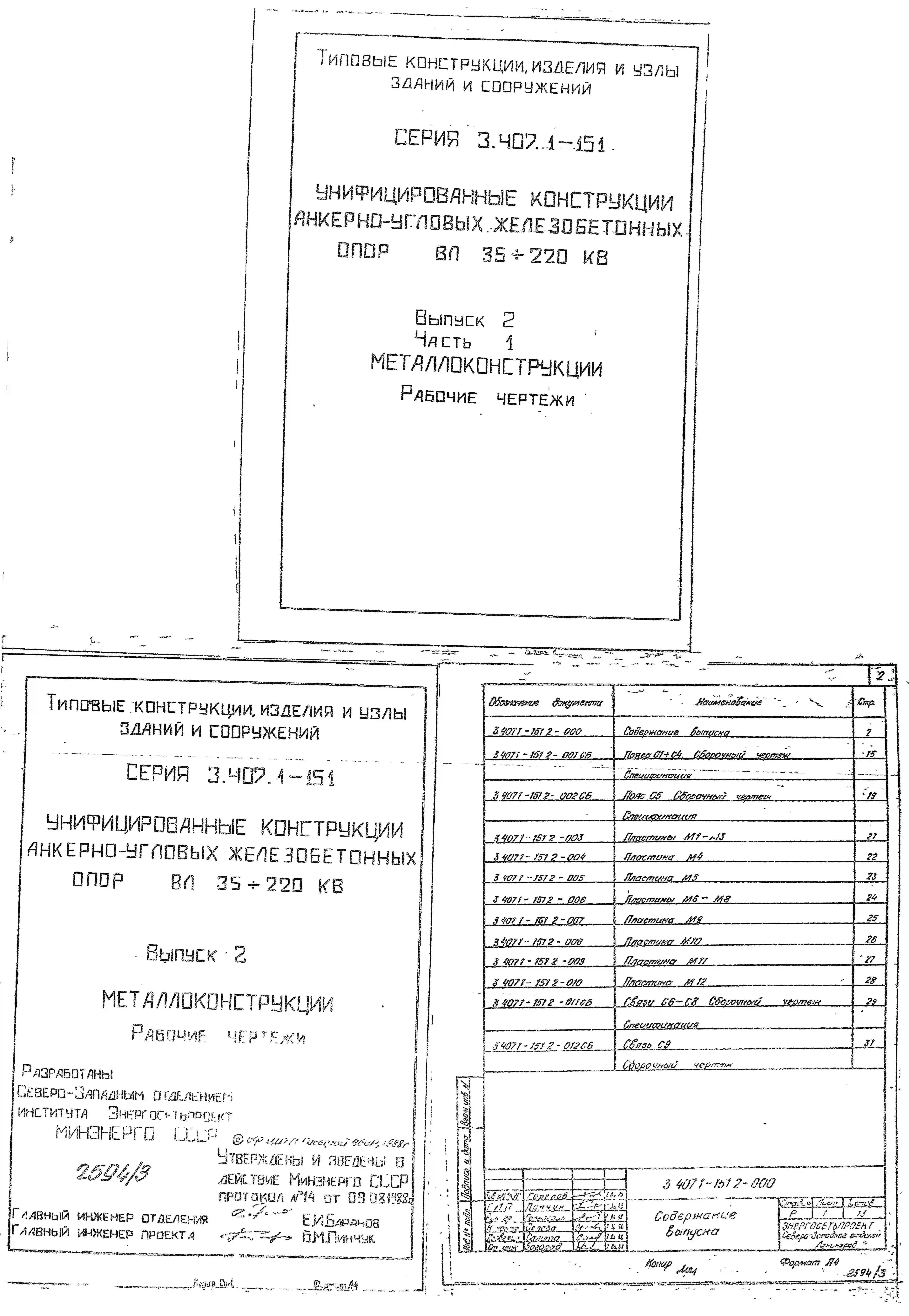 Серия 3.407.1-151 Унифицированные конструкции анкерно-угловых железобетонных опор ВЛ 35-220 кВ. Материалы для проектирования и рабочие чертежи.