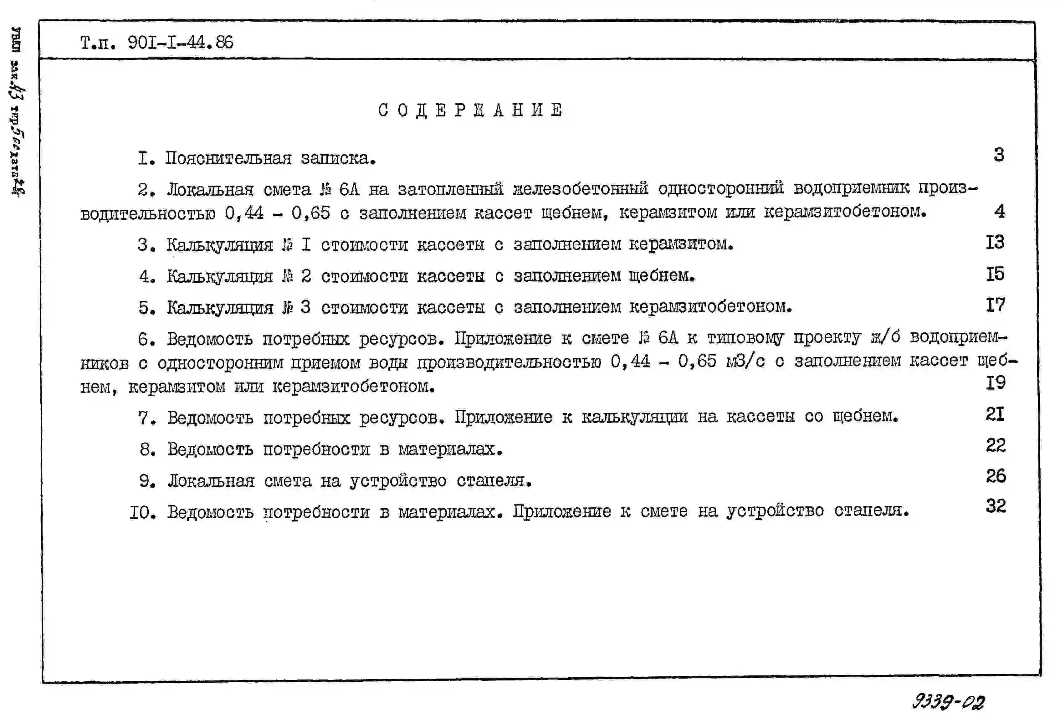 Типовой проект 901-1-44.86 Затопленный водоприемник железобетонный односторонний производительностью от 0,44 до 0,65 м.куб/с