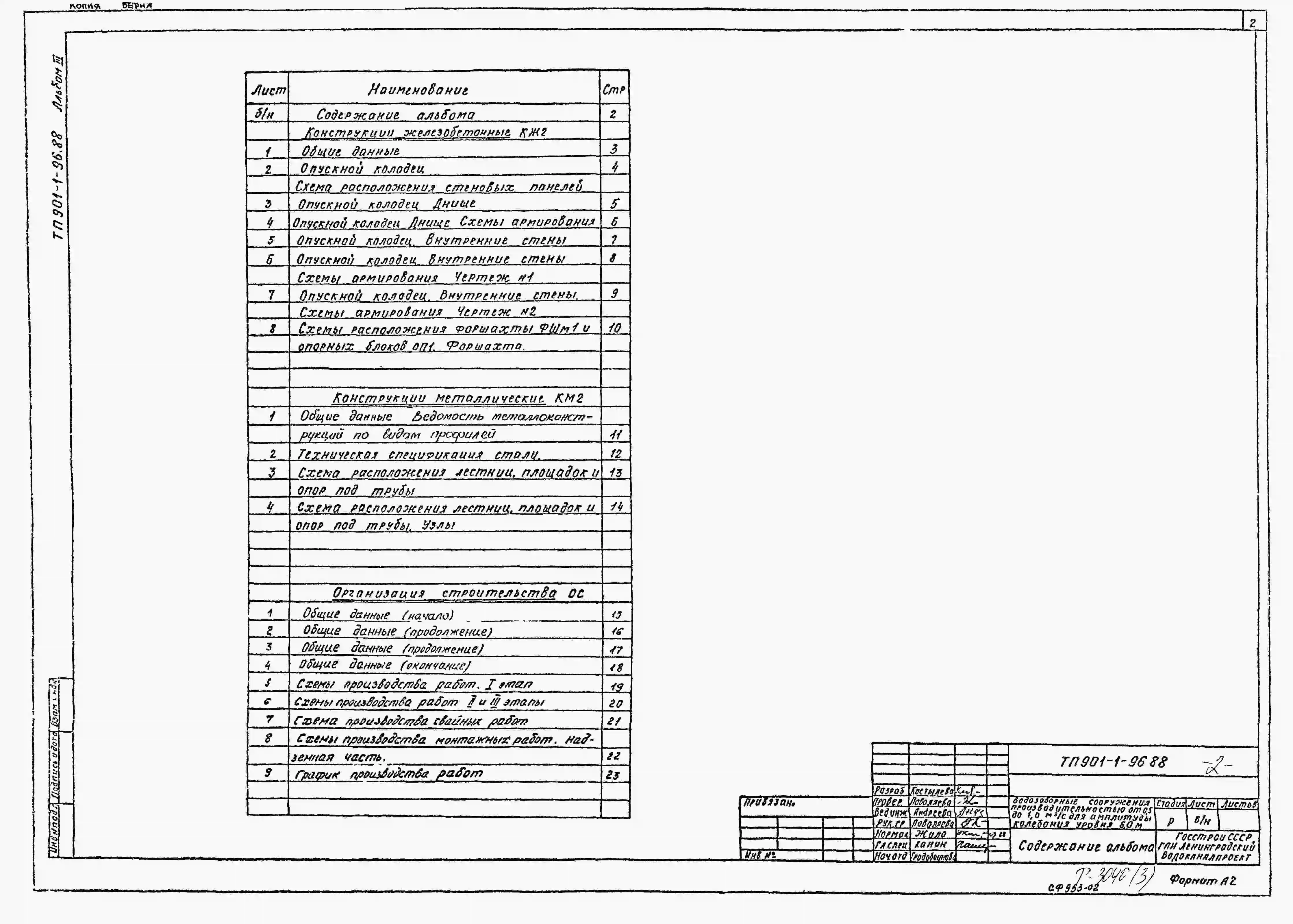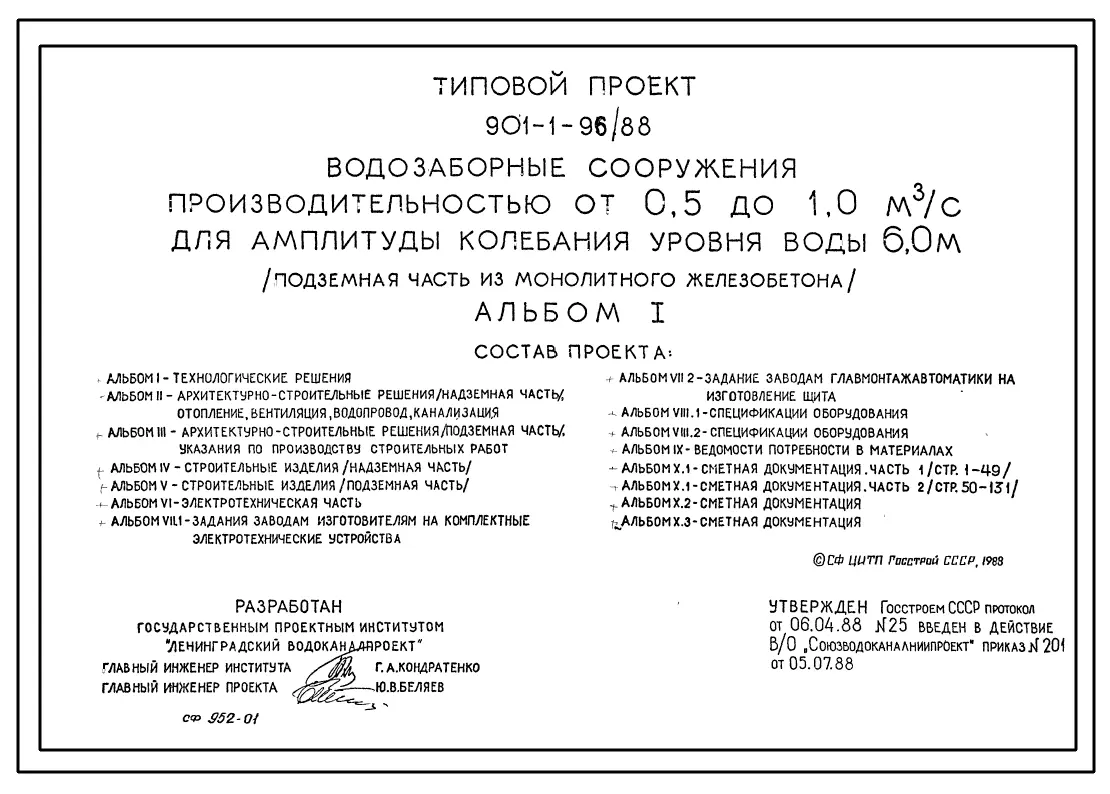 Типовой проект 901-1-96.88 Водозаборные сооружения производительностью от 0,5 до 1,0 м3/с для амплитуды колебания уровня воды 6,0 м (подземная часть из сборного железобетона)