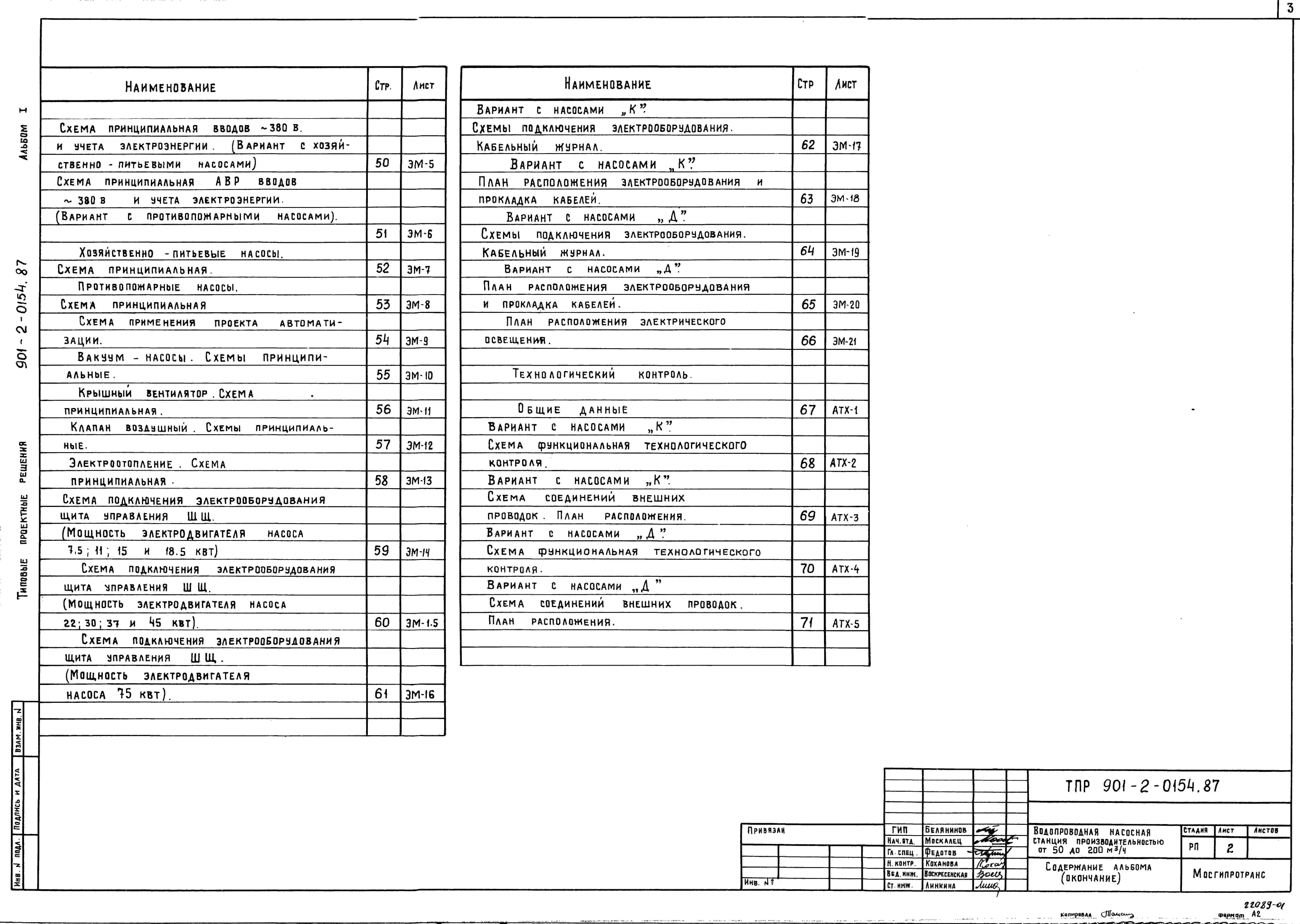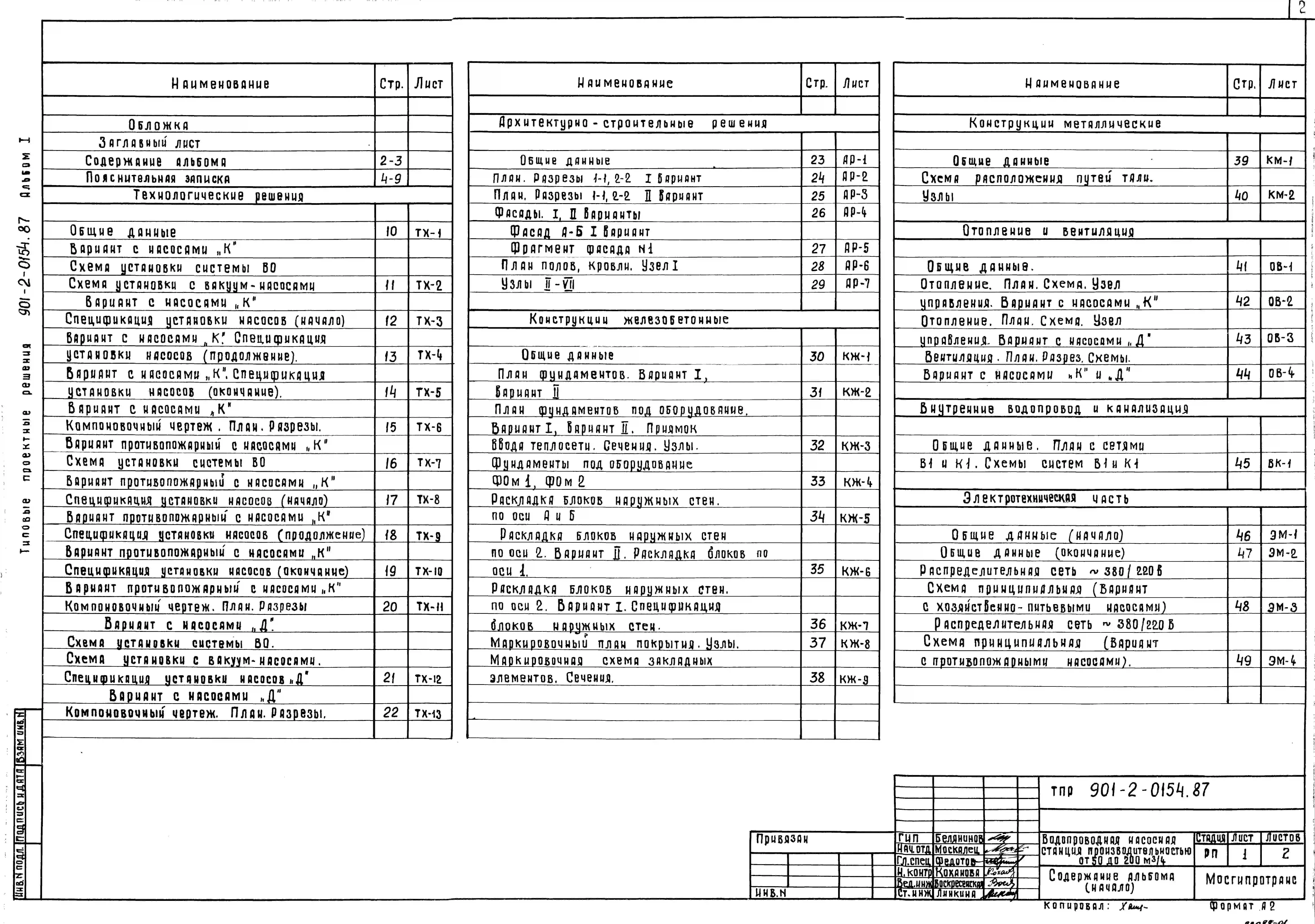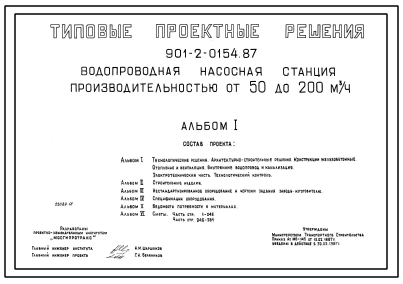Типовой проект 901-2-0154.87 Водопроводная насосная станция производительностью от 50 до 200 м.куб/час